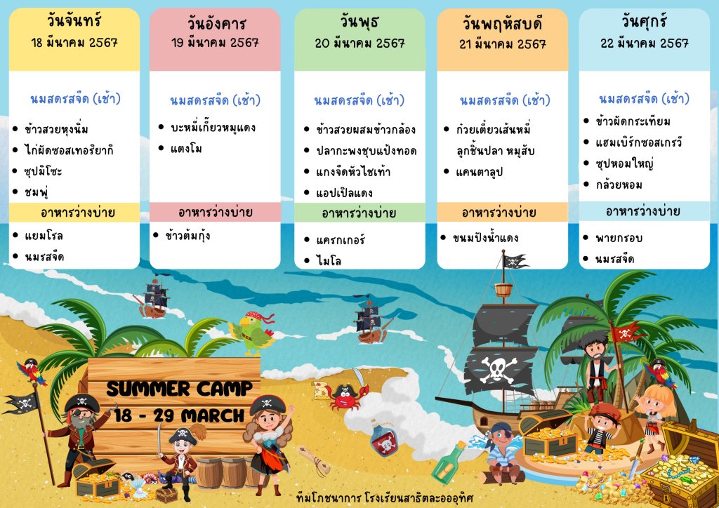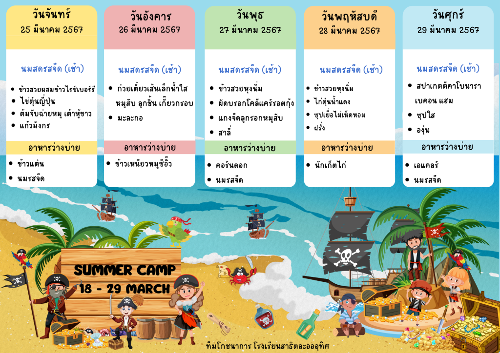 รายการอาหารกลางวันและอาหารว่าง ทุกระดับชั้นSummer Camp 2024 ช่วงที่ 1 : Future Skills Future Life(กรุงเทพมหานคร)