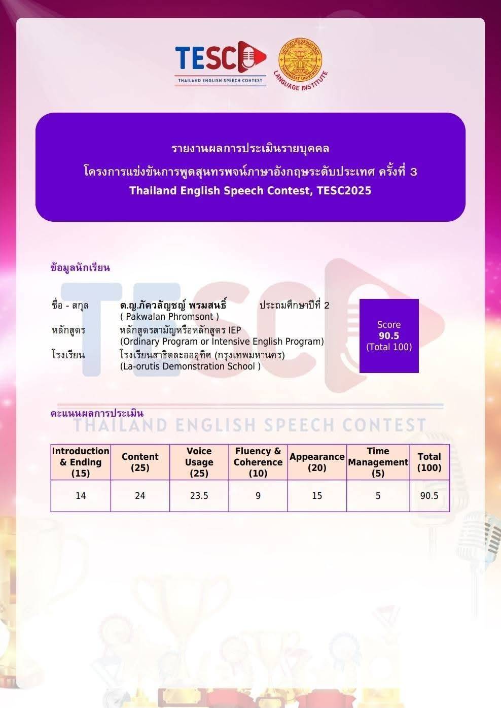 ðāđāļāđāļāļāļąāļāļĢāļēāļĒāļāļēāļĢāđāļāļĢāļāļāļēāļĢāđāļāđāļāļāļąāļāļāļēāļĢāļāļđāļāļŠāļļāļāļāļĢāļāļāļāđāļ āļēāļĐāļēāļāļąāļāļāļĪāļĐāļĢāļ°āļāļąāļāļāļĢāļ°āđāļāļĻ āļāļĢāļąāđāļāļāļĩāđ 3 (Thailand English Speech Contest, TESC 2025)