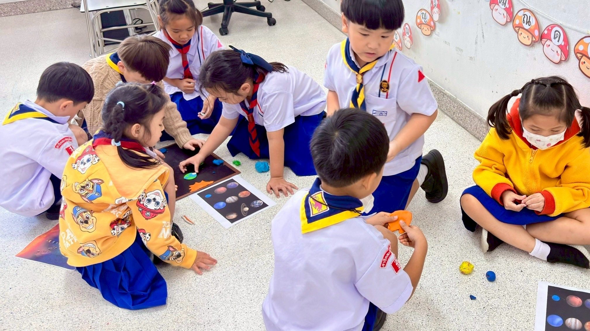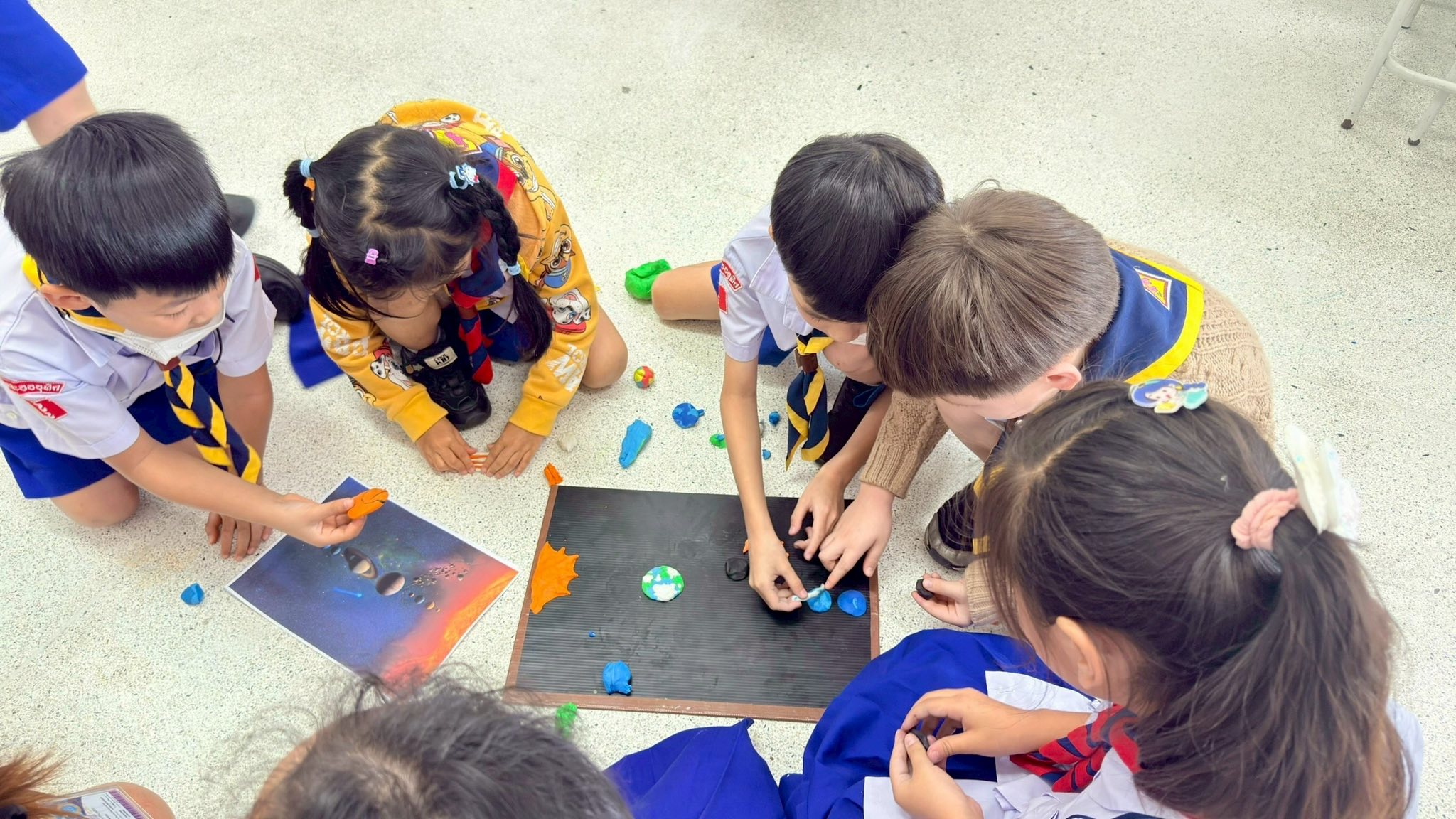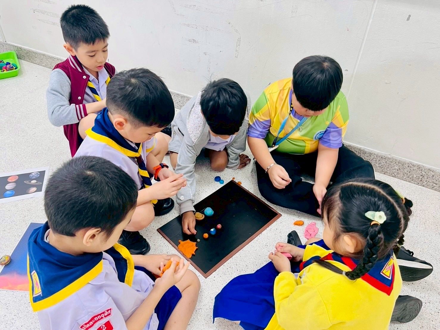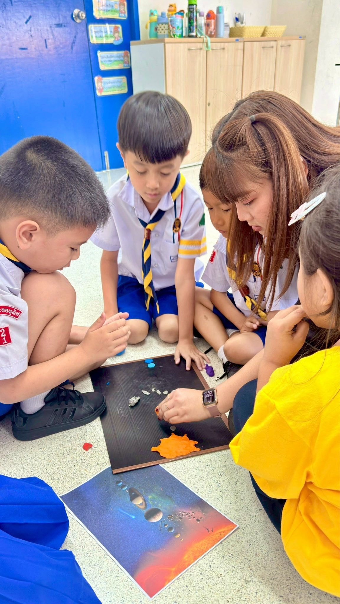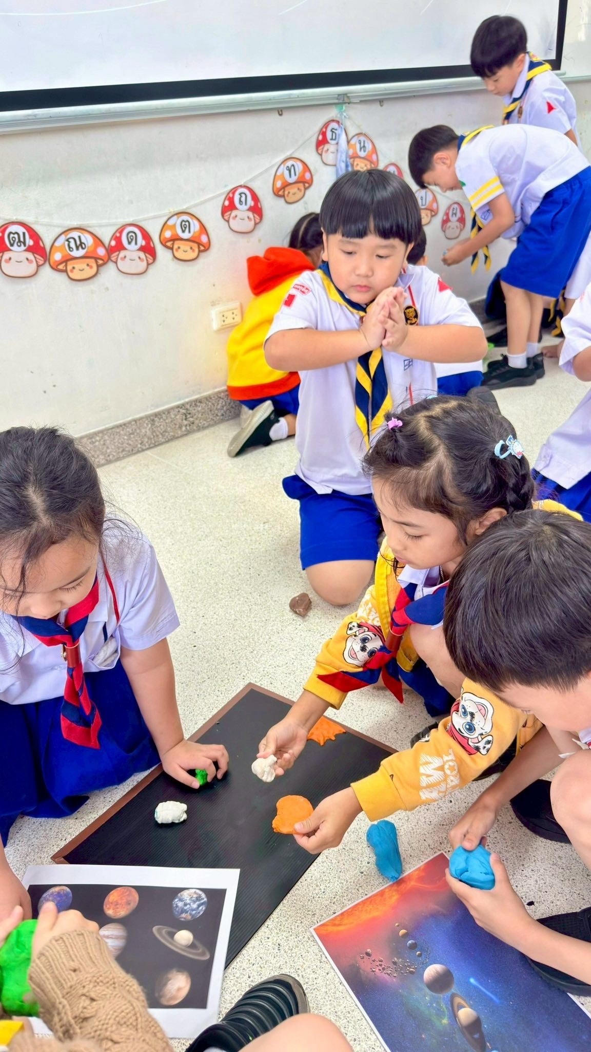 กิจกรรมนี้จะช่วยไขคำตอบ ข้อข้องใจของเด็กๆได้มากเลยทีเดียวค่ะ เพราะเด็กๆได้เรียนรู้เกี่ยวกับ ชื่อ ตำแหน่งของดาวเคราะห์ในระบบสุริยะ ลักษณะของดวงดาวแต่ละดวง รวมไปถึงปรากฎการณ์ทางธรรมชาติ หลังจากนั้นเด็กๆได้ปล่อยพลังแห่งจินตนาการเพื่อปั้นโมเดล