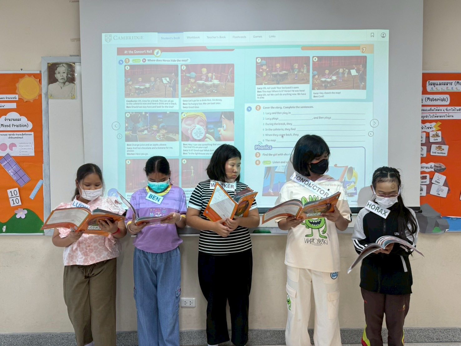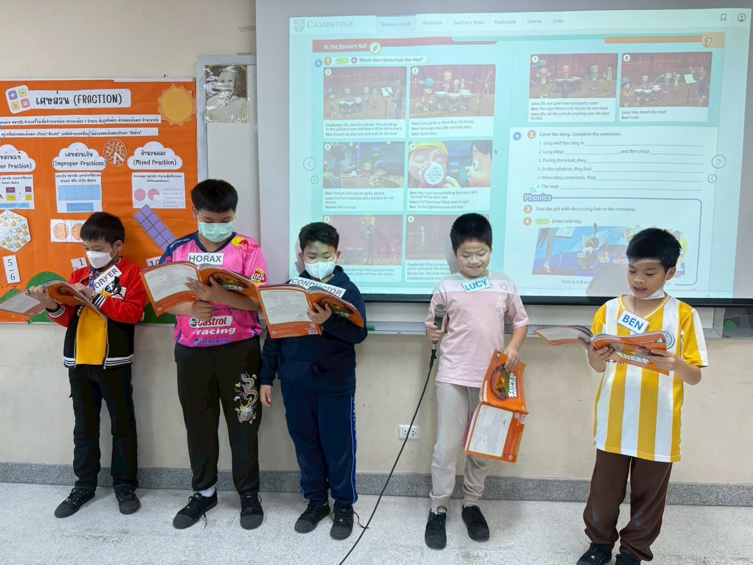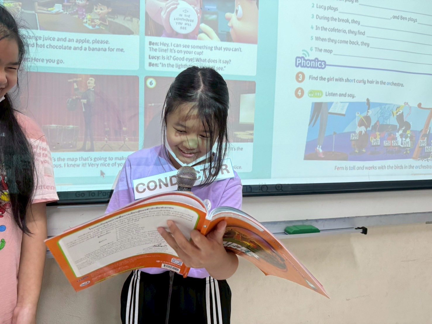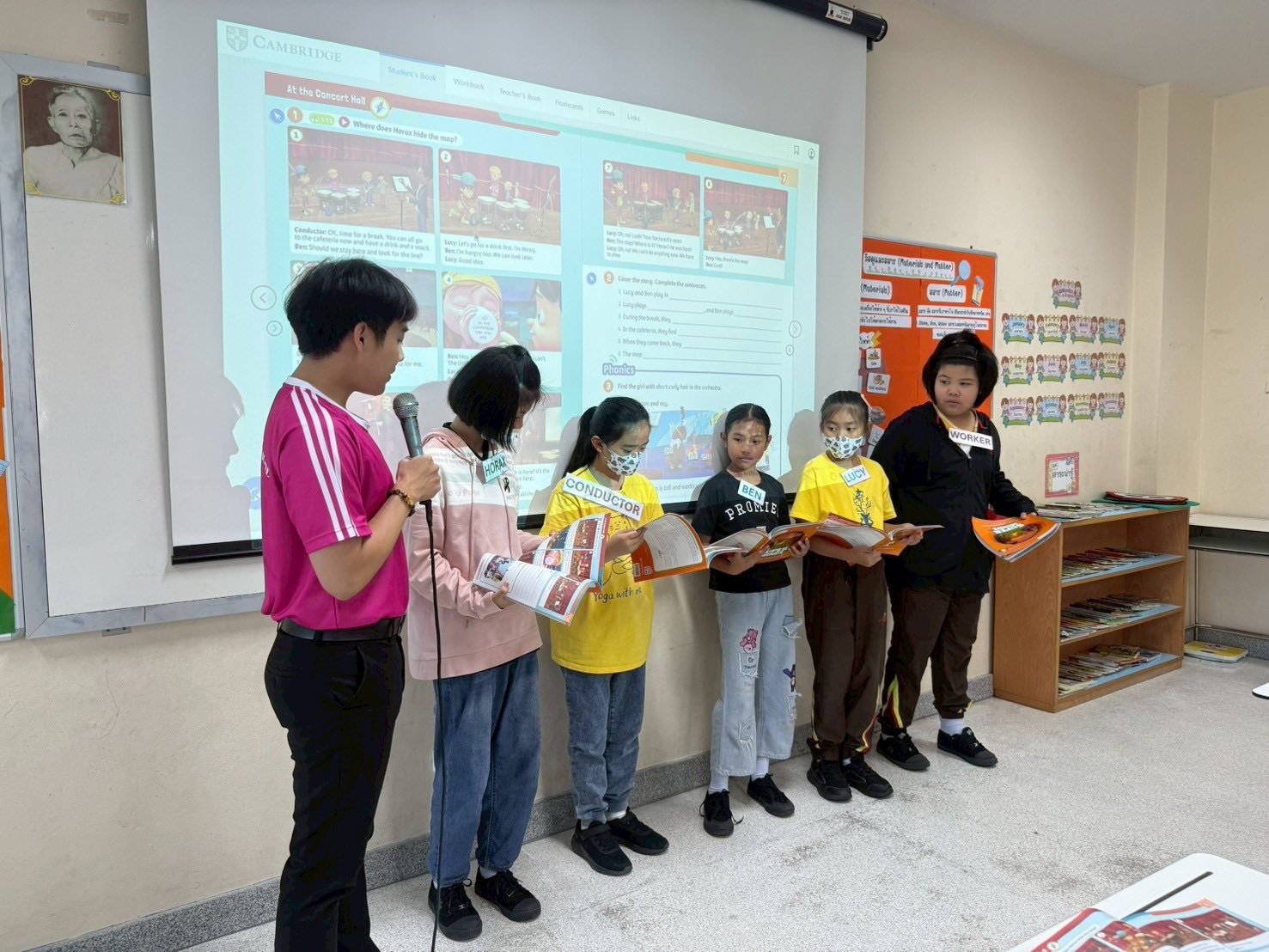 Students practiced reading and performing dialogues from their textbooks in the story âAt the Concert Hall.â The activity helped develop their speaking and reading skills, encouraged emotional expression through acting, and promoted teamwork. Students gained confidence in using English while learning in a fun and engaging way.