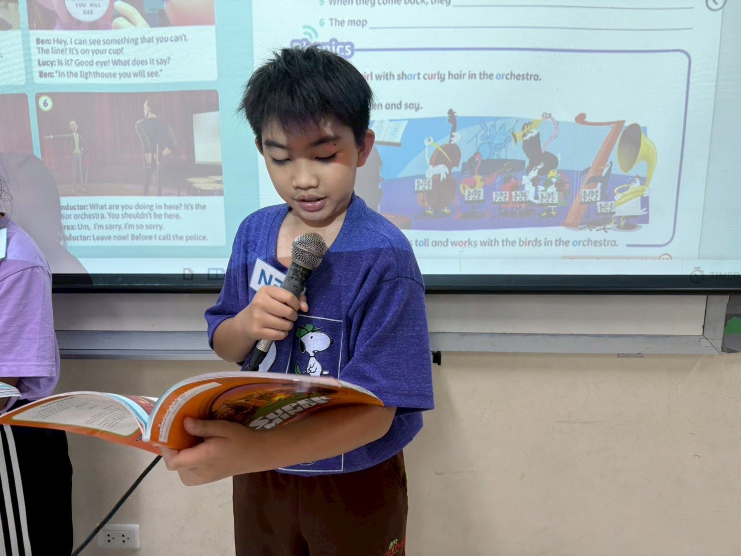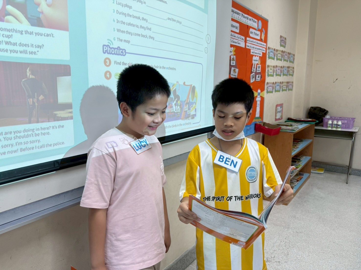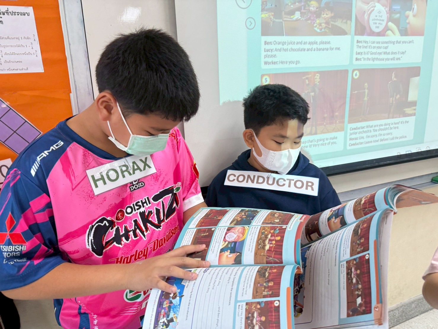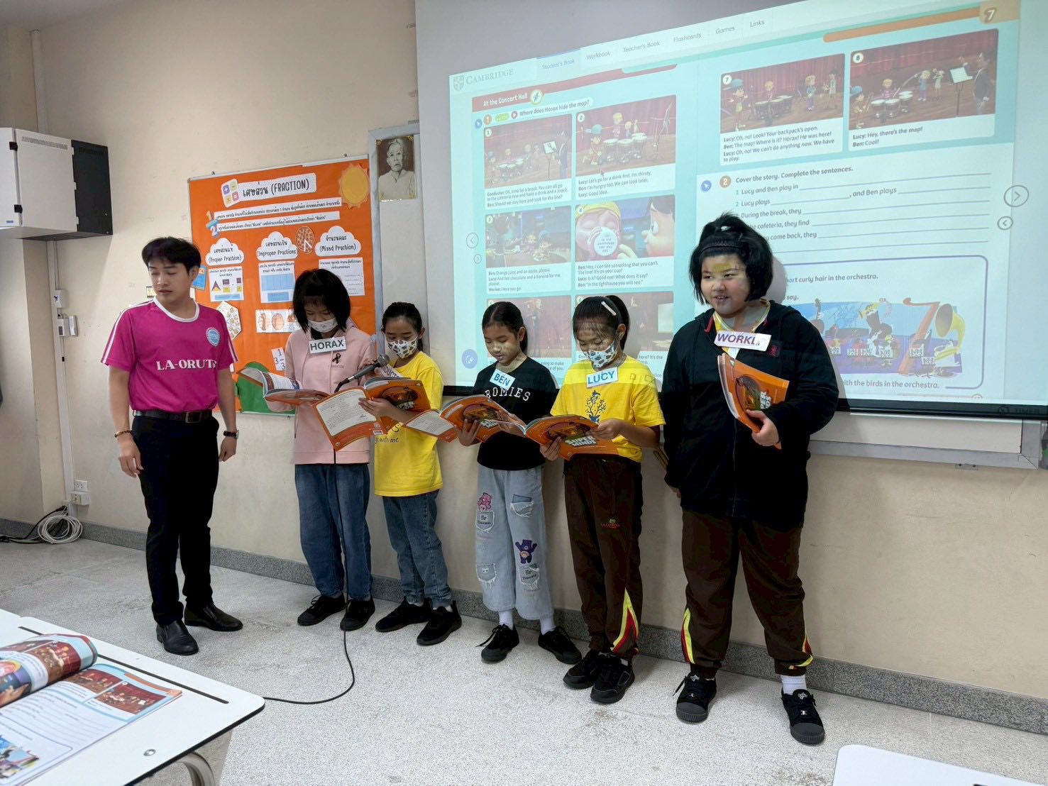 Students practiced reading and performing dialogues from their textbooks in the story âAt the Concert Hall.â The activity helped develop their speaking and reading skills, encouraged emotional expression through acting, and promoted teamwork. Students gained confidence in using English while learning in a fun and engaging way.