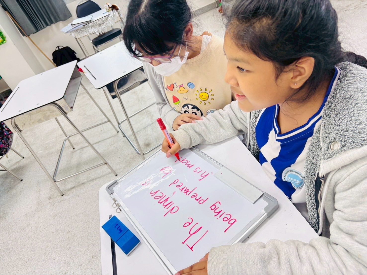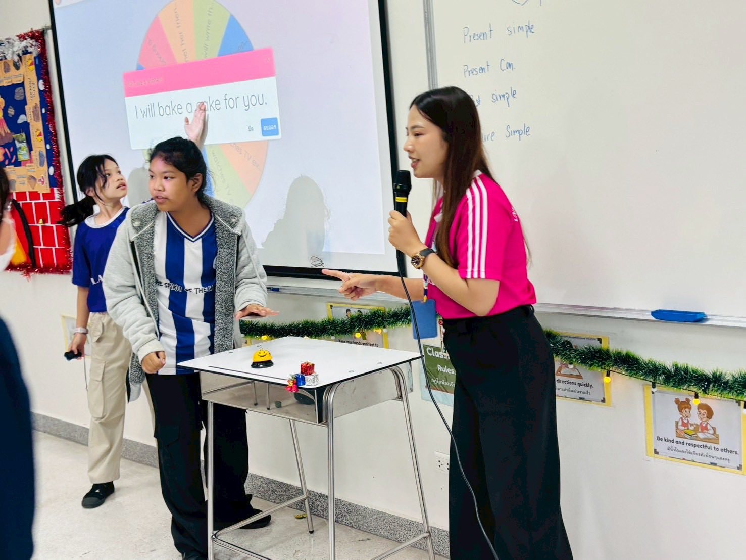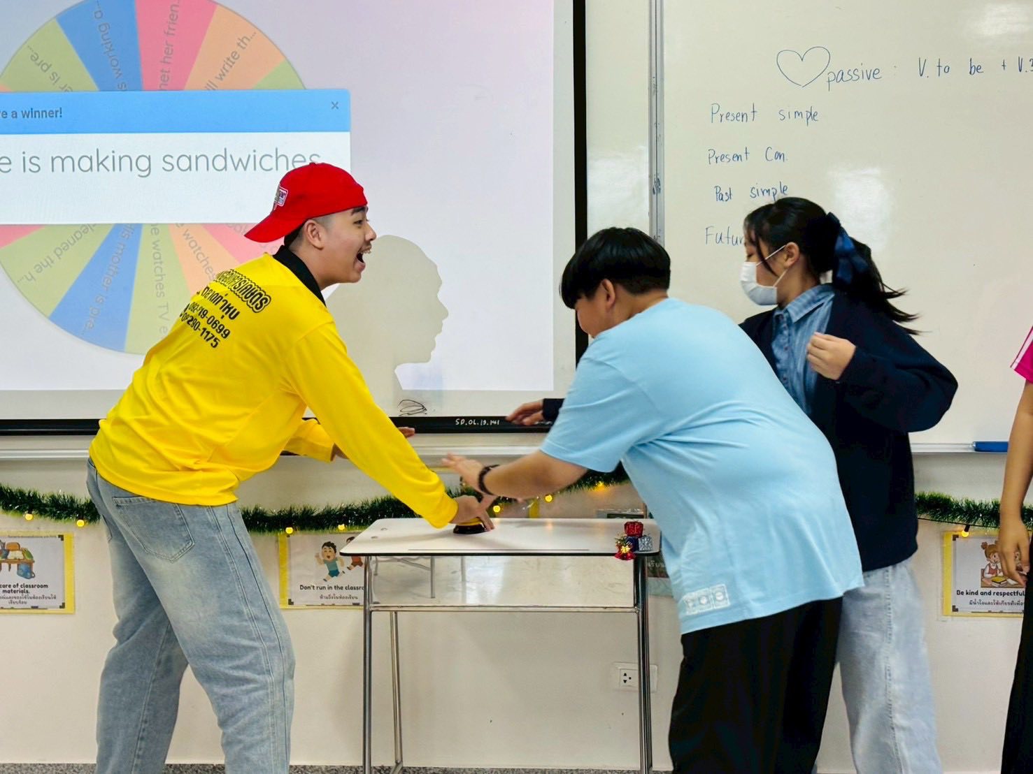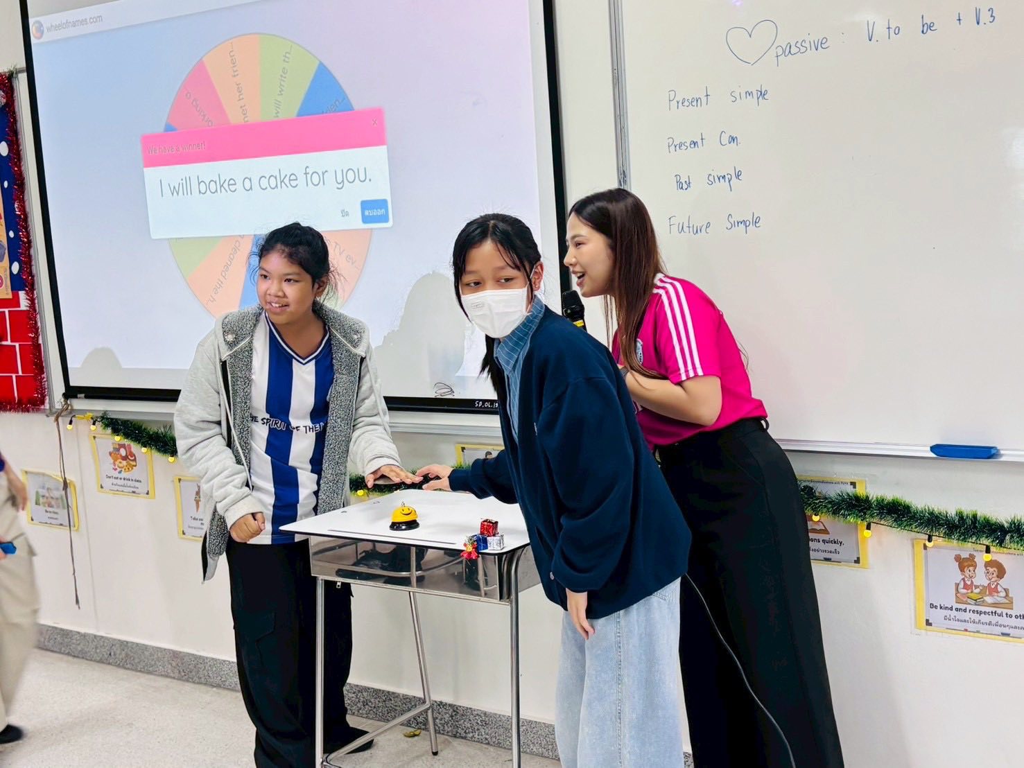 Students and teachers started the activity by reviewing the lesson about how to change the sentences into passive voice form.