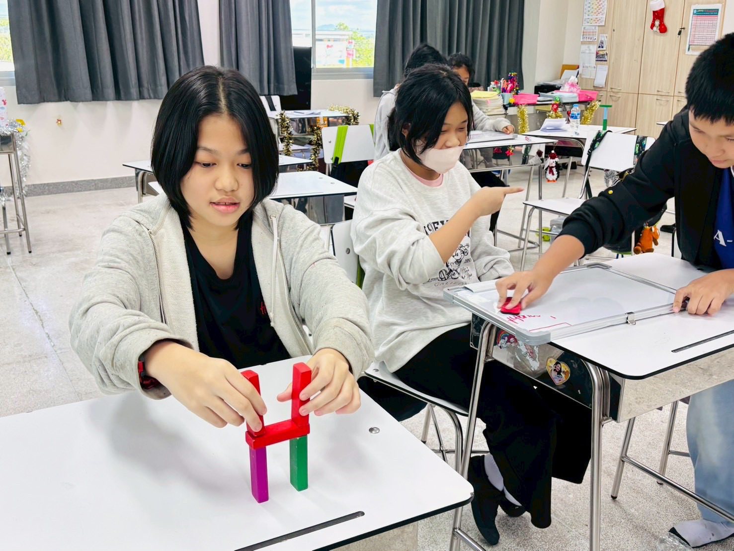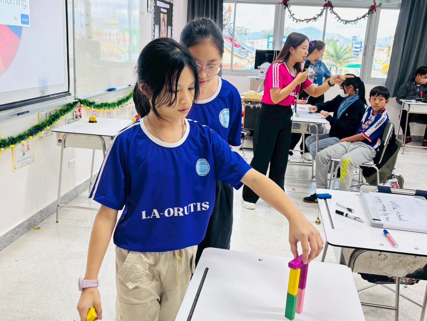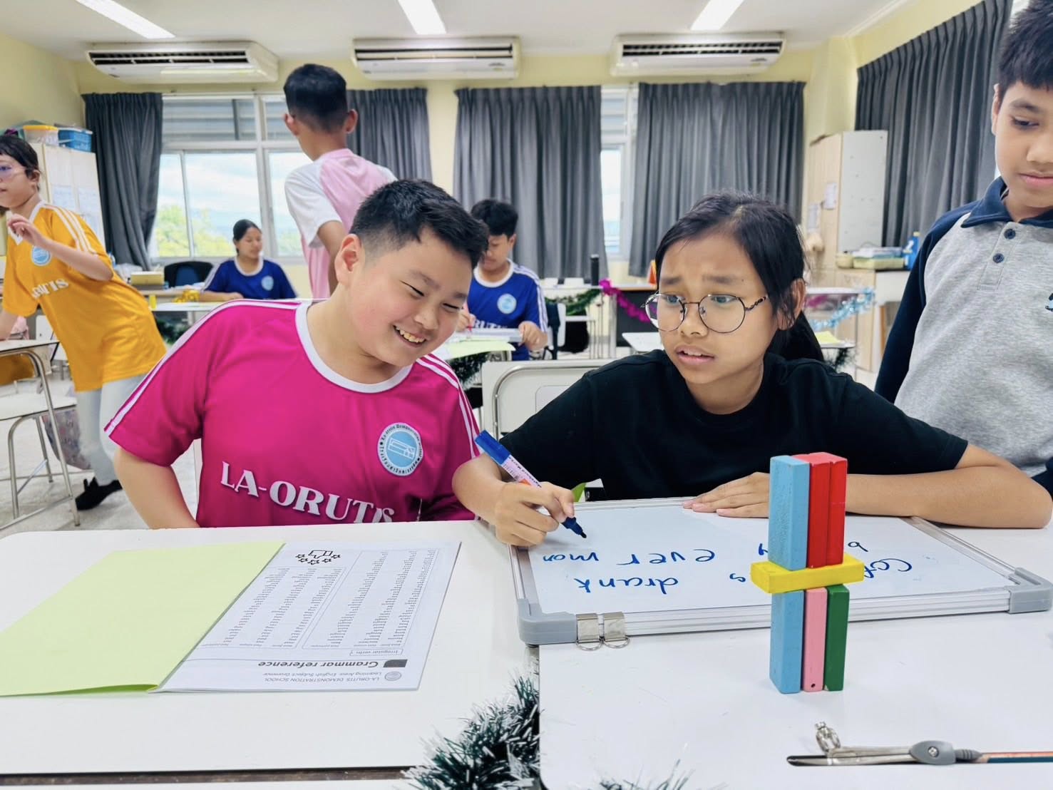 After that, They wrote these sentences into passive form according from “Passive Voice Station” activity. After they got the (block) points, they built the building together. Which building is the tallest is the winner