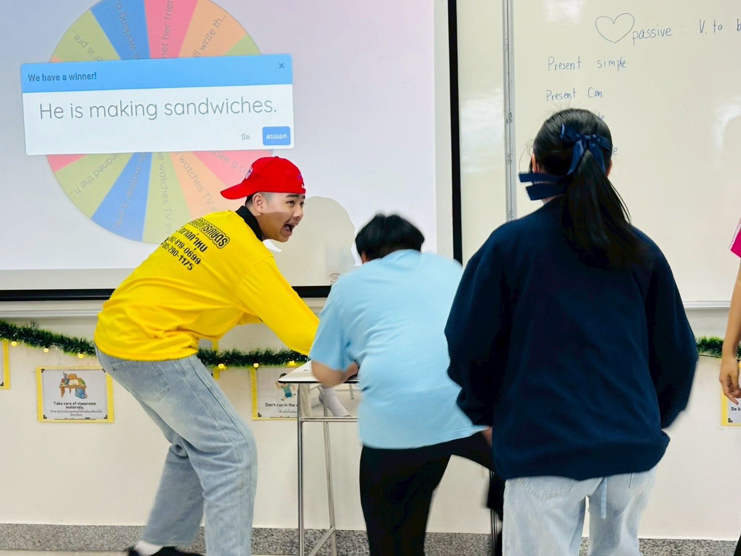 Then, students divided into groups and classify the sentences from the random wheel. (Which sen tence is it?)