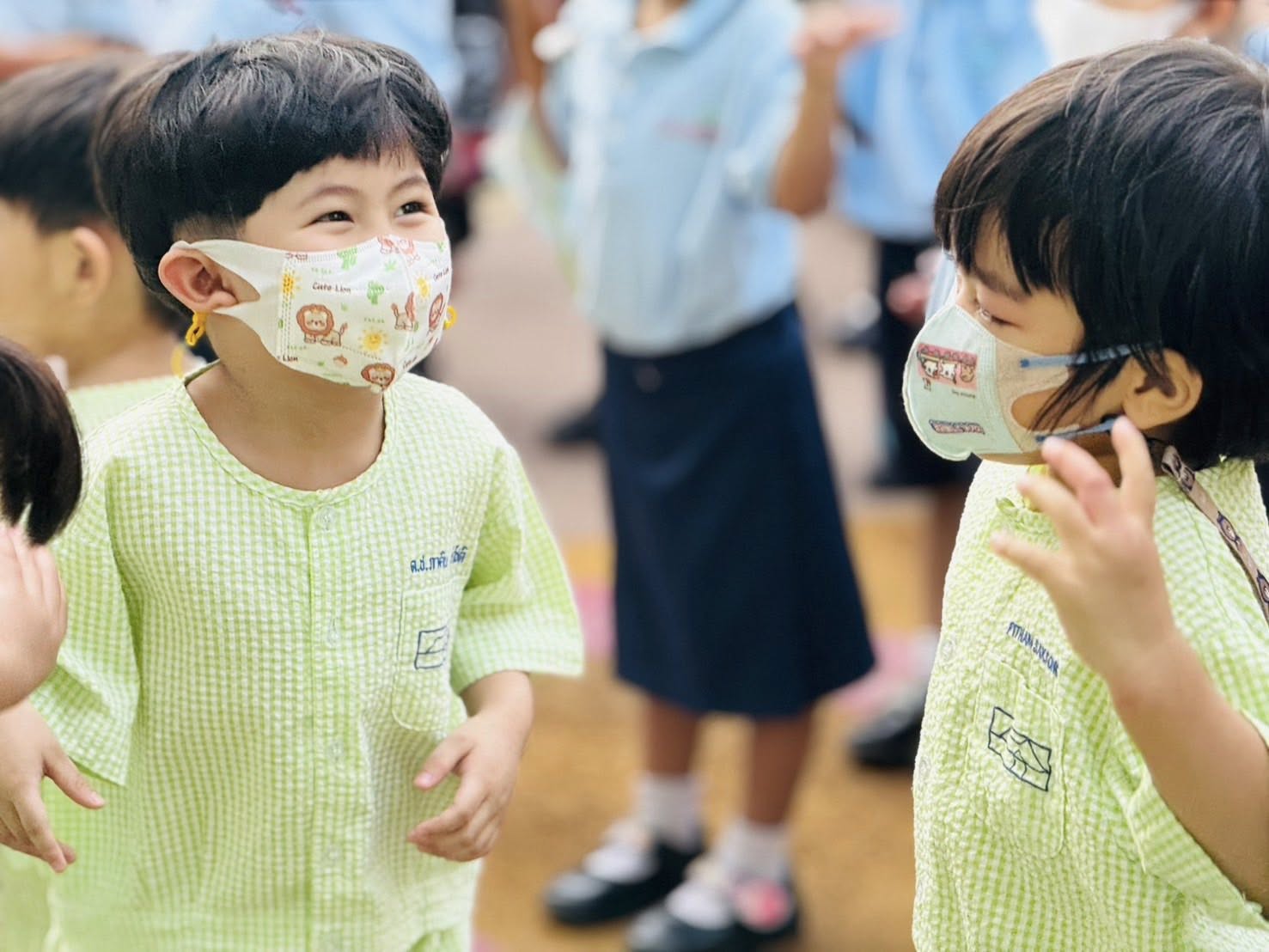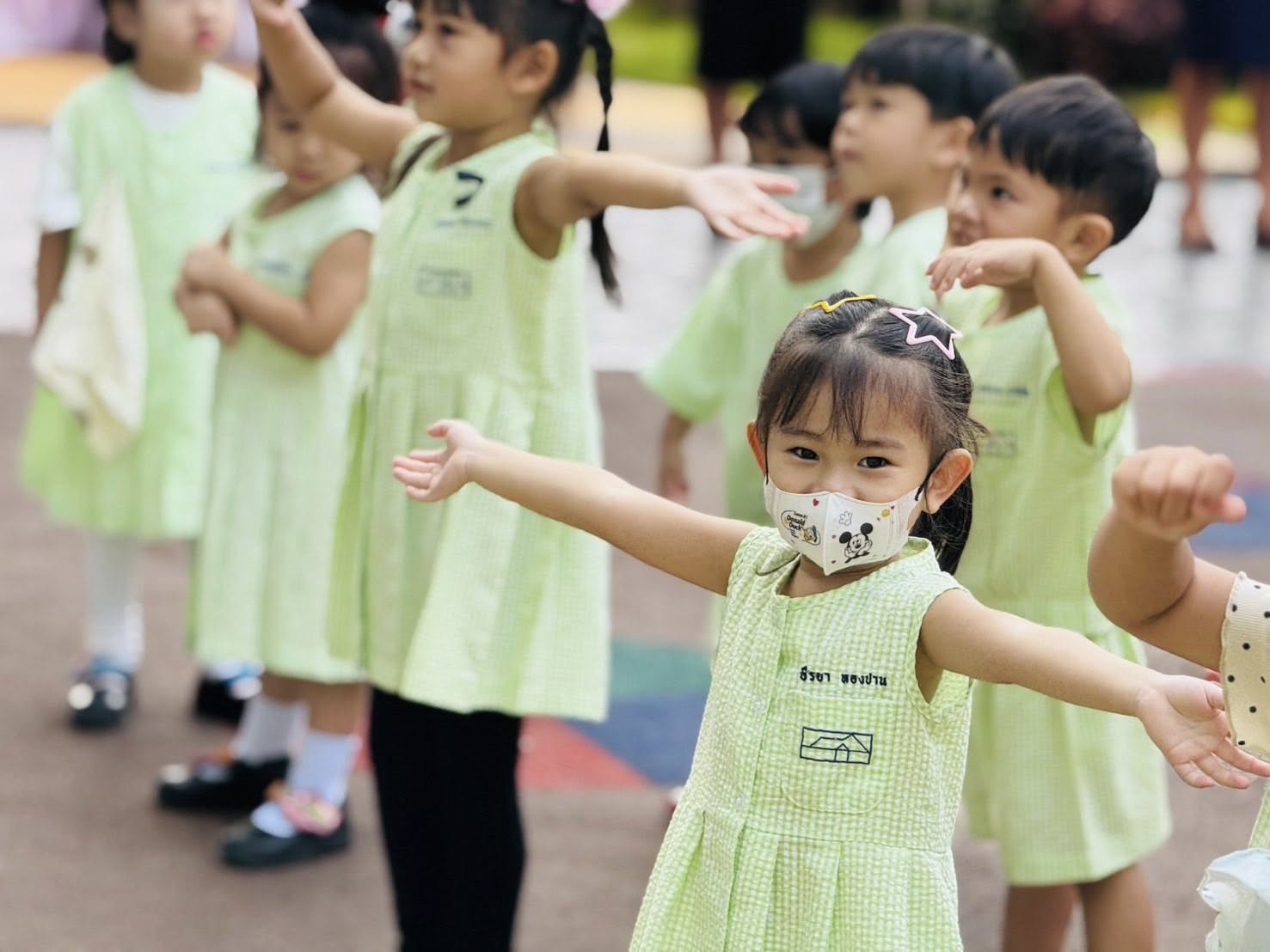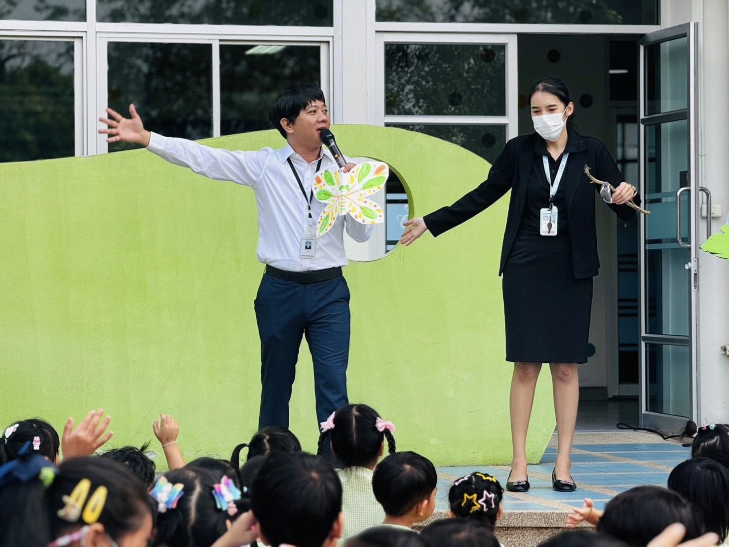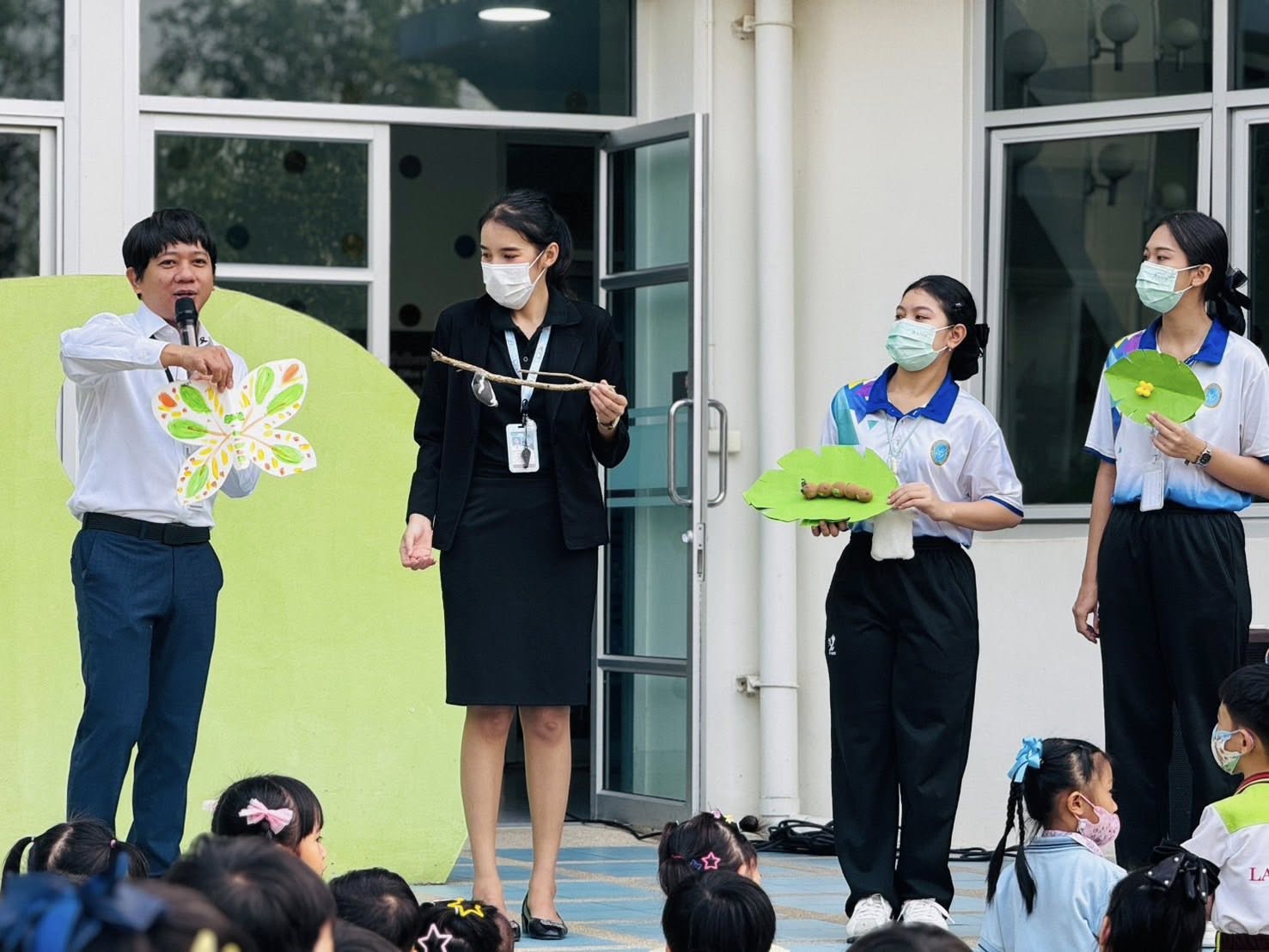 ภาพกิจกรรมเข้าแถวในช่วงเช้ากับบรรยากาศการเรียนรู้เรื่องวงจรชีวิตผีเสื้อ 🦋
