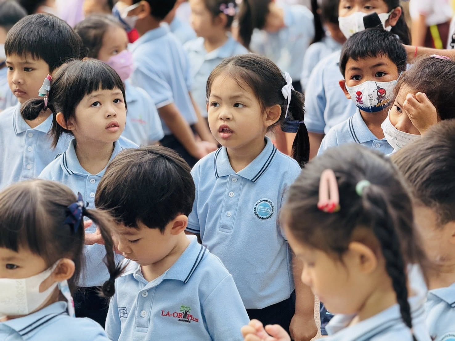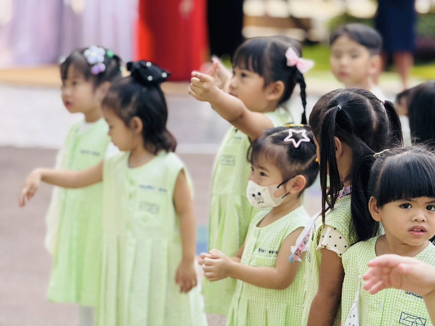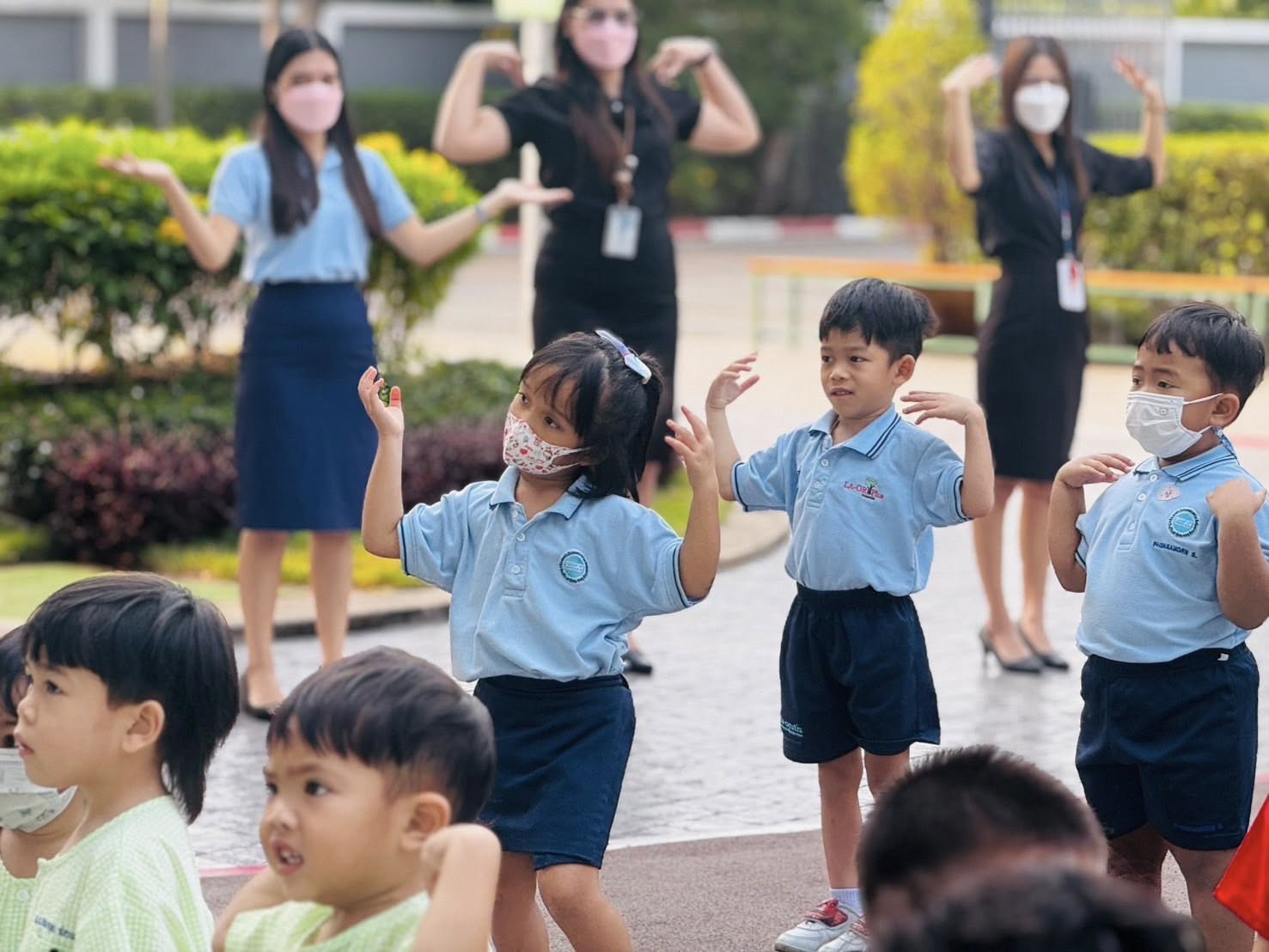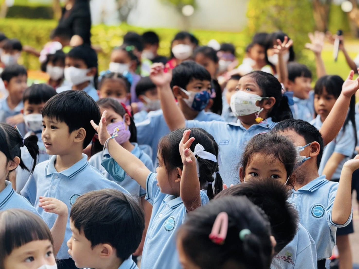 ภาพกิจกรรมเข้าแถวในช่วงเช้ากับบรรยากาศการเรียนรู้เรื่องวงจรชีวิตผีเสื้อ 🦋