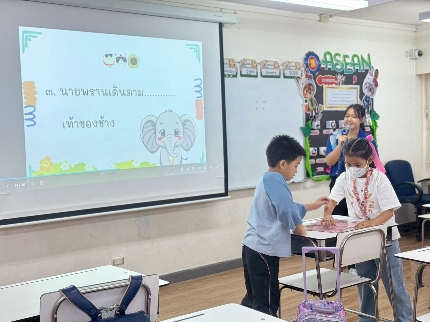 ประมวลภาพบรรยากาศการเรียนการสอน วันที่ 19 – 23 มกราคม 2569 (กรุงเทพมหานคร) ภาพบรรยากาศการเรียนการสอนนี้ เผยแพร่เพื่อประชาสัมพันธ์การจัดกิจกรรมการเรียนการสอนและการทำกิจกรรมต่าง ๆ ของนักเรียนในทุกระดับชั้น ทั้งภายในและภายนอกห้องเรียน อีกทั้งยังเป็นการสื่อสารทำความเข้าใจระหว่างโรงเรียนและผู้ปกครอง ถึงกระบวนการจัดการเรียนการสอนและการทำกิจกรรม ทั้งนี้ขอความอนุเคราะห์ผู้ปกครองไม่นำภาพนักเรียนที่ไม่ใช่บุตรหลานของท่านไปเผยแพร่ยังสื่อออนไลน์ต่างๆ