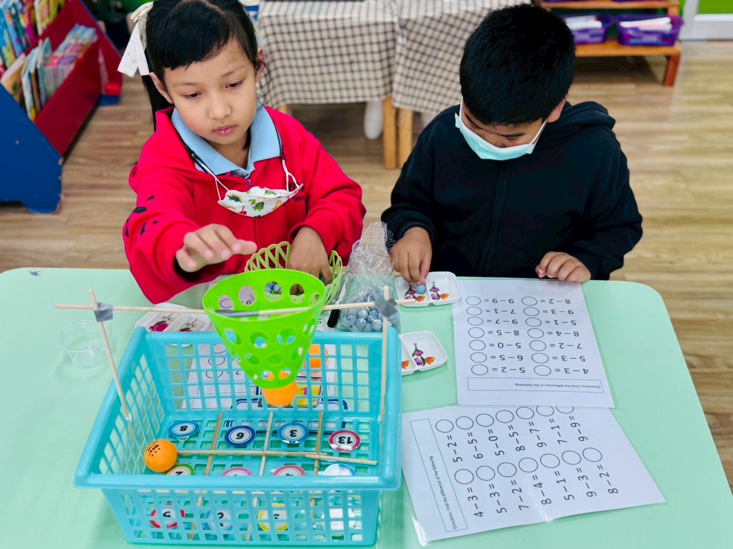 This fun and engaging activity combines play with mathematics, allowing learners to practice solving simple math problems while enjoying the game 🧠🎯