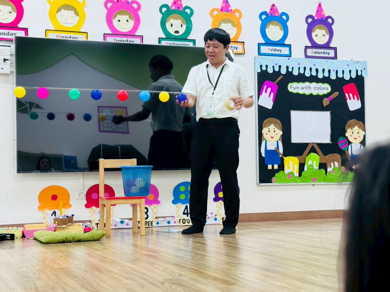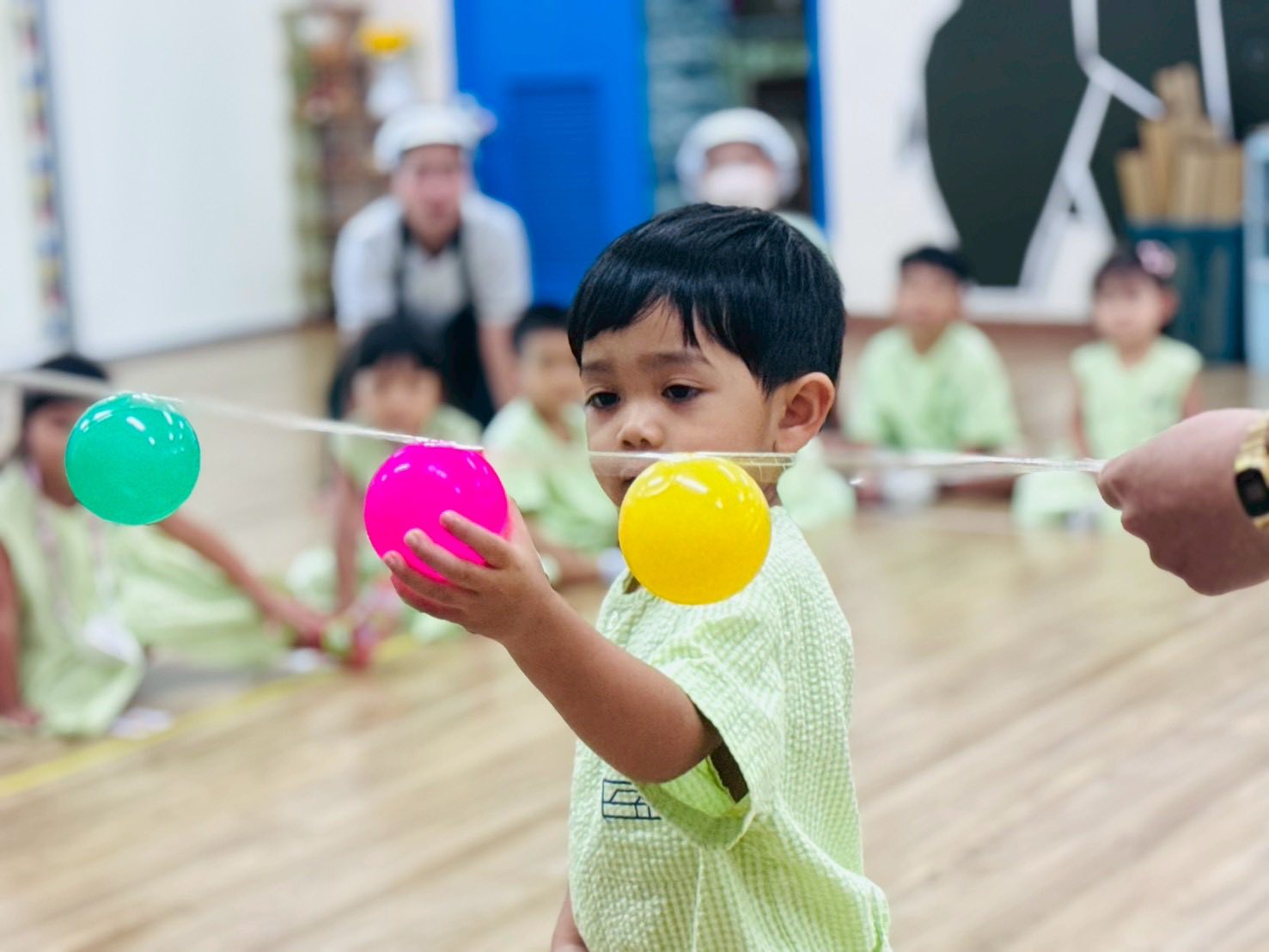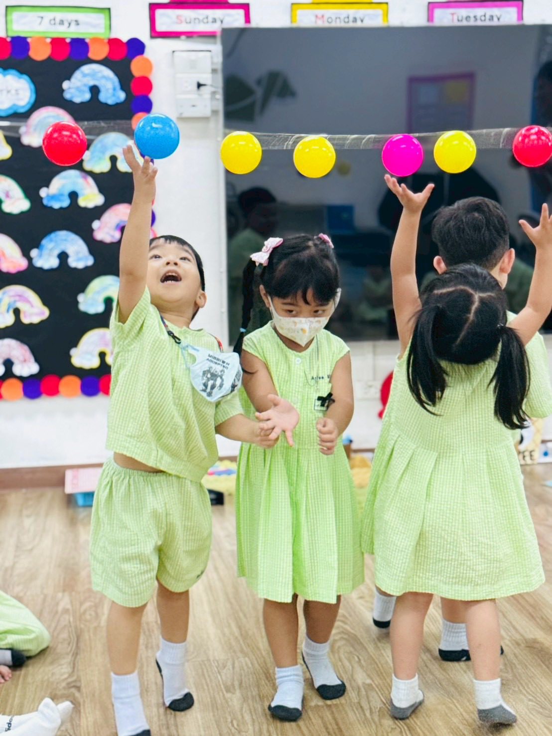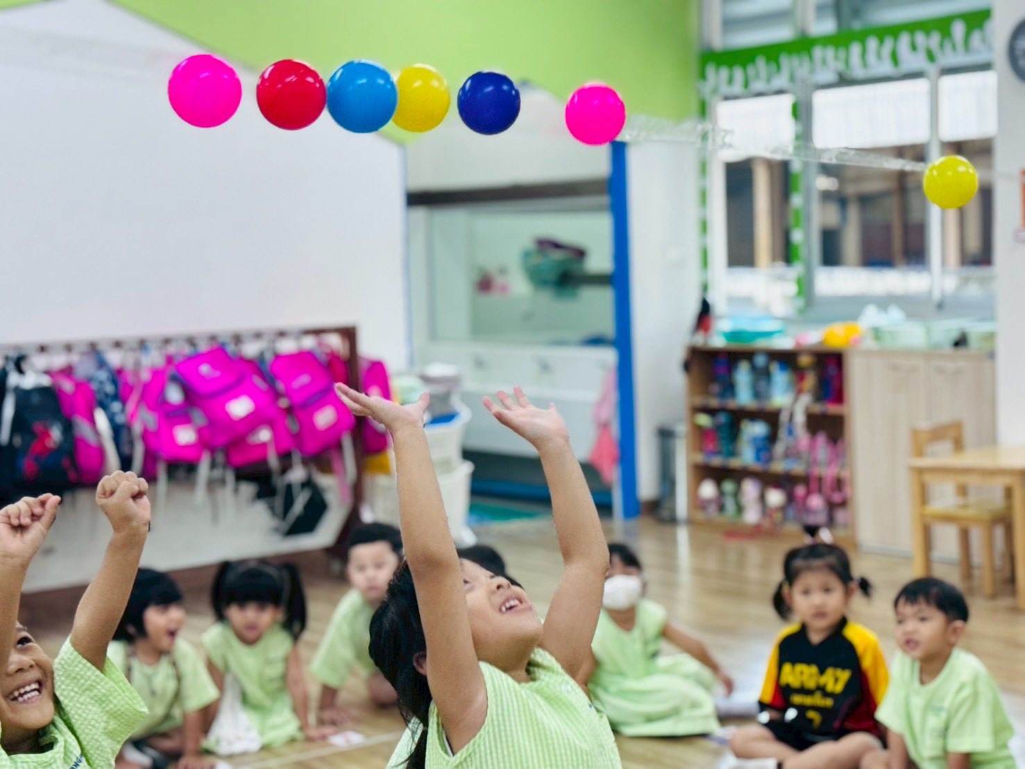 After learning different colors, our young learners had fun jumping âĻ and grabbing colorful balls ðīðĄðĒðĩ.