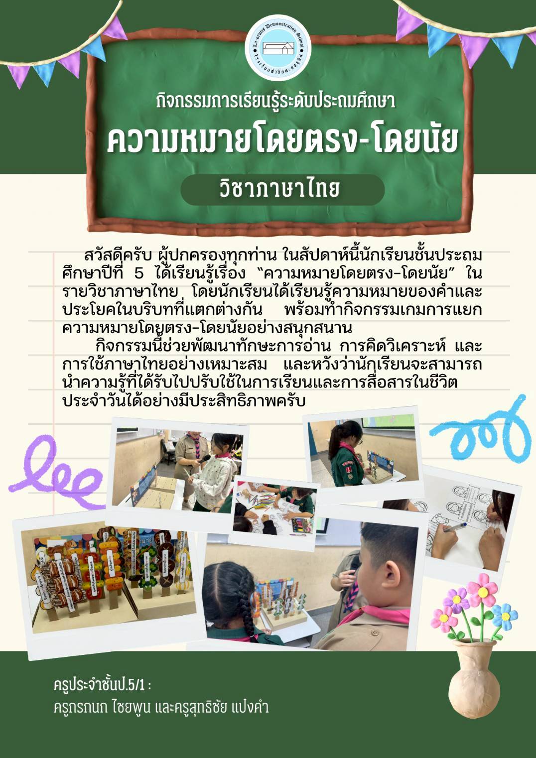 กิจกรรม | ระดับชั้นประถมศึกษาปีที่ 2 | ระดับชั้นประถมศึกษาปีที่ 4 | ระดับชั้นประถมศึกษาปีที่ 5 | ระดับชั้นประถมศึกษาปีที่ 6