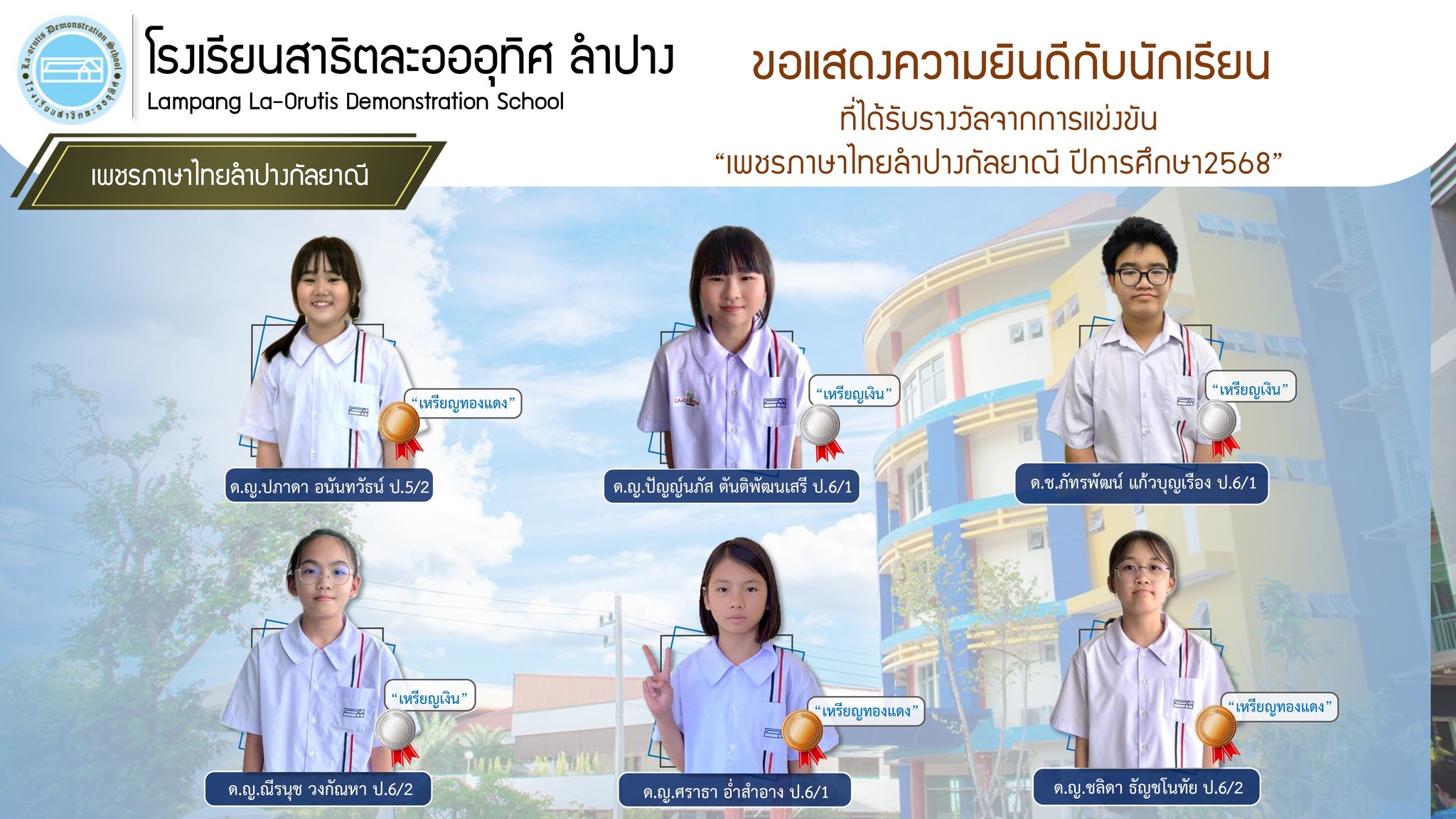 ขอแสดงความยินดี 👏🏻 กับนักเรียนที่ได้รับรางวัล จากการแข่งขัน “เพชรภาษาไทยลำปางกัลยาณี” รายการของ โรงเรียนลำปางกัลยาณี ปีการศึกษา 2568