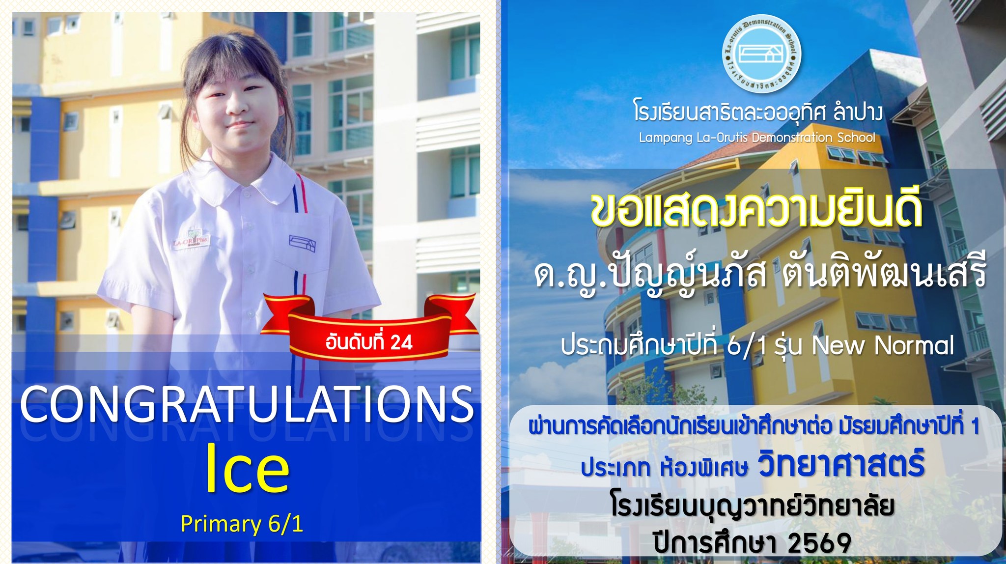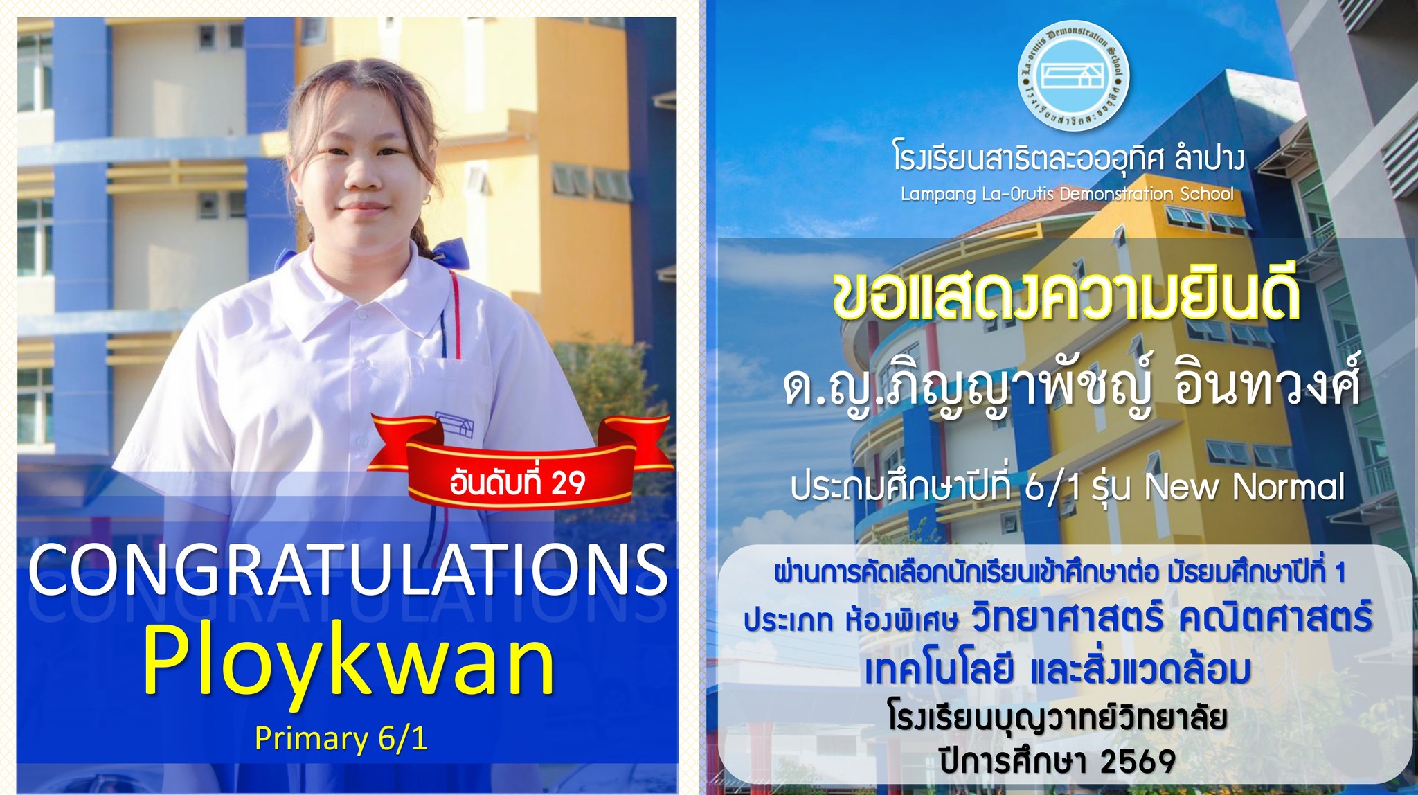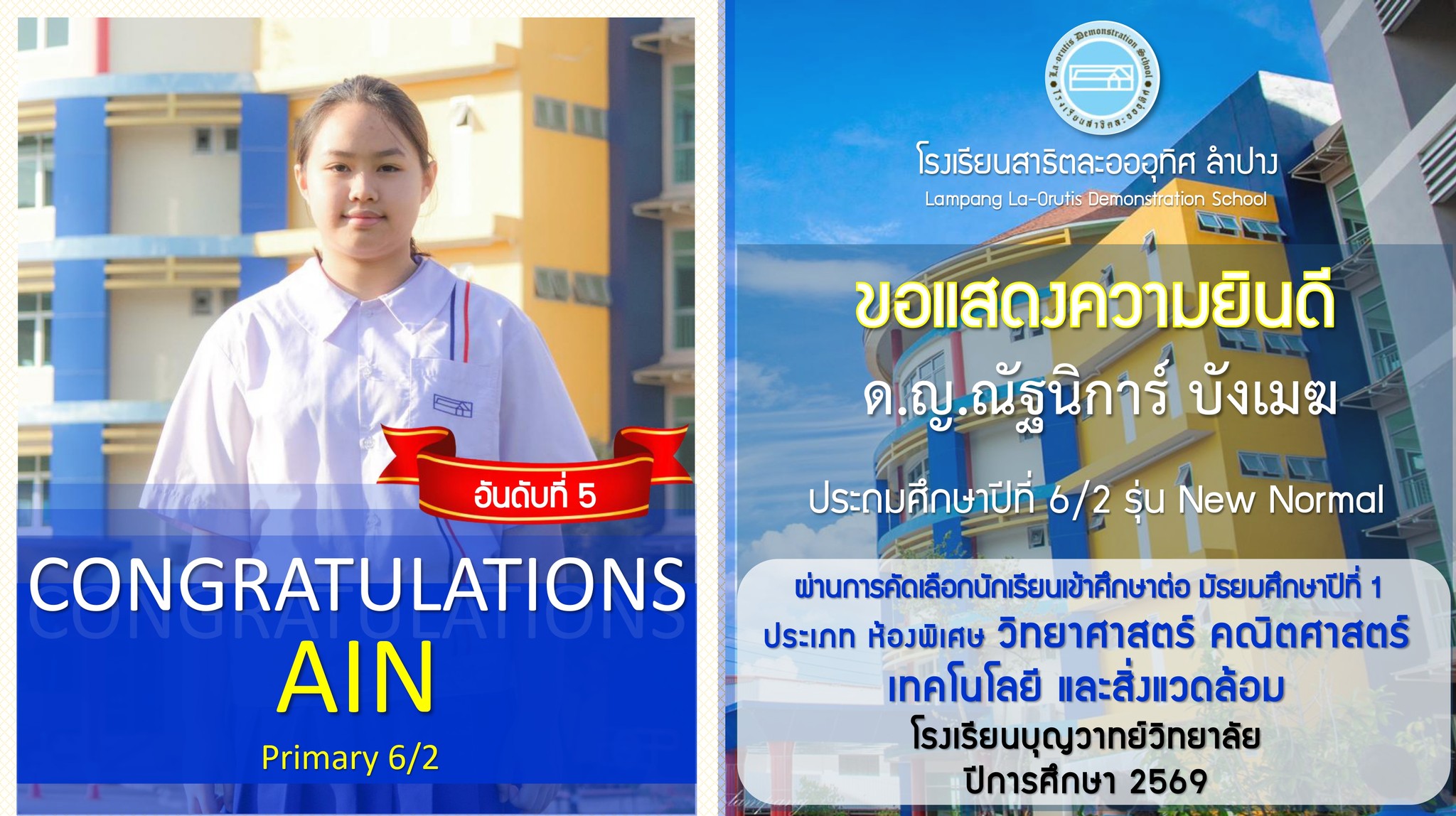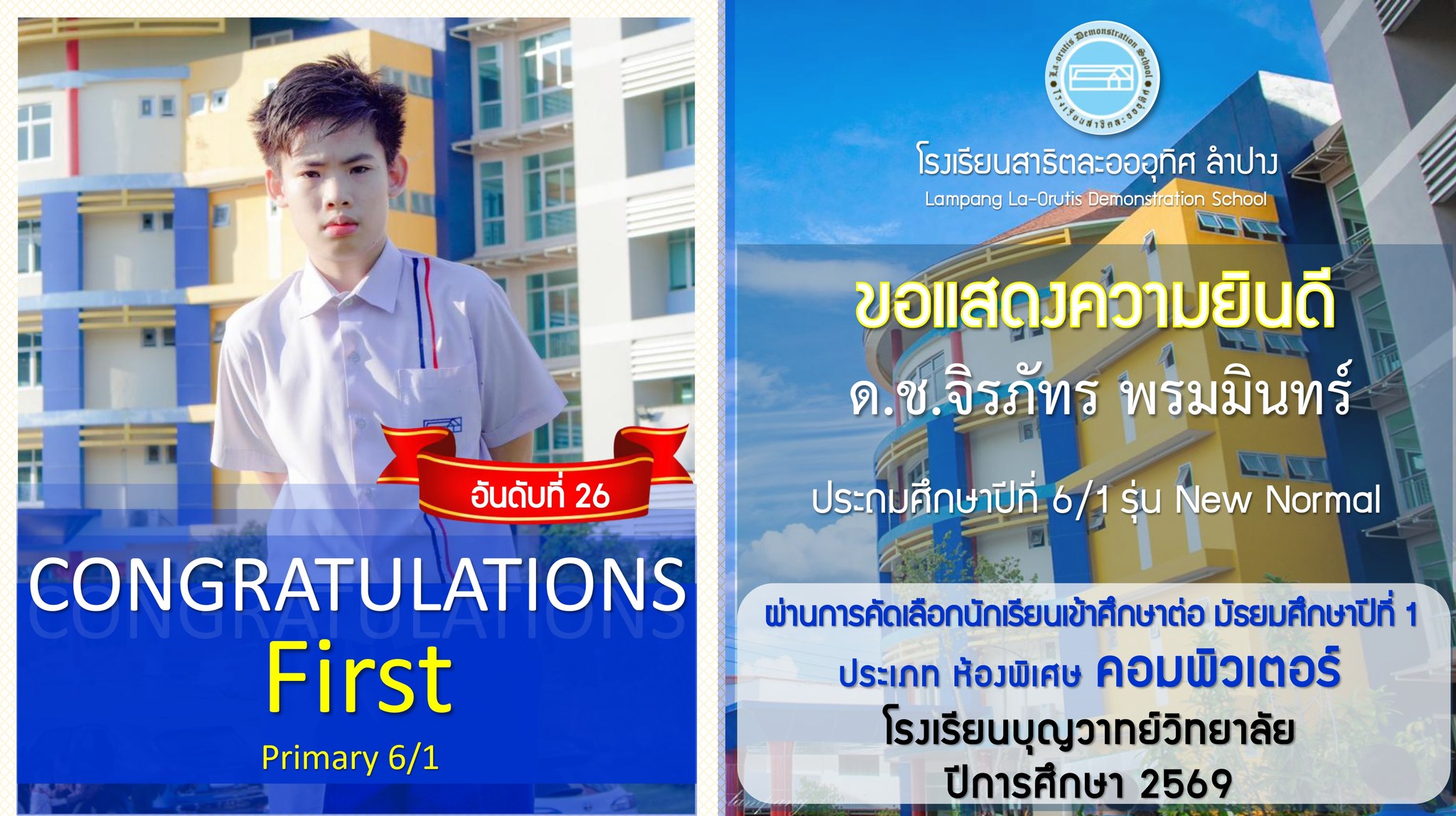 โรงเรียนสาธิตละอออุทิศ ลำปางขอแสดงความยินดี 👏กับนักเรียนประถมศึกษาปีที่ 6ที่ผ่านการคัดเลือกเข้าศึกษาต่อมัธยมศึกษาปีที่ 1ประเภทห้องเรียน พิเศษ