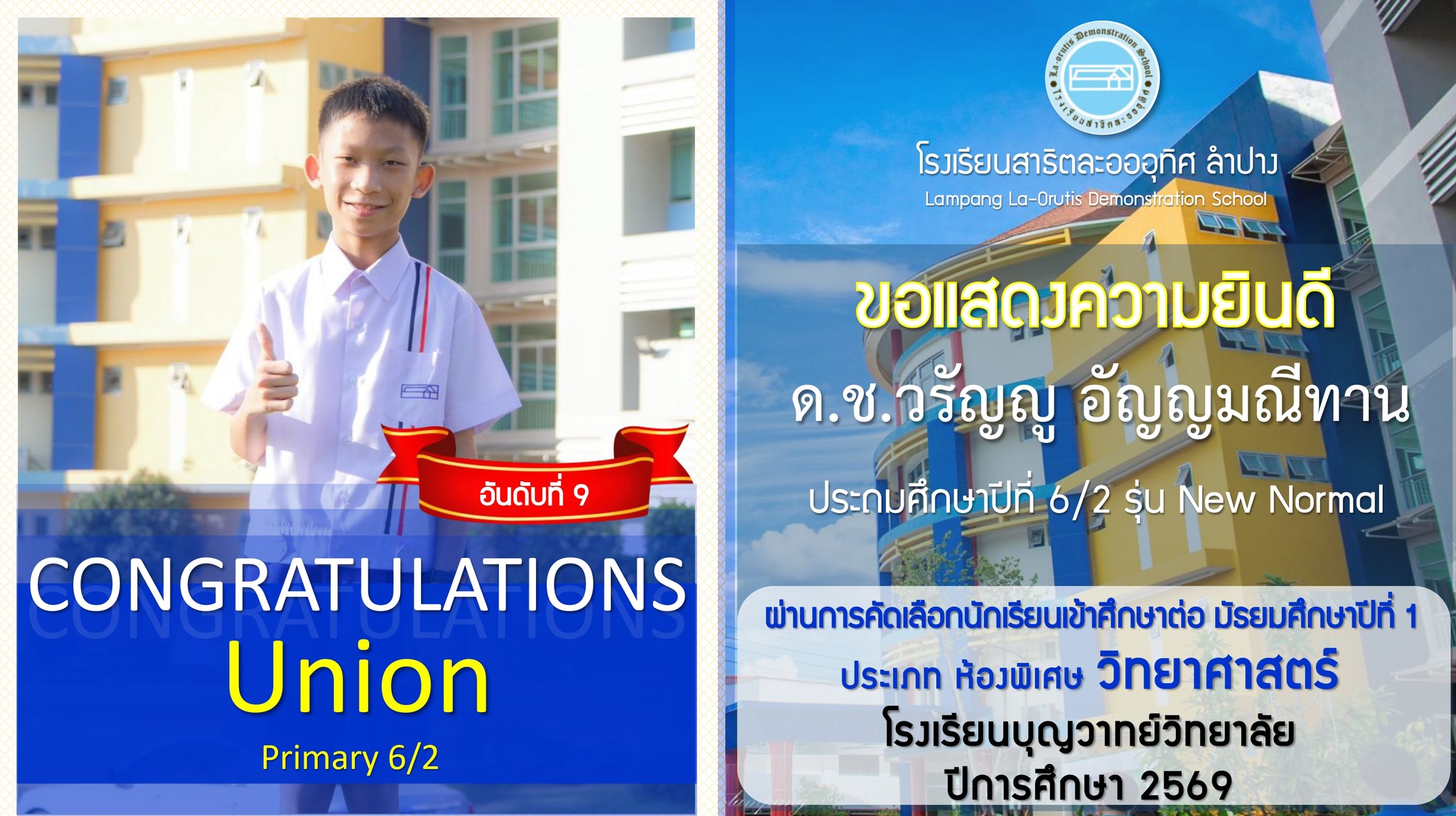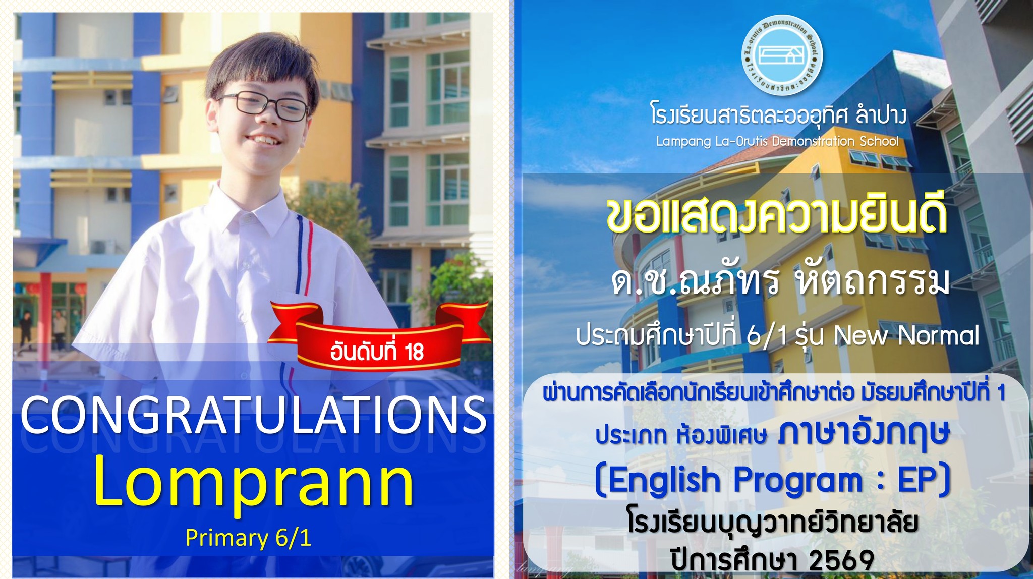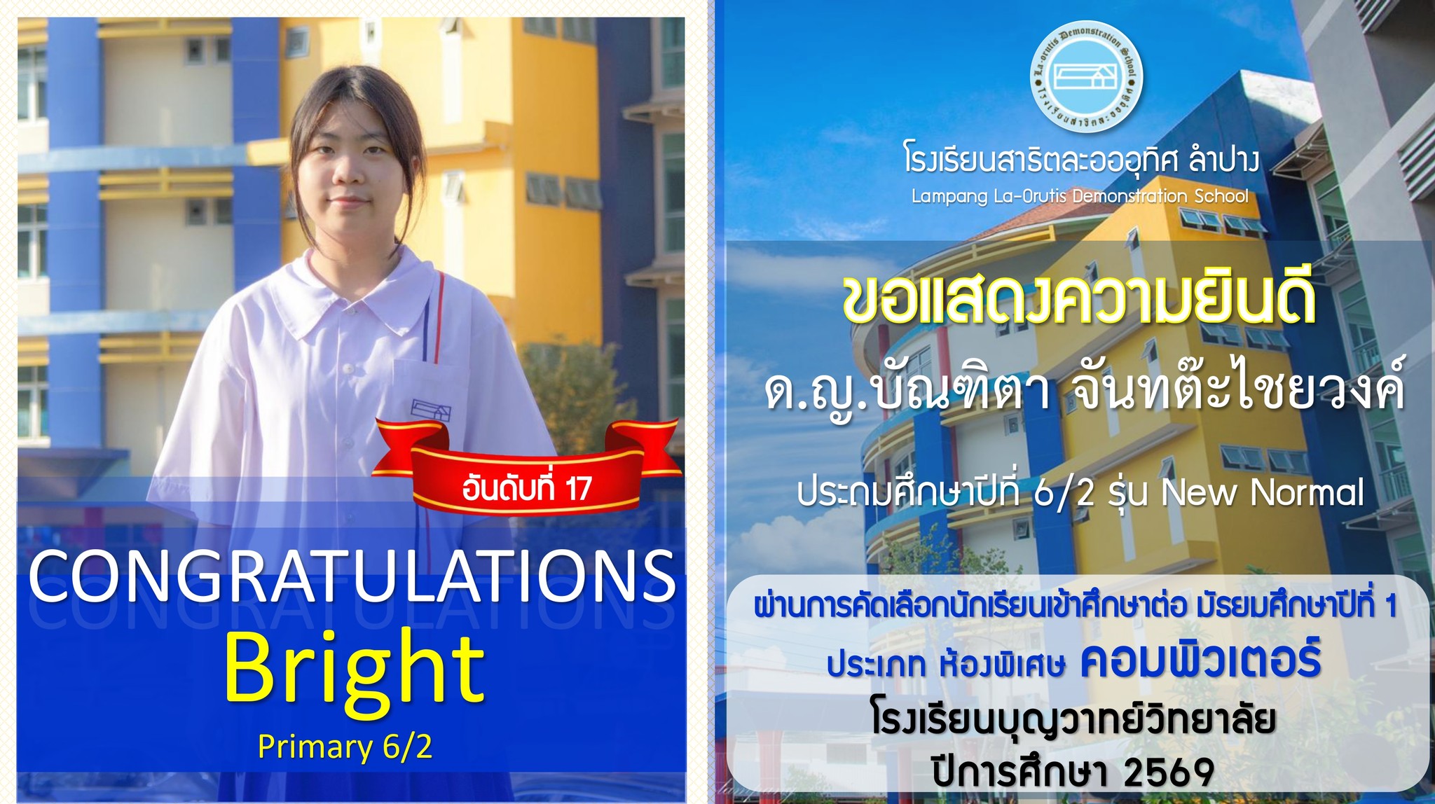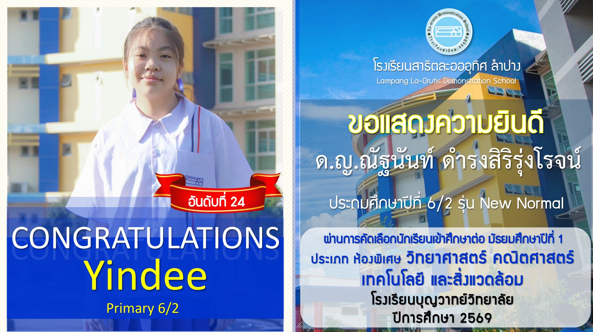 โรงเรียนสาธิตละอออุทิศ ลำปางขอแสดงความยินดี 👏กับนักเรียนประถมศึกษาปีที่ 6ที่ผ่านการคัดเลือกเข้าศึกษาต่อมัธยมศึกษาปีที่ 1ประเภทห้องเรียน พิเศษ
