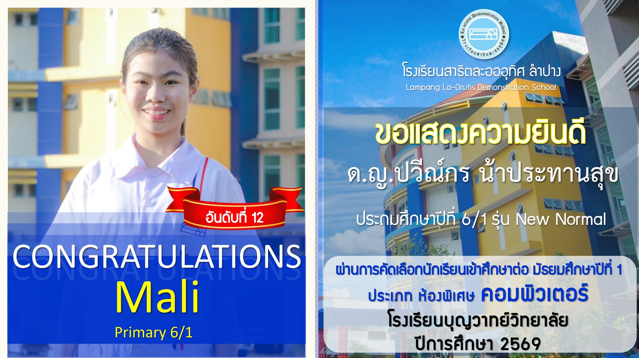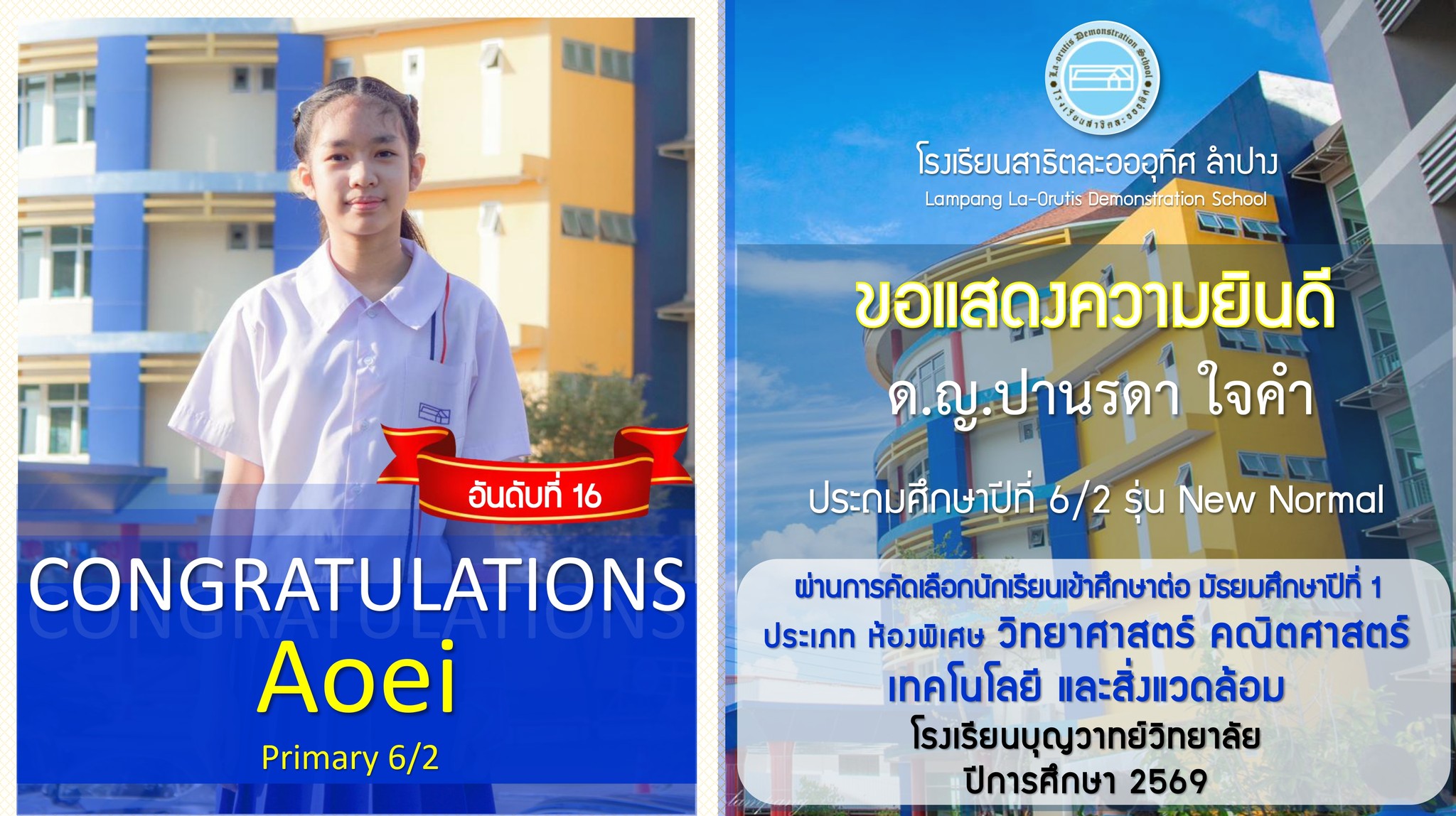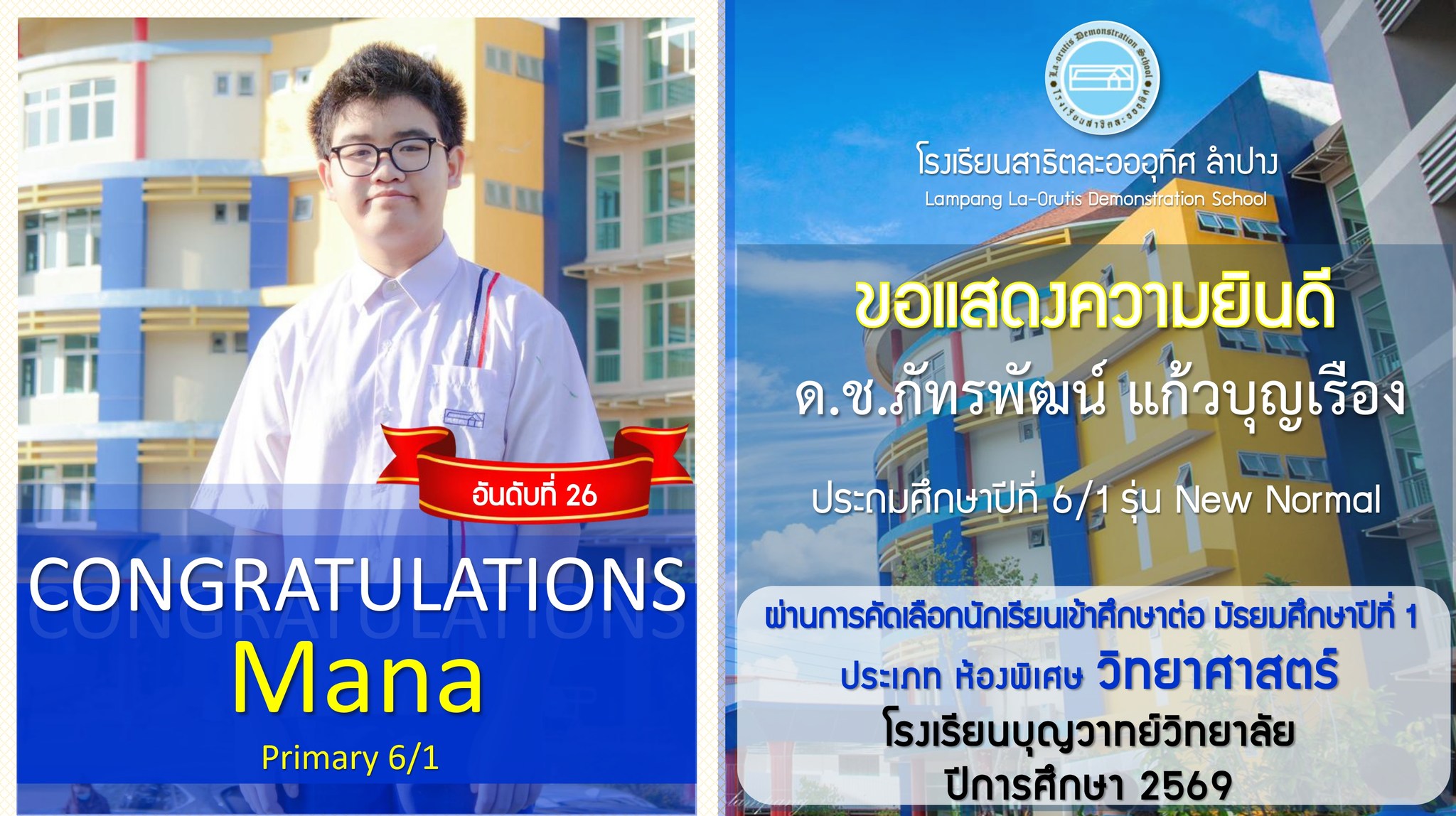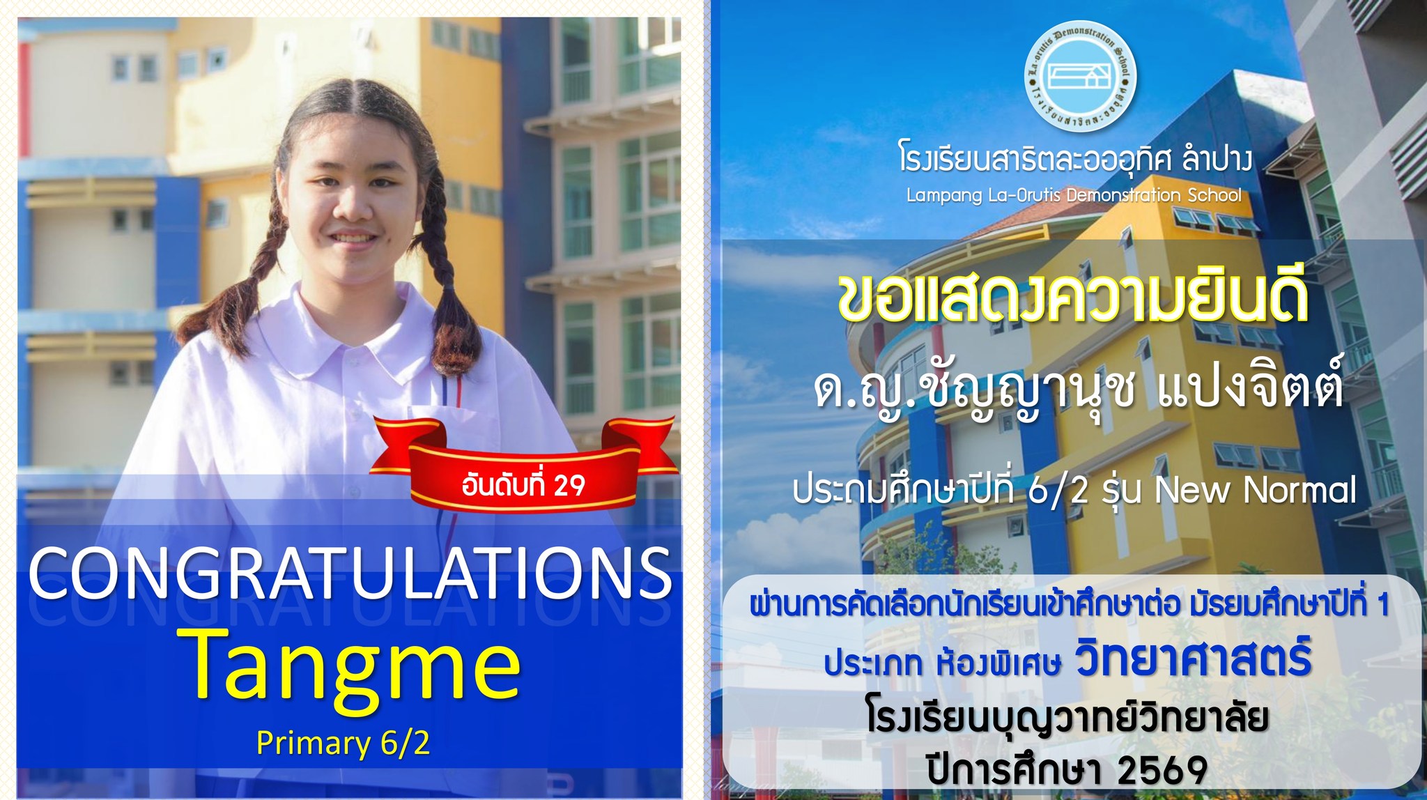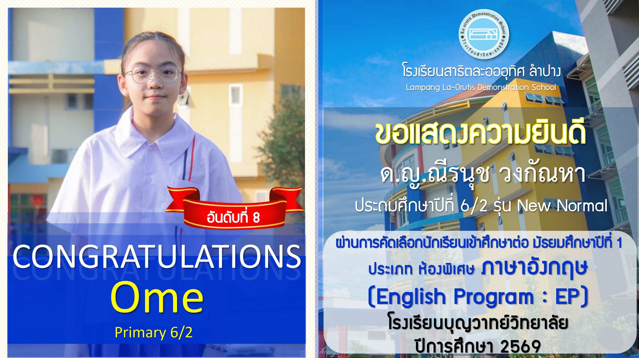 โรงเรียนสาธิตละอออุทิศ ลำปางขอแสดงความยินดี 👏กับนักเรียนประถมศึกษาปีที่ 6ที่ผ่านการคัดเลือกเข้าศึกษาต่อมัธยมศึกษาปีที่ 1ประเภทห้องเรียน พิเศษ