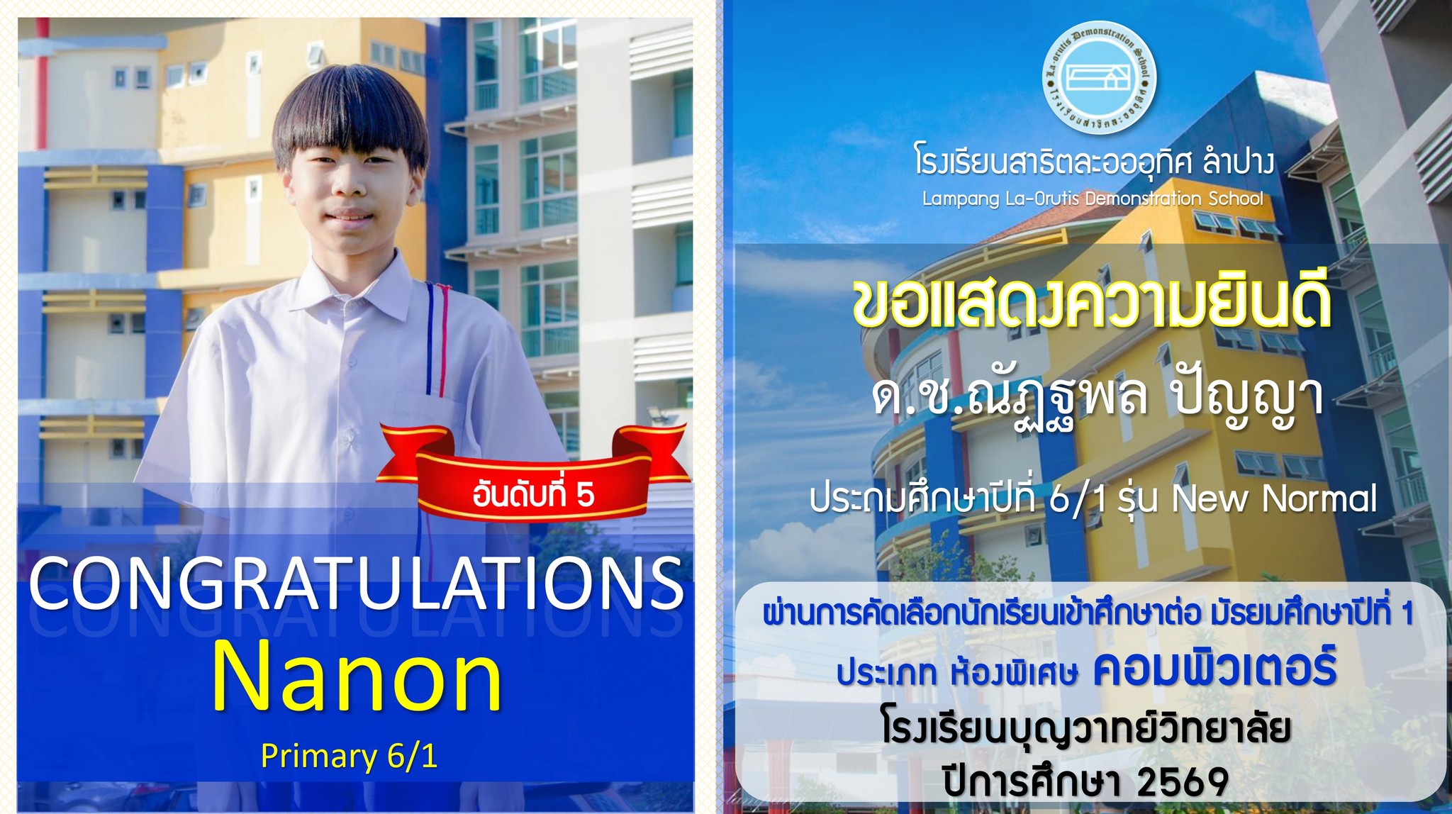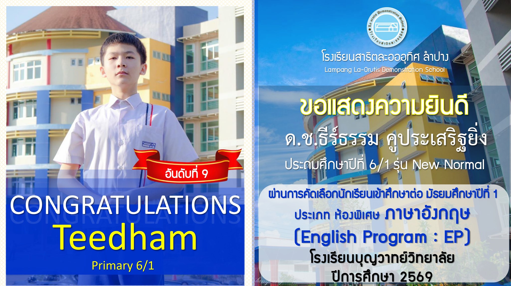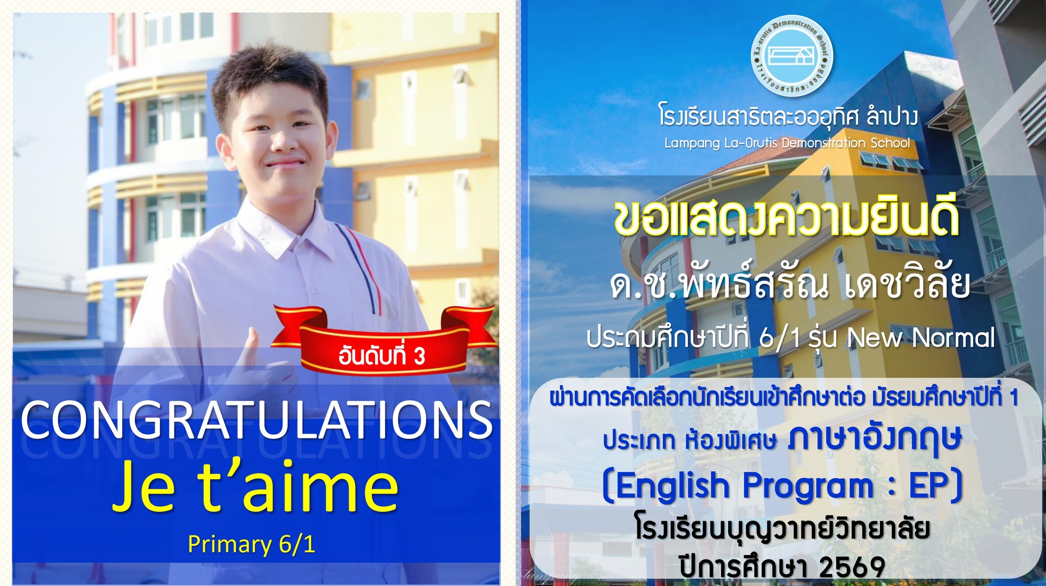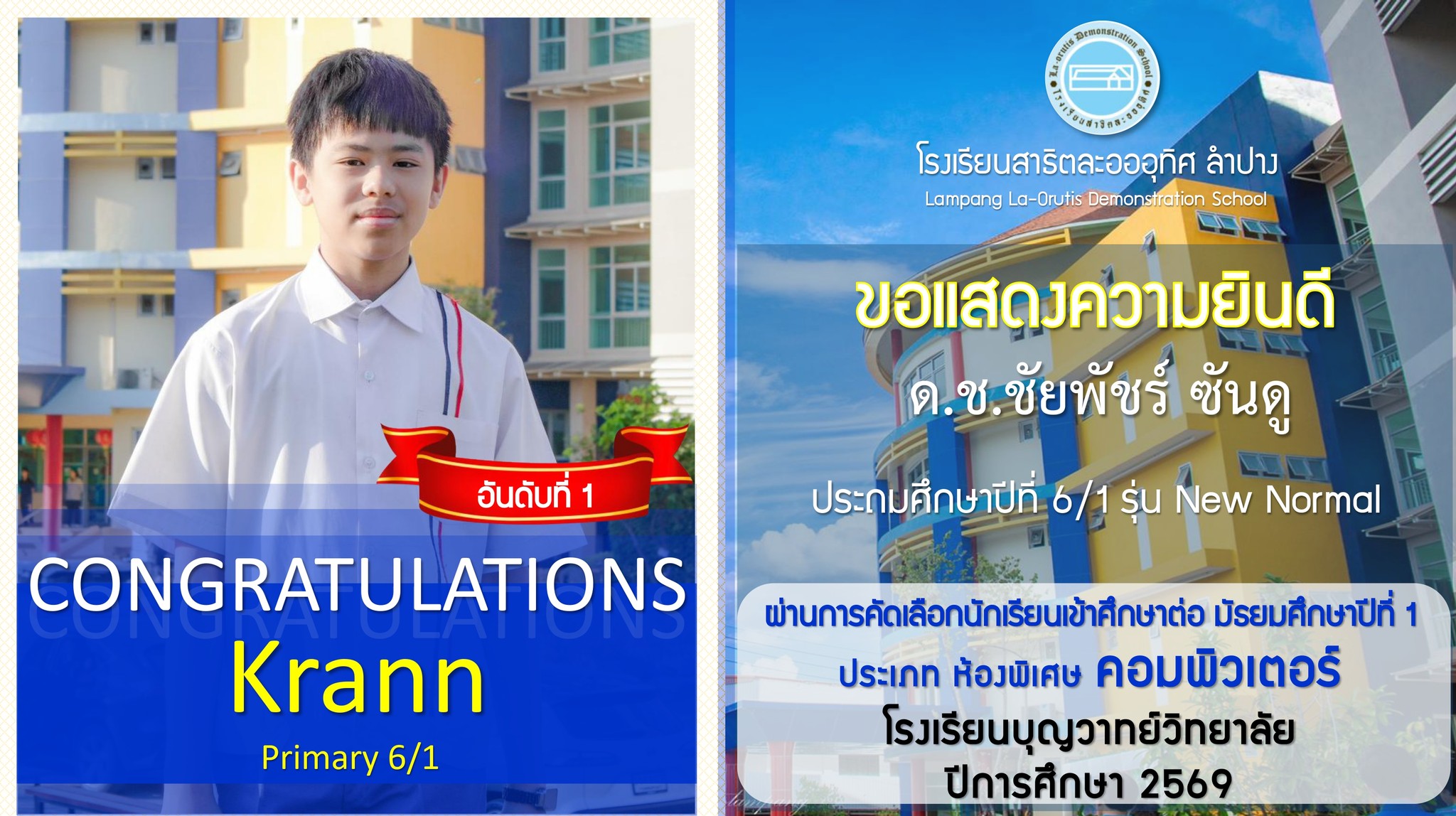 โรงเรียนสาธิตละอออุทิศ ลำปางขอแสดงความยินดี 👏กับนักเรียนประถมศึกษาปีที่ 6ที่ผ่านการคัดเลือกเข้าศึกษาต่อมัธยมศึกษาปีที่ 1ประเภทห้องเรียน พิเศษ