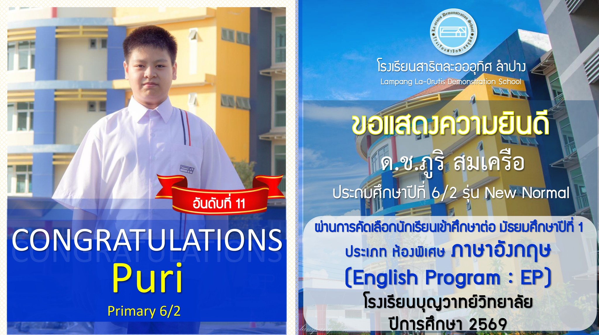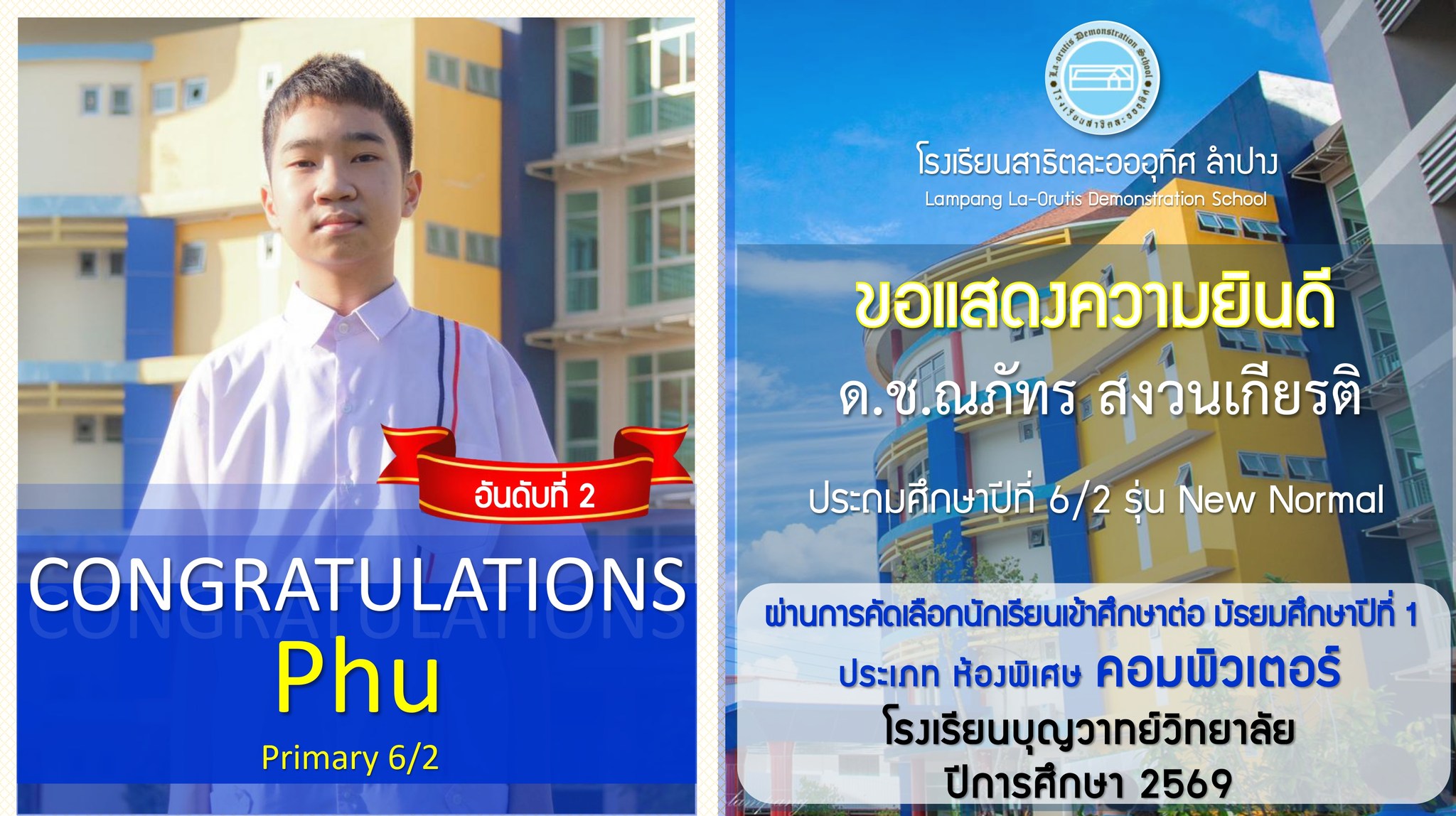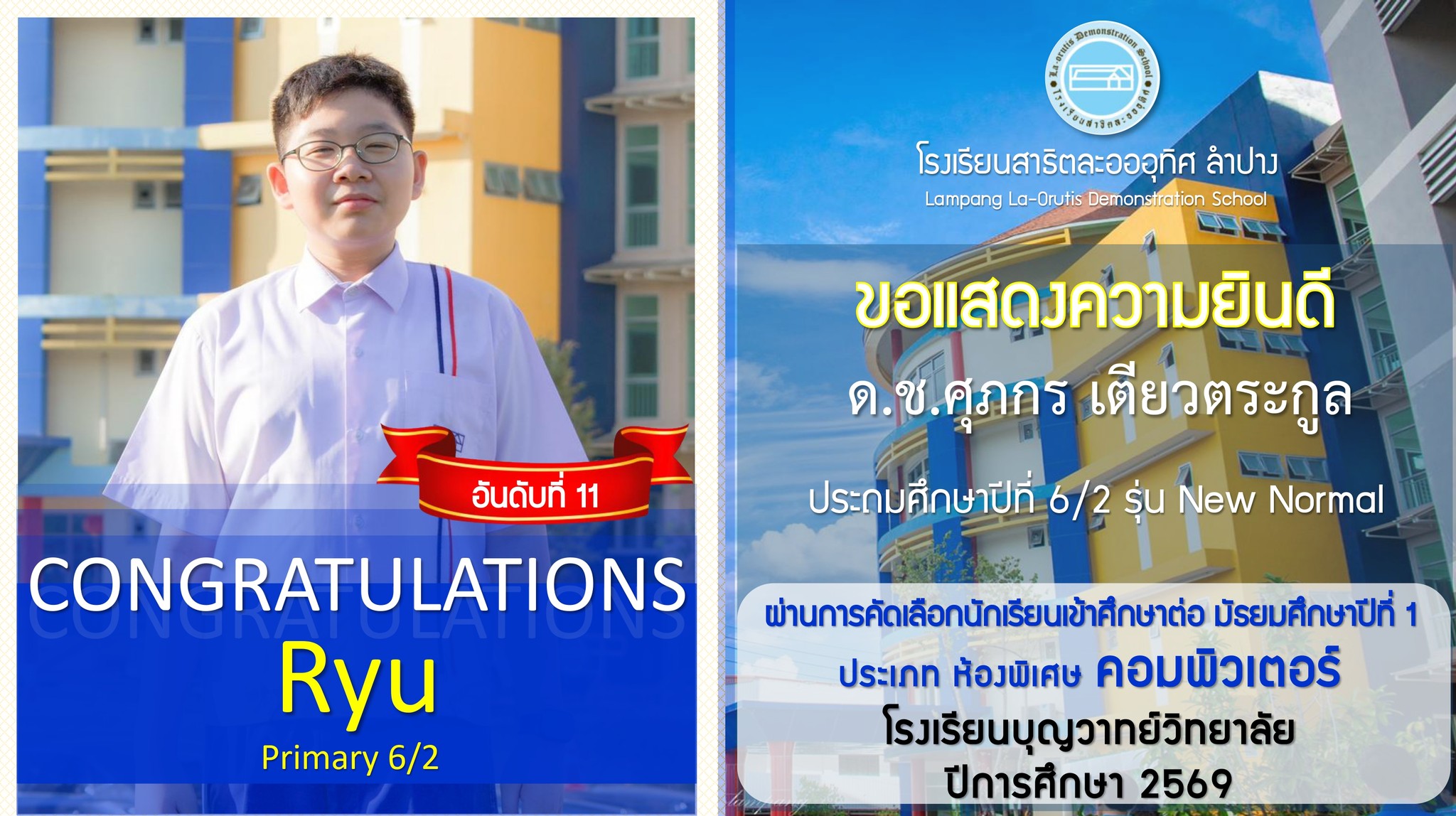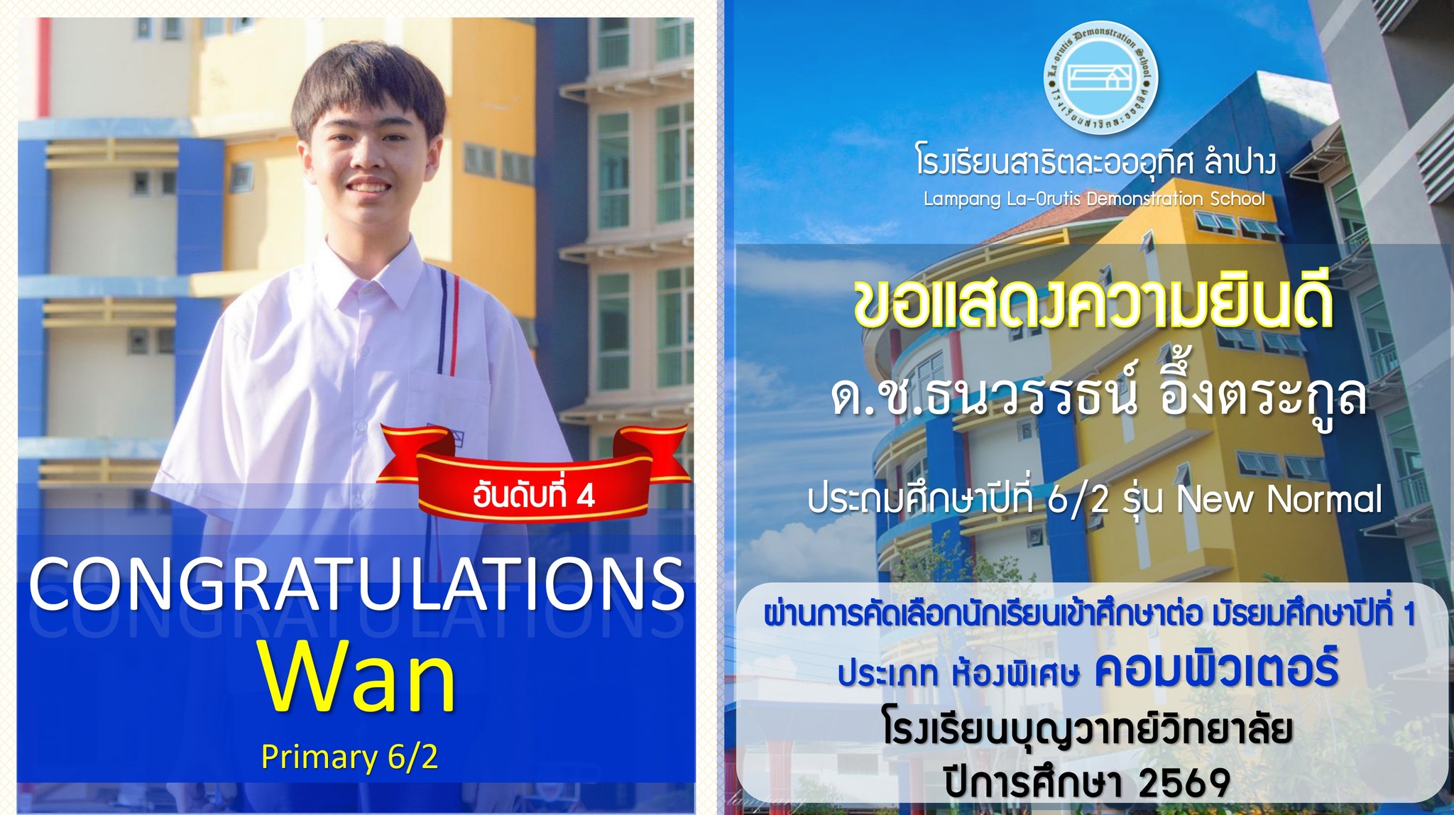 โรงเรียนสาธิตละอออุทิศ ลำปางขอแสดงความยินดี 👏กับนักเรียนประถมศึกษาปีที่ 6ที่ผ่านการคัดเลือกเข้าศึกษาต่อมัธยมศึกษาปีที่ 1ประเภทห้องเรียน พิเศษ