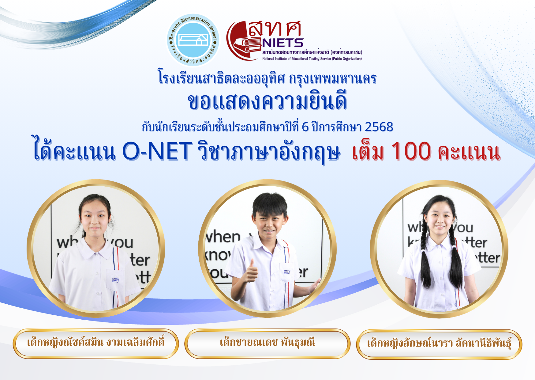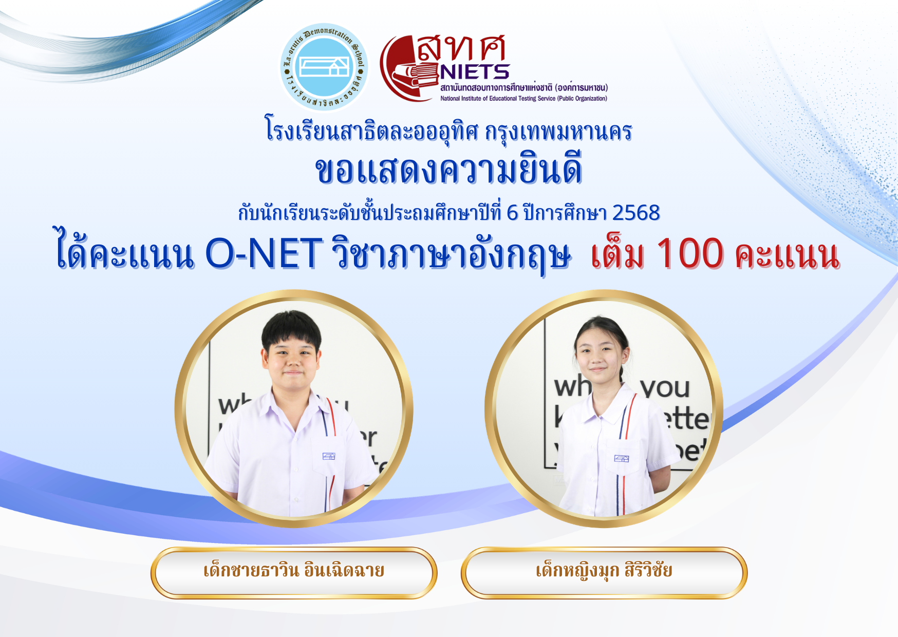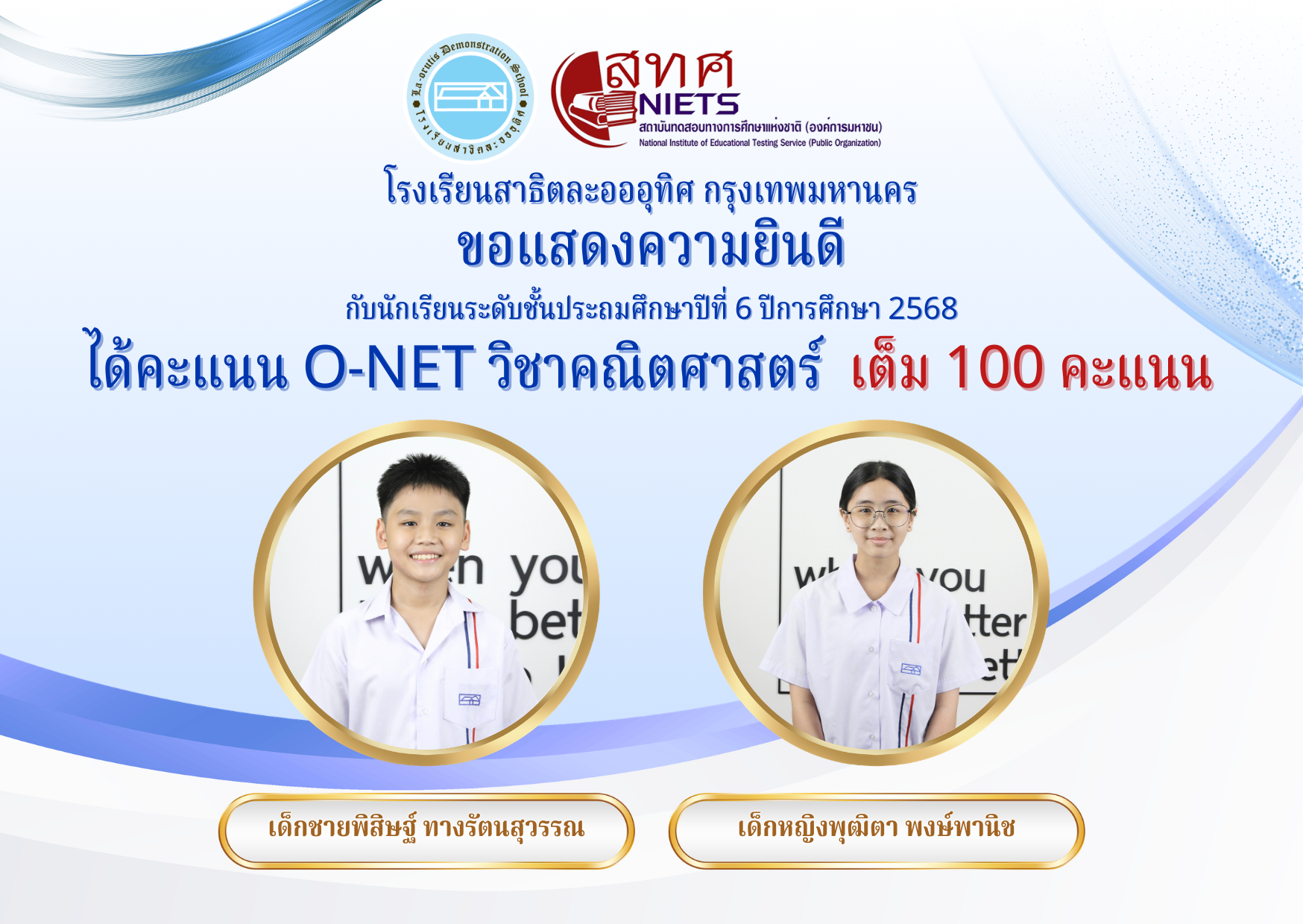 ที่ได้คะแนนเต็ม 100 คะแนน 💯 จากการทดสอบทางการศึกษาระดับชาติขั้นพื้นฐาน (O-NET) ระดับชั้นประถมศึกษาปีที่ 6 ปีการศึกษา 2568