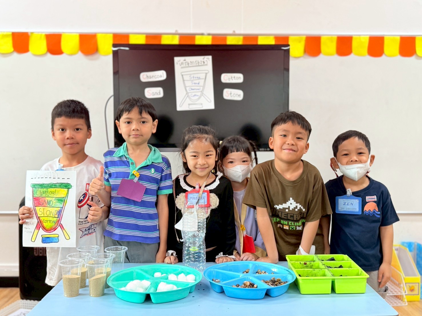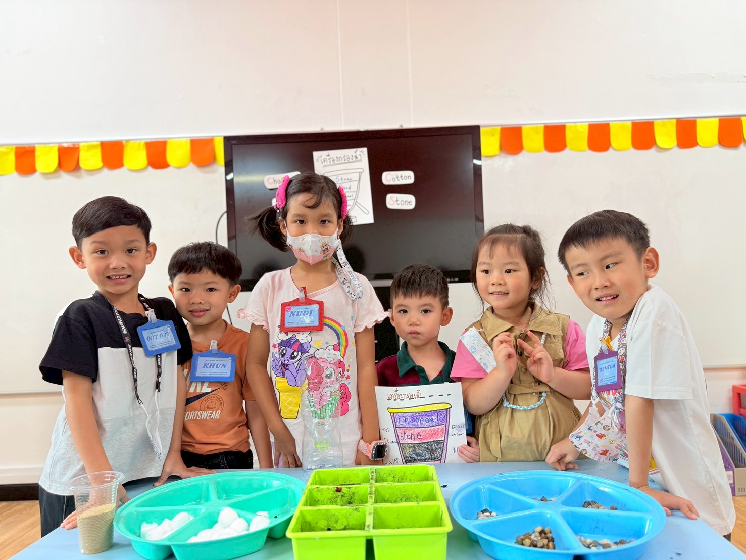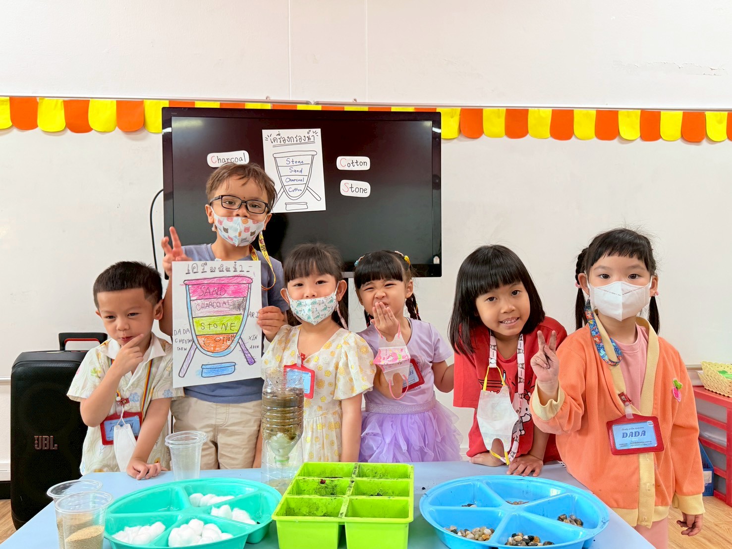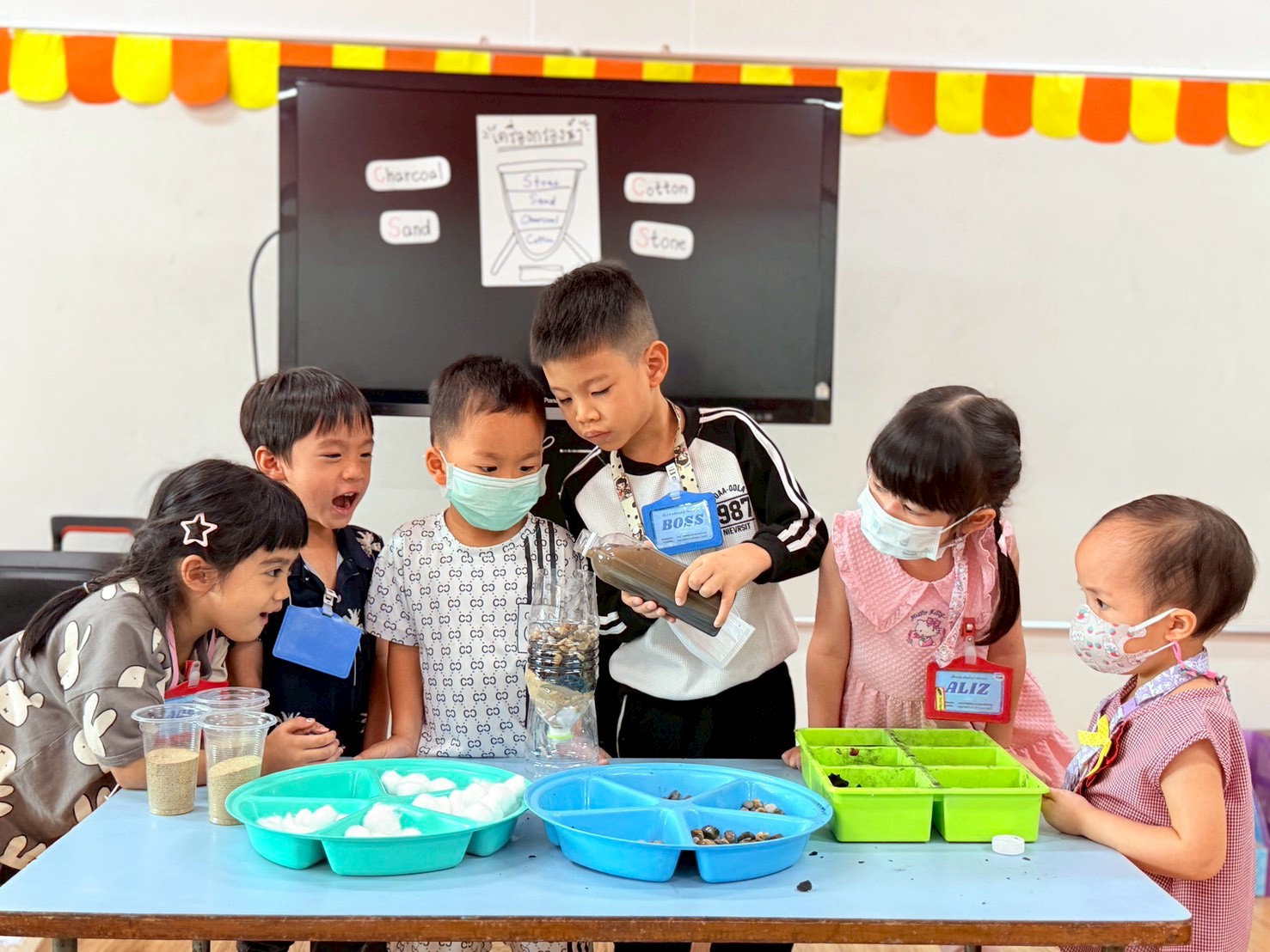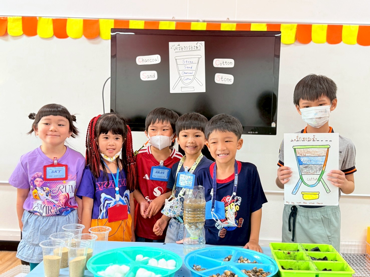 👷♂️จากนั้นเด็กได้ คิดวิธีทำน้ำขุ่นๆให้กลับมาใสด้วยการใช้เครื่องกรองน้ำD.I.Y จากขวดน้ำพลาสติก ไปดูกันว่า เด็กๆจะสามารถเปลี่ยนน้ำเสียให้เป็นน้ำใสได้หรือไม่ เป็นกำลังใจให้เด็กๆด้วยนะคะ💧