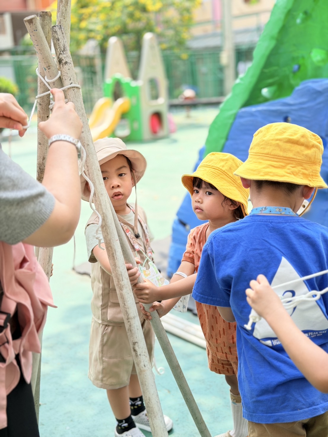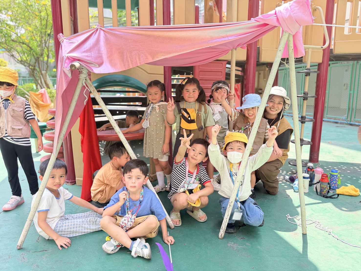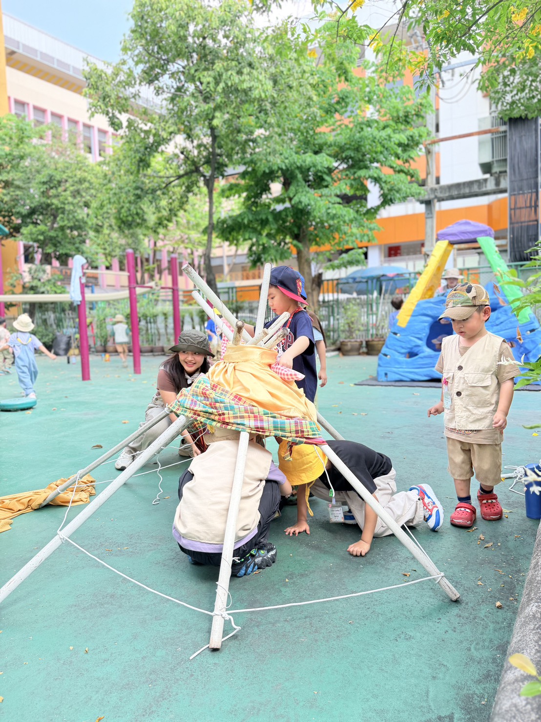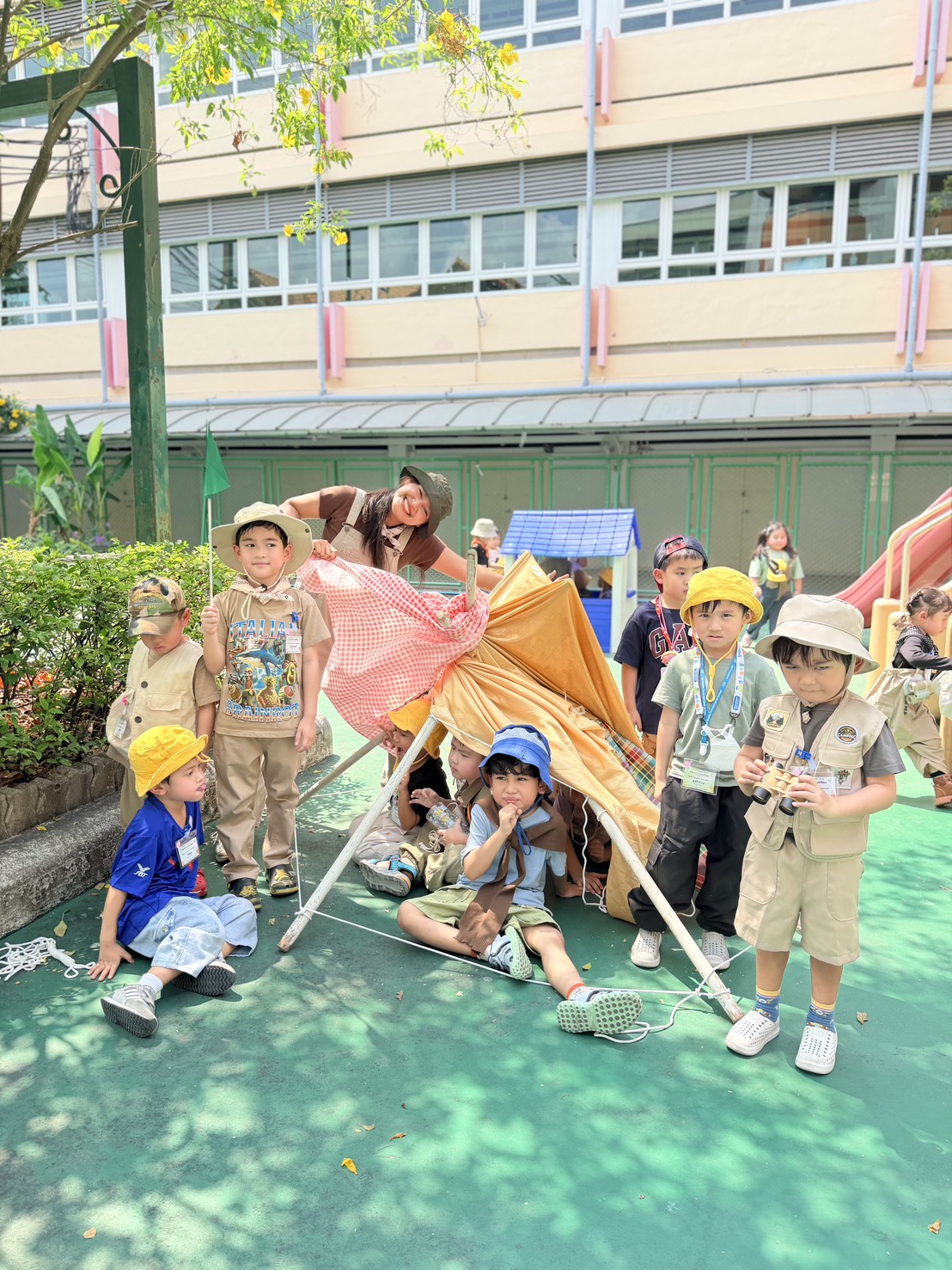 Hi parents! ðŋ Today our little campers had an exciting hands-on adventure learning the basics of camping. They worked together to build their own tents, practicing teamwork, listening skills, and problem-solving along the way.