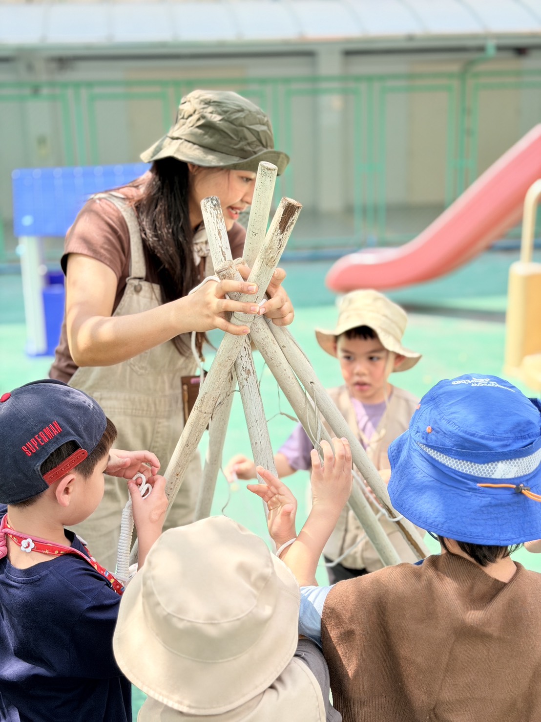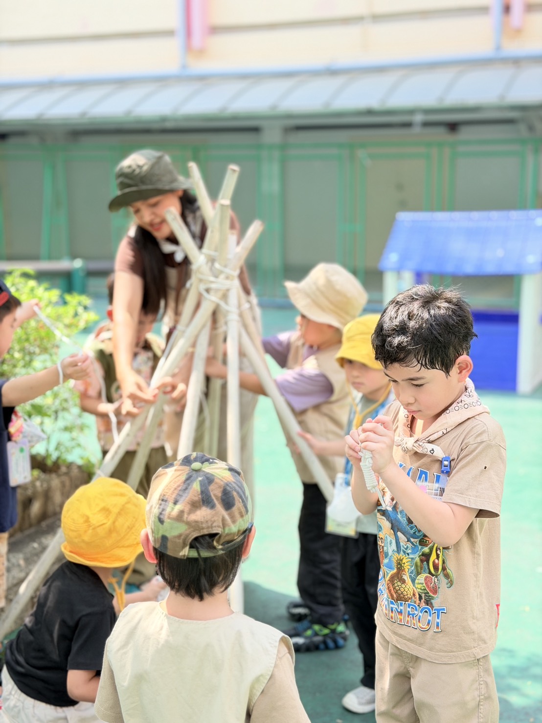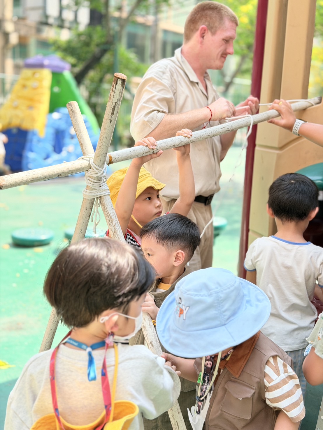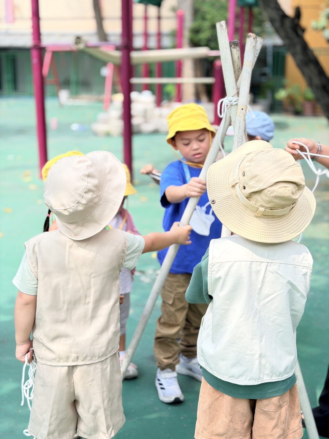 Hi parents! ðŋ Today our little campers had an exciting hands-on adventure learning the basics of camping. They worked together to build their own tents, practicing teamwork, listening skills, and problem-solving along the way.