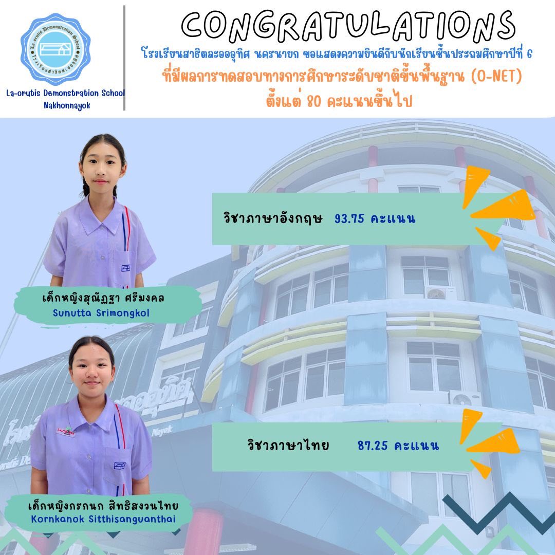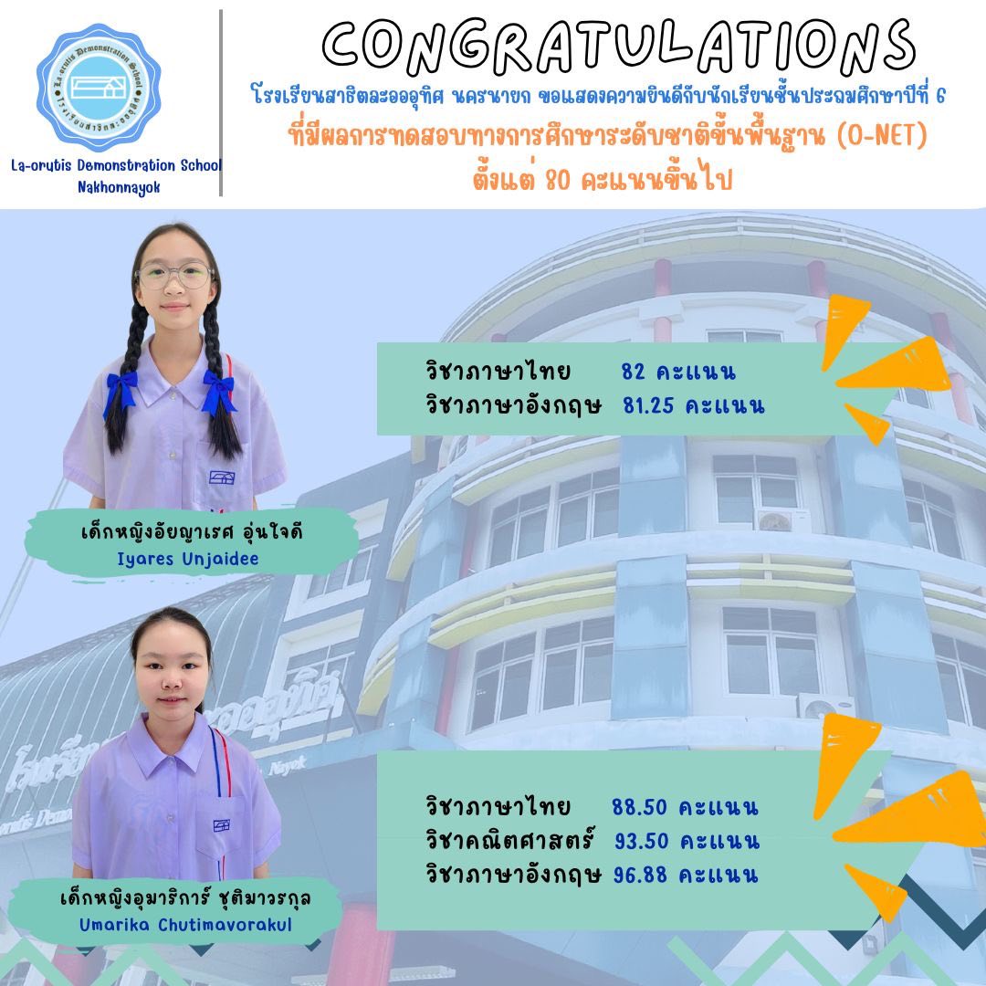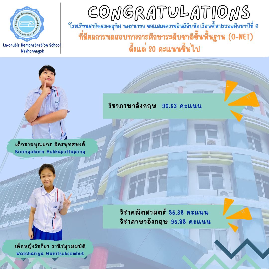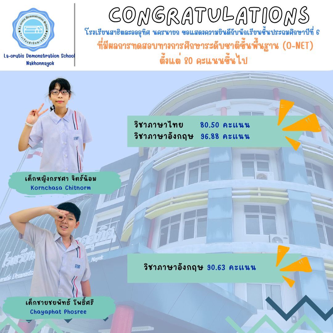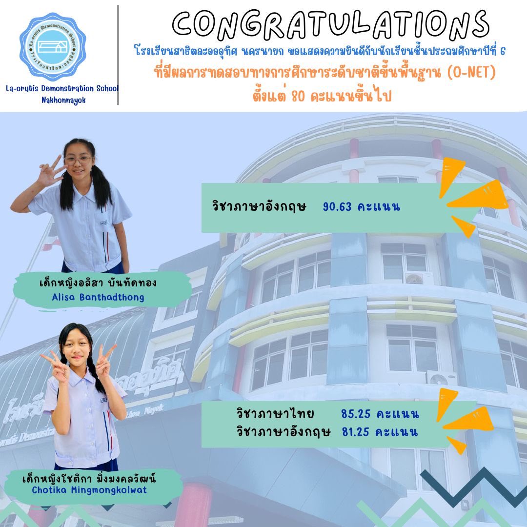 แสดงความยินดีกับพี่ๆ ป.6 ที่ทำคะแนน O-NET ได้เกิน 80 คะแนน