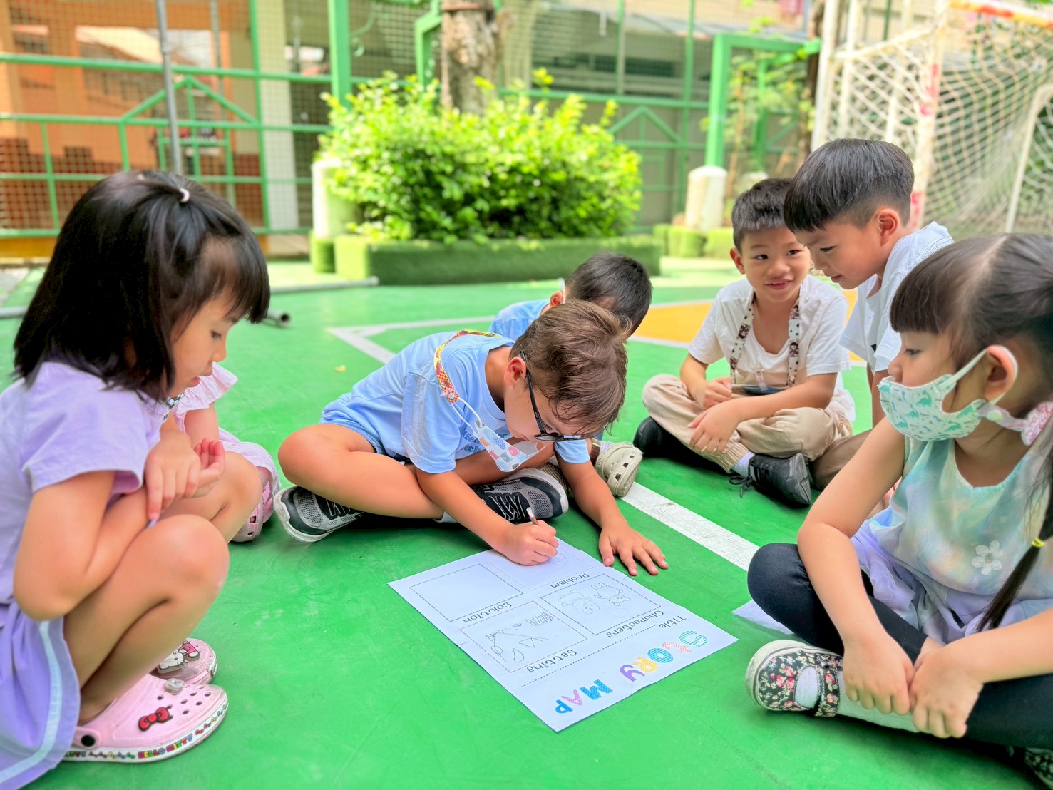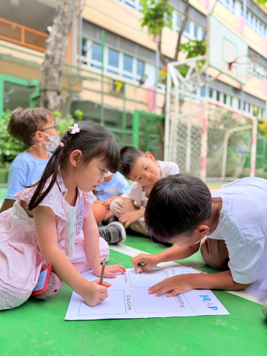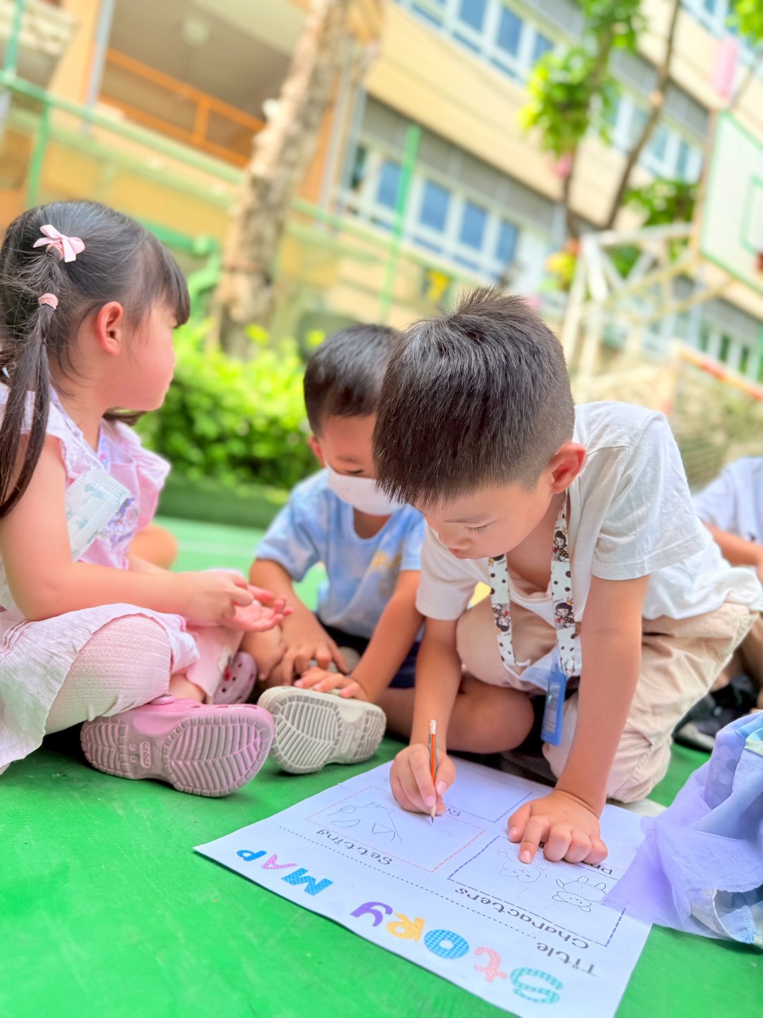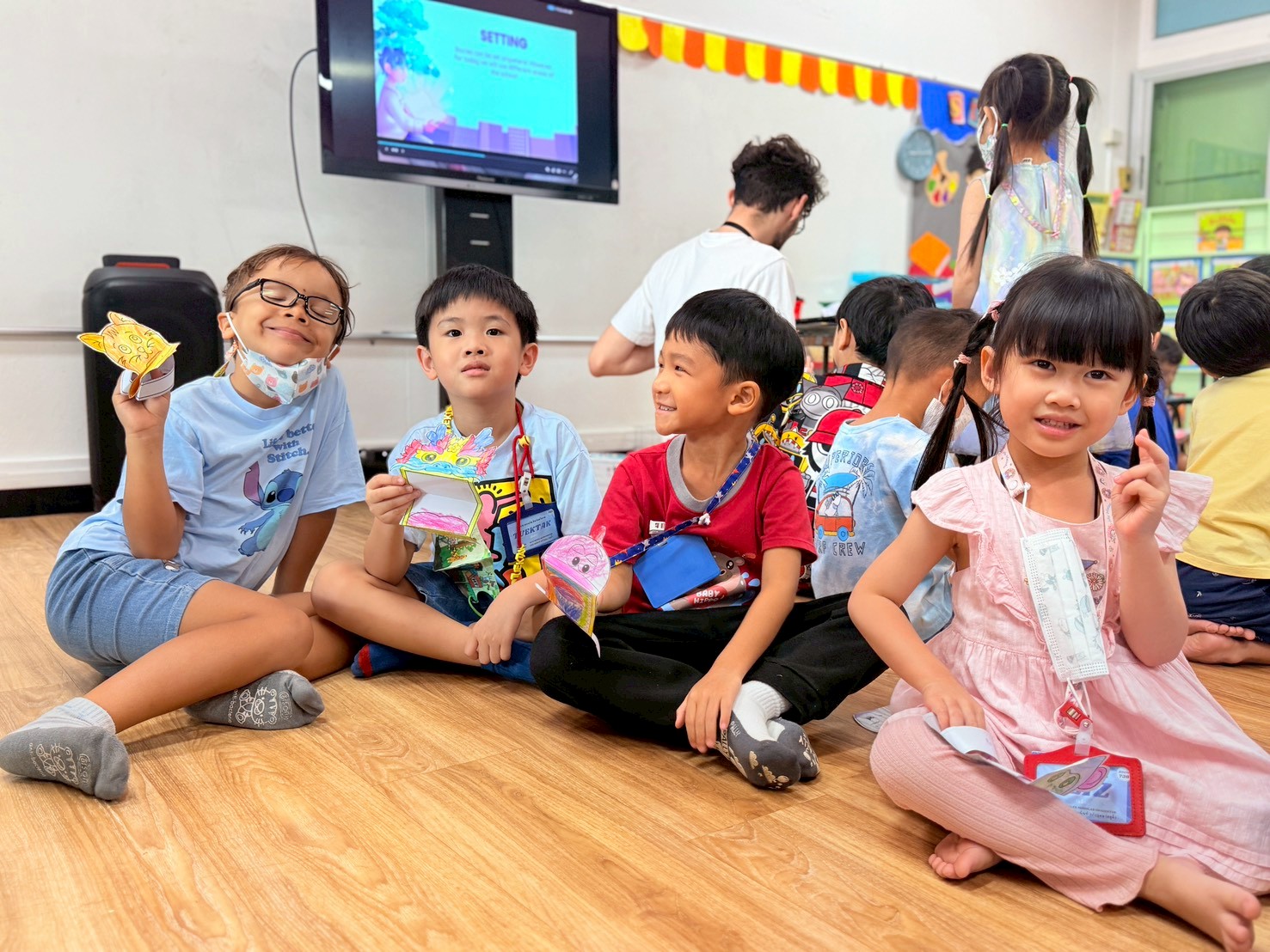 🐻🐰🐷First the children created the characters for their story by making paper puppets of different animals. Then in groups they explored the school campus and chose a setting for their story. After this was completed, I helped them choose a suitable prompt for generating a short video with AI.