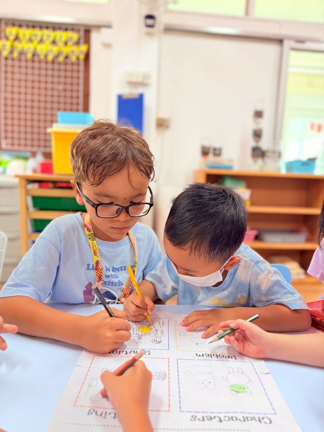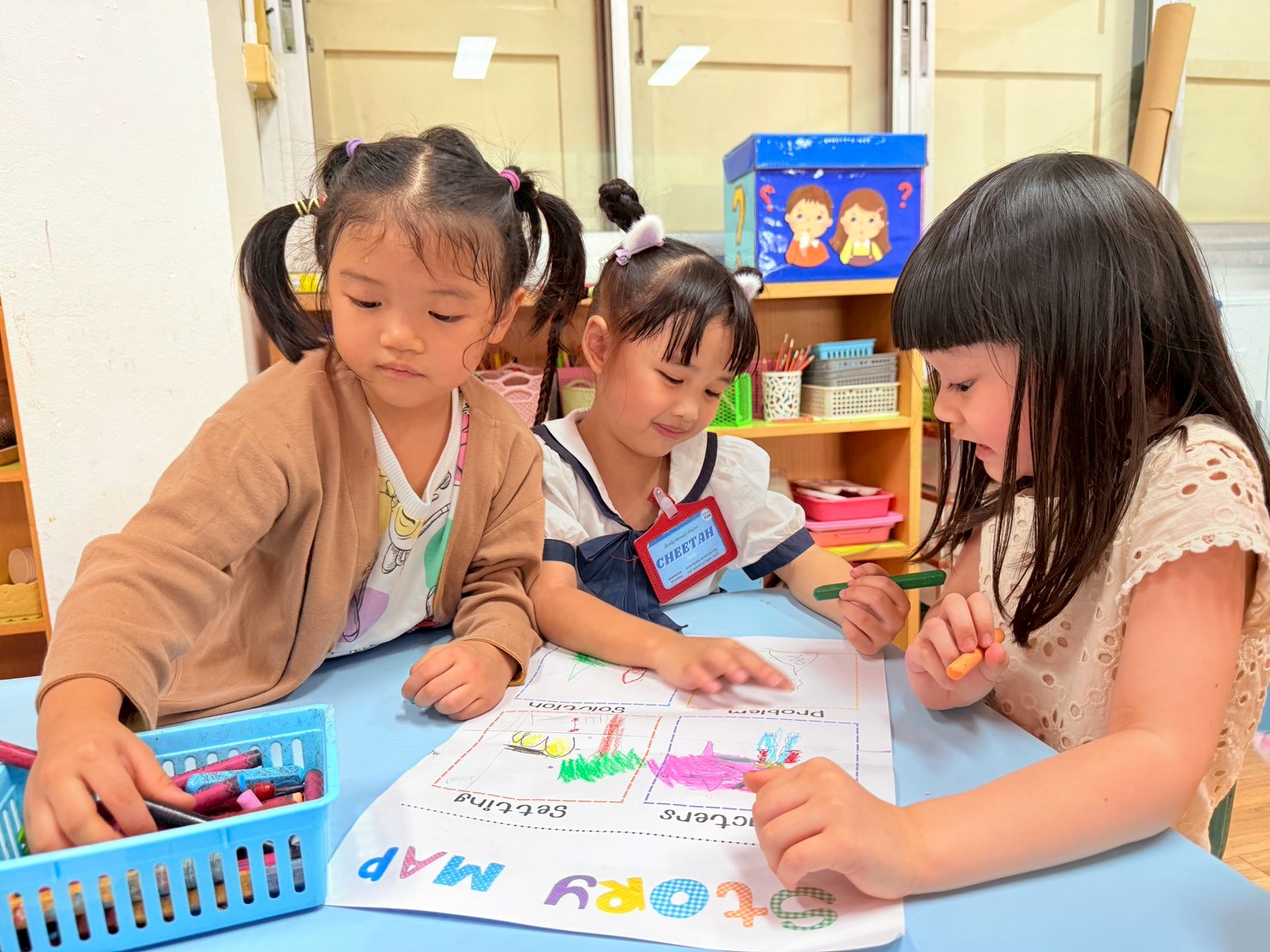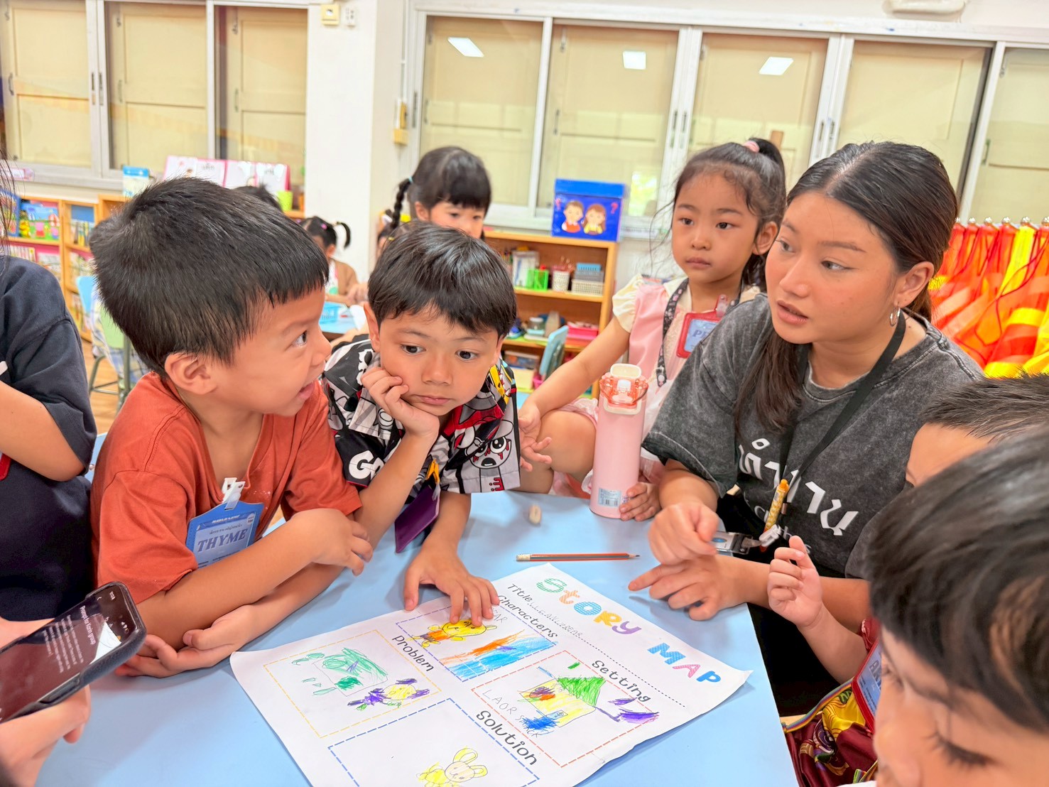 🐻🐰🐷First the children created the characters for their story by making paper puppets of different animals. Then in groups they explored the school campus and chose a setting for their story. After this was completed, I helped them choose a suitable prompt for generating a short video with AI.