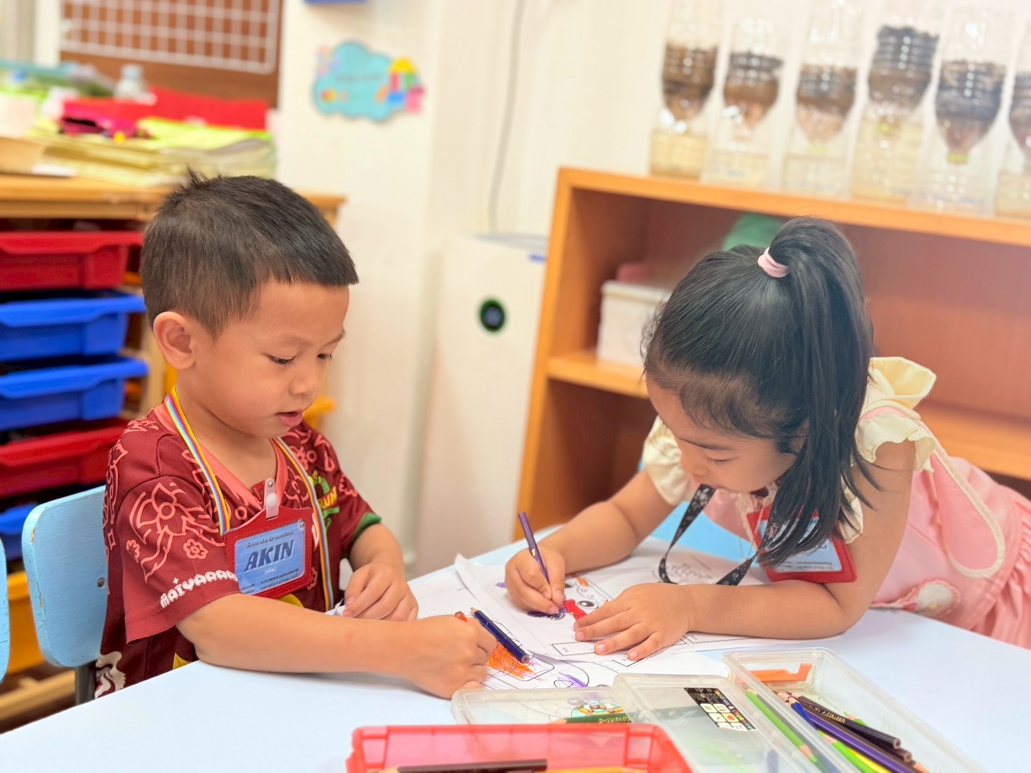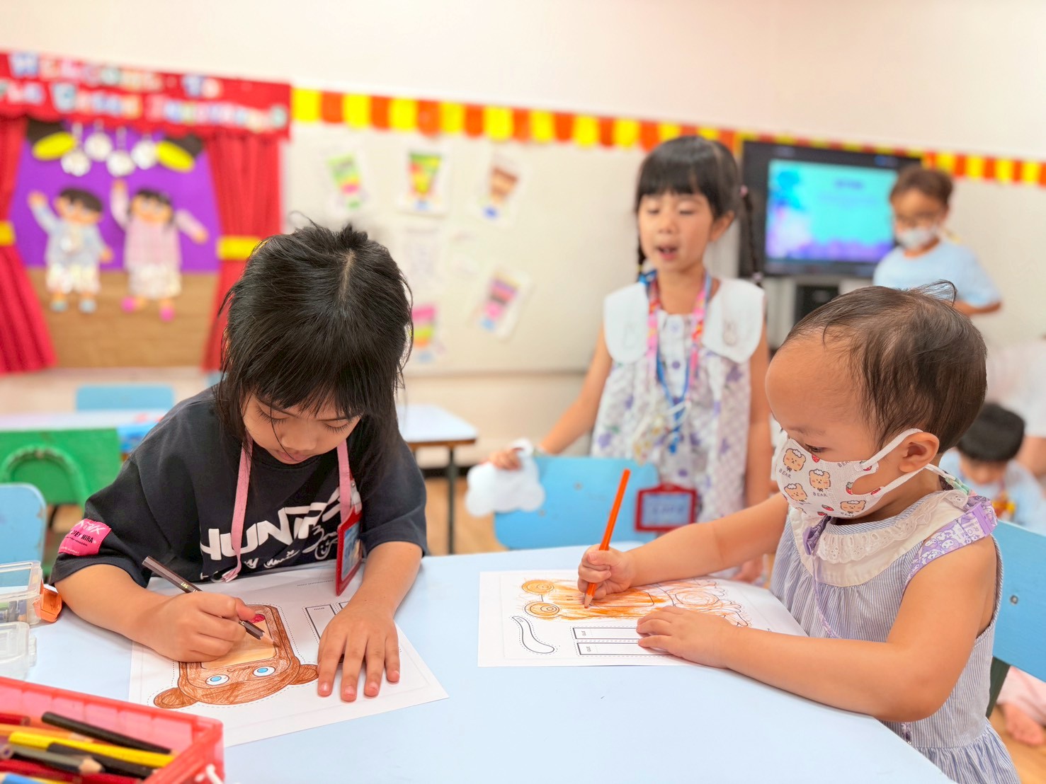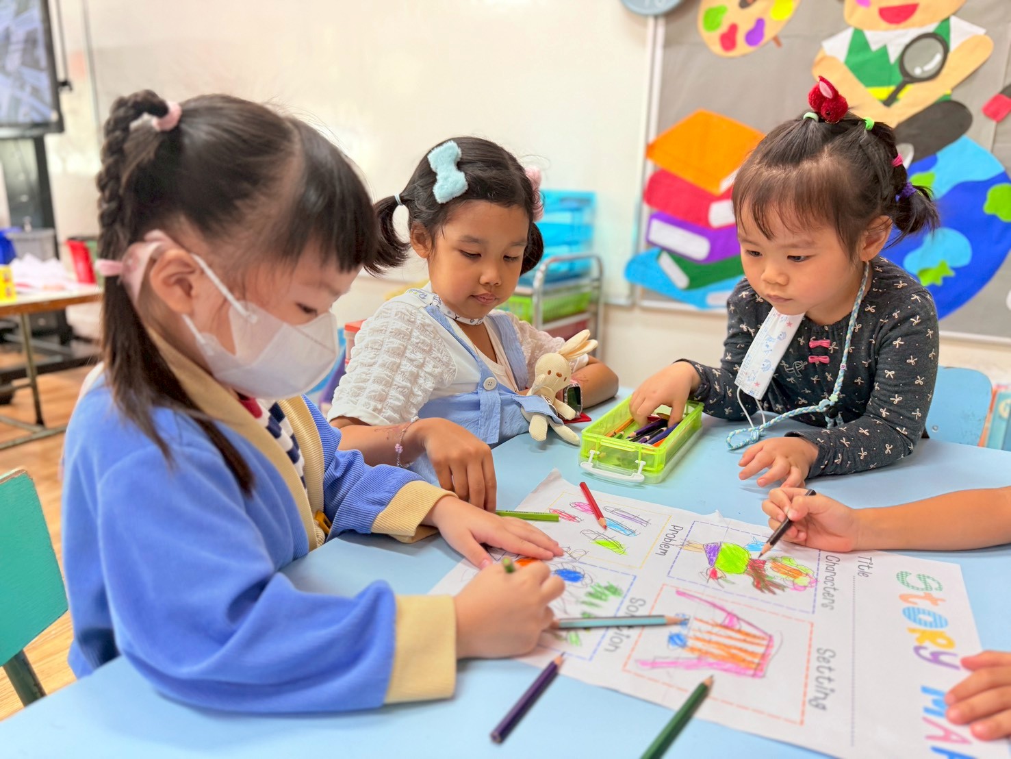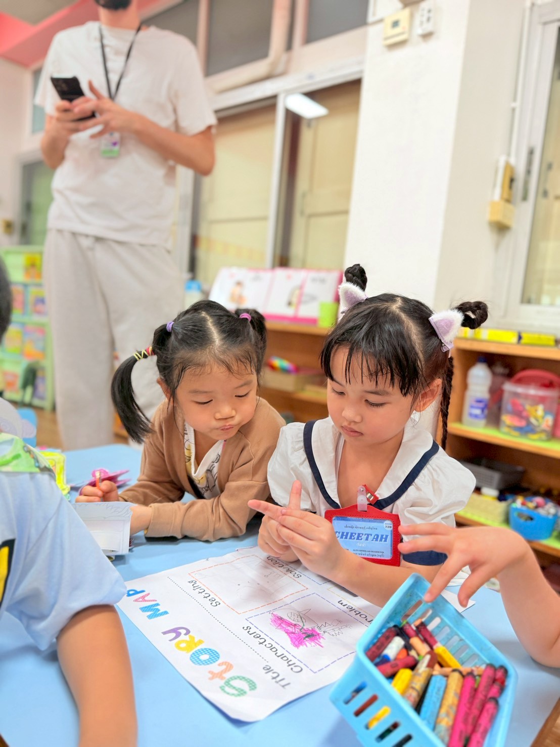 🐻🐰🐷First the children created the characters for their story by making paper puppets of different animals. Then in groups they explored the school campus and chose a setting for their story. After this was completed, I helped them choose a suitable prompt for generating a short video with AI.