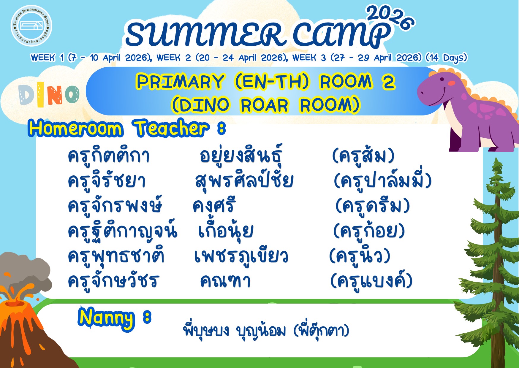 ðĢ āļĢāļ§āļĄāļ āļēāļāļāļĢāļĢāļĒāļēāļāļēāļĻāļāļīāļāļāļĢāļĢāļĄāđāļāļĢāļāļāļēāļĢ Summer Camp 2026 ðâĻ (Dino Roar Room EN-TH R2)