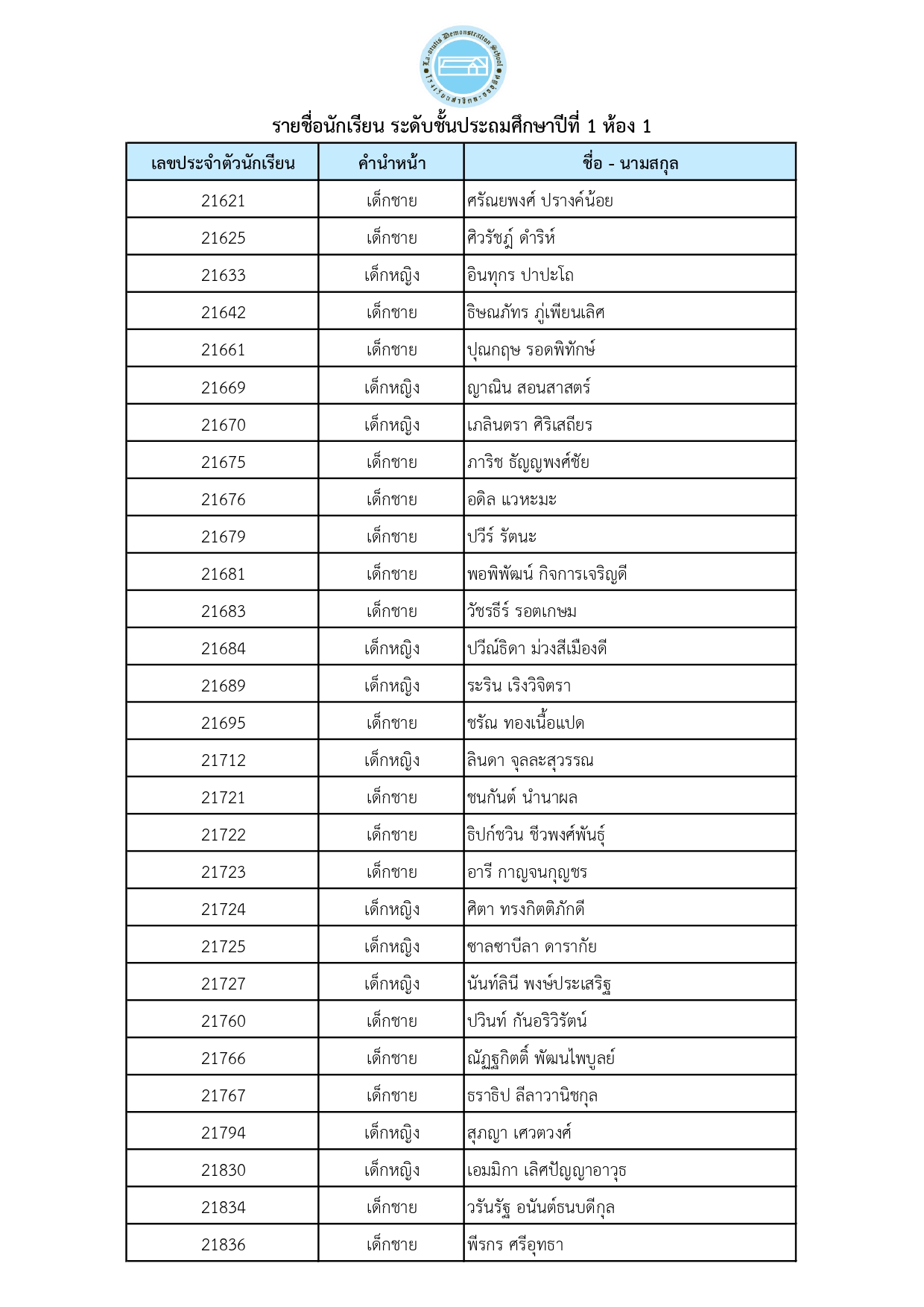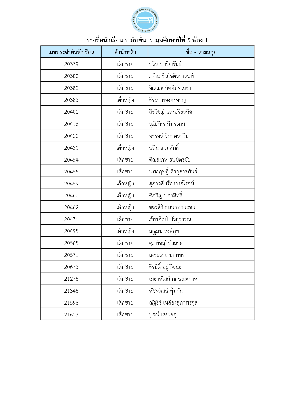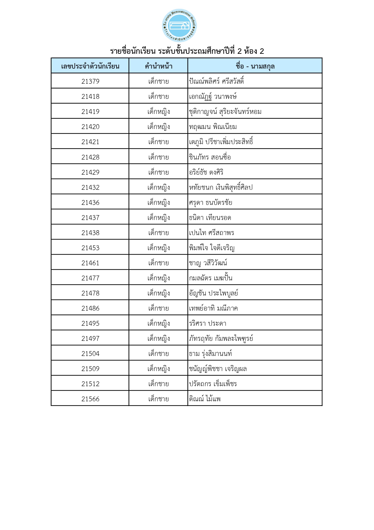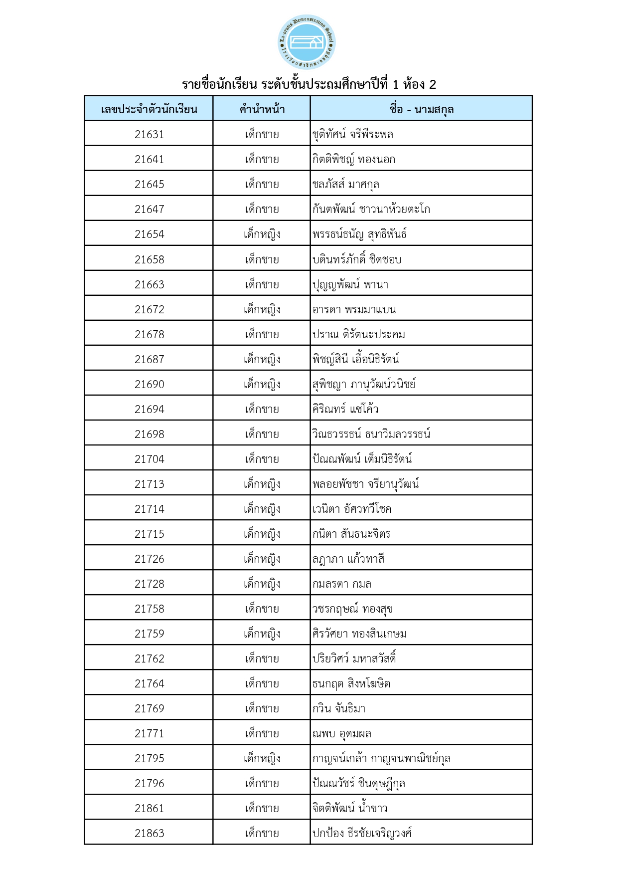 ประกาศรายชื่อนักเรียนผู้มีสิทธิ์เข้าเรียน ปีการศึกษา 2569 ระดับประถมศึกษา