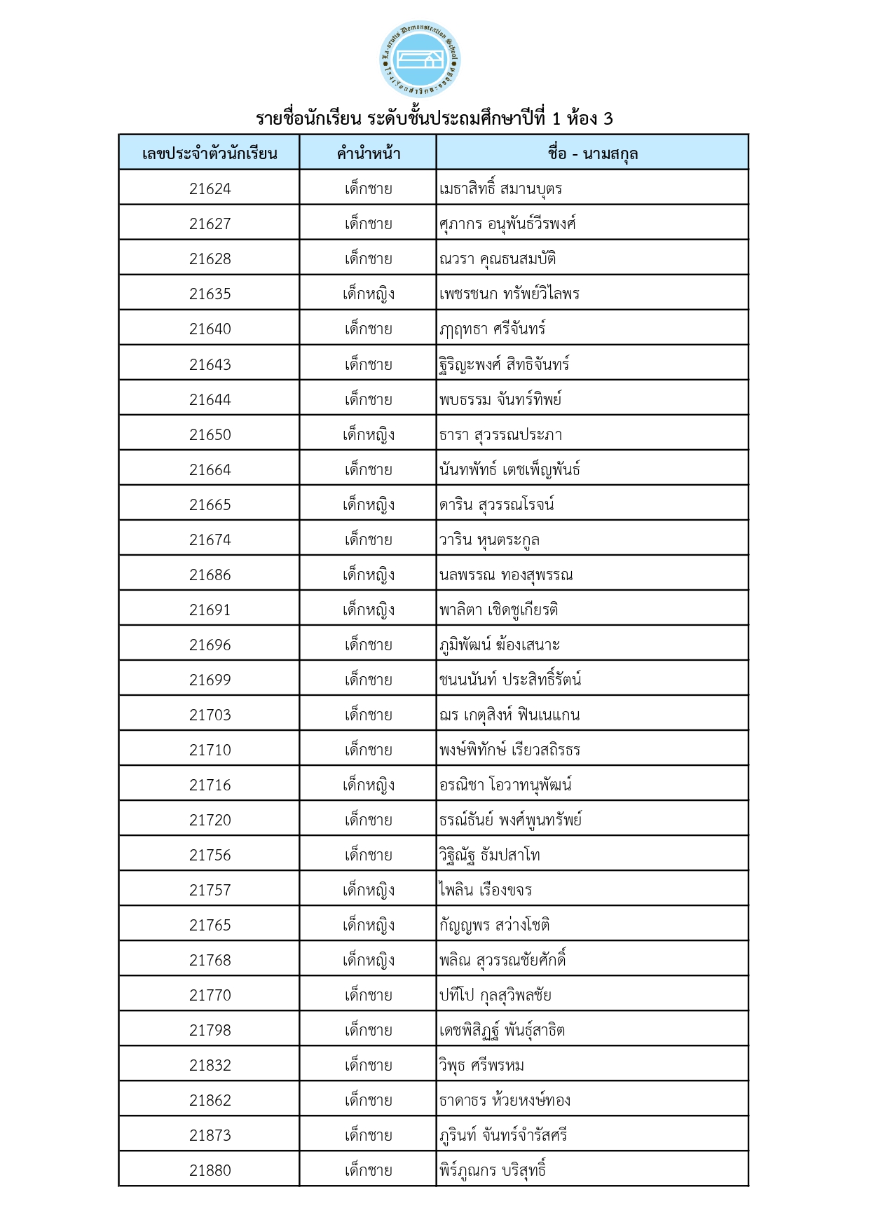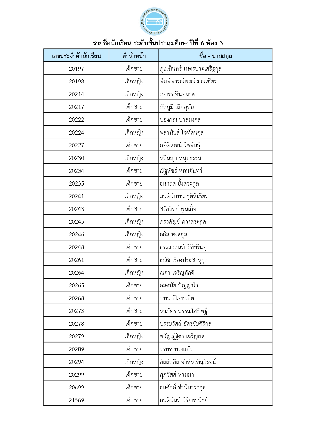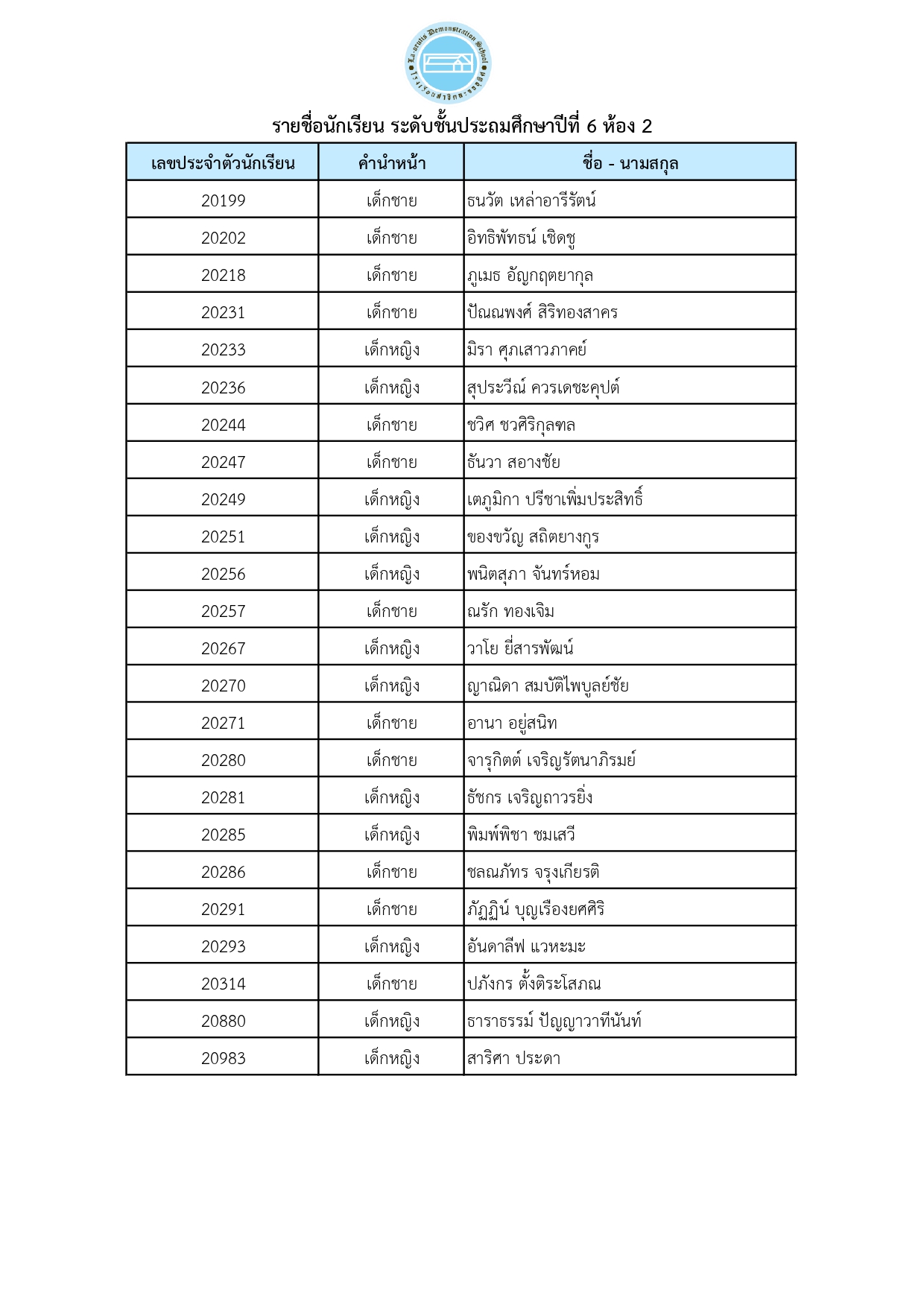 ประกาศรายชื่อนักเรียนผู้มีสิทธิ์เข้าเรียน ปีการศึกษา 2569 ระดับประถมศึกษา
