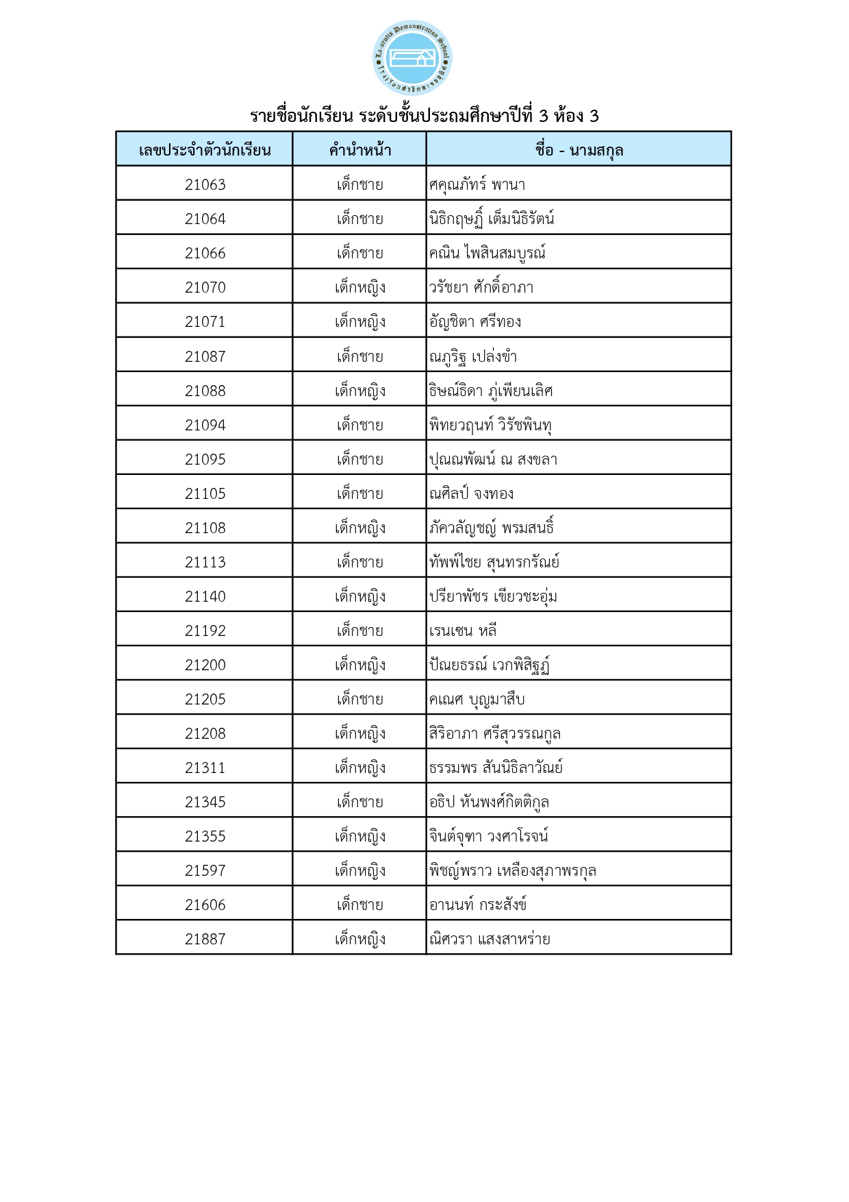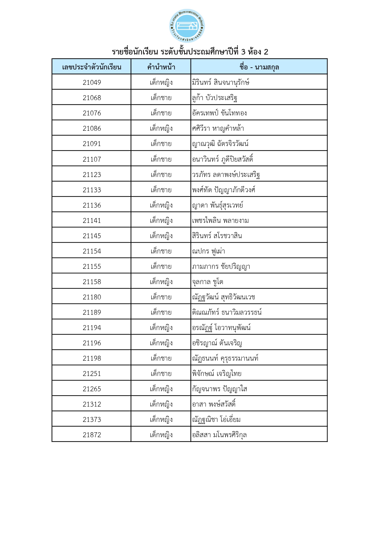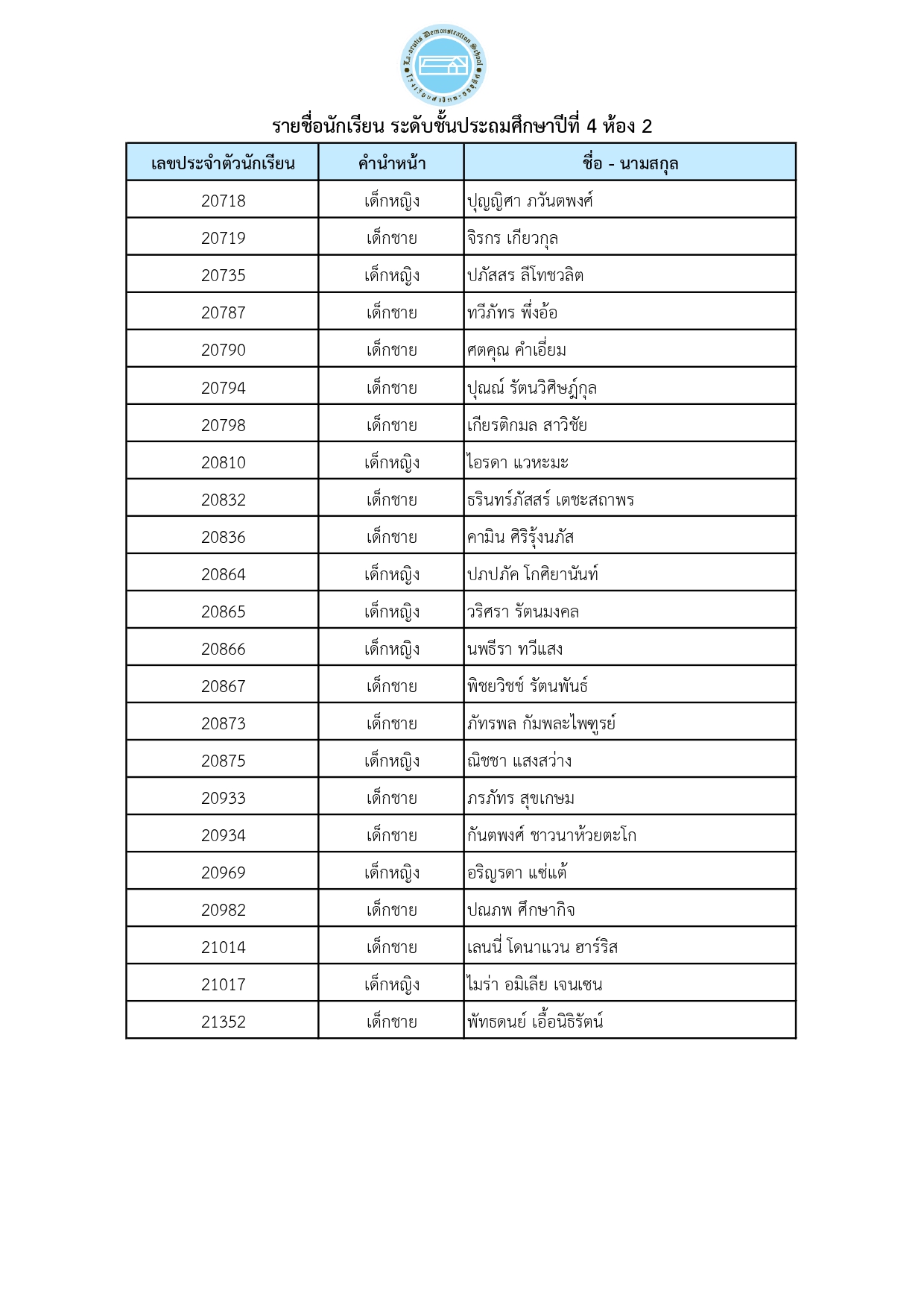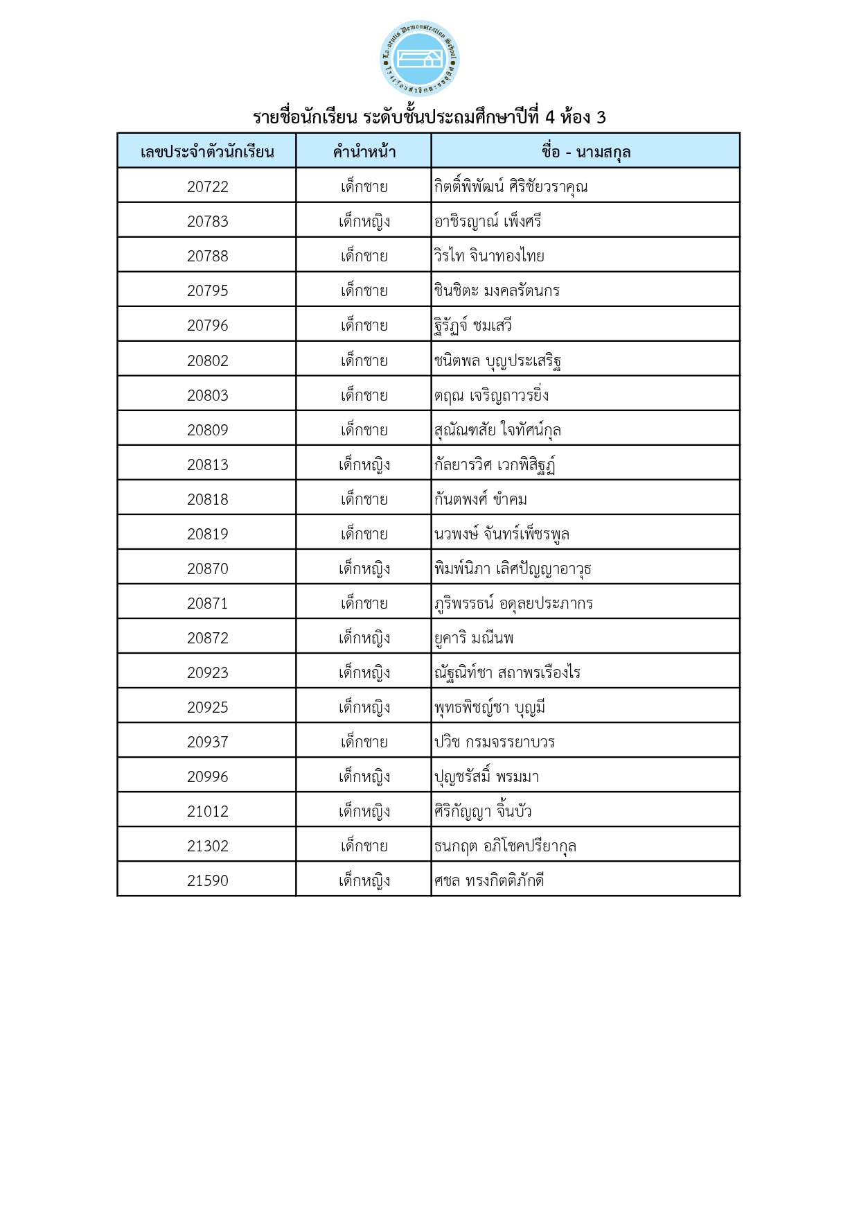 ประกาศรายชื่อนักเรียนผู้มีสิทธิ์เข้าเรียน ปีการศึกษา 2569 ระดับประถมศึกษา