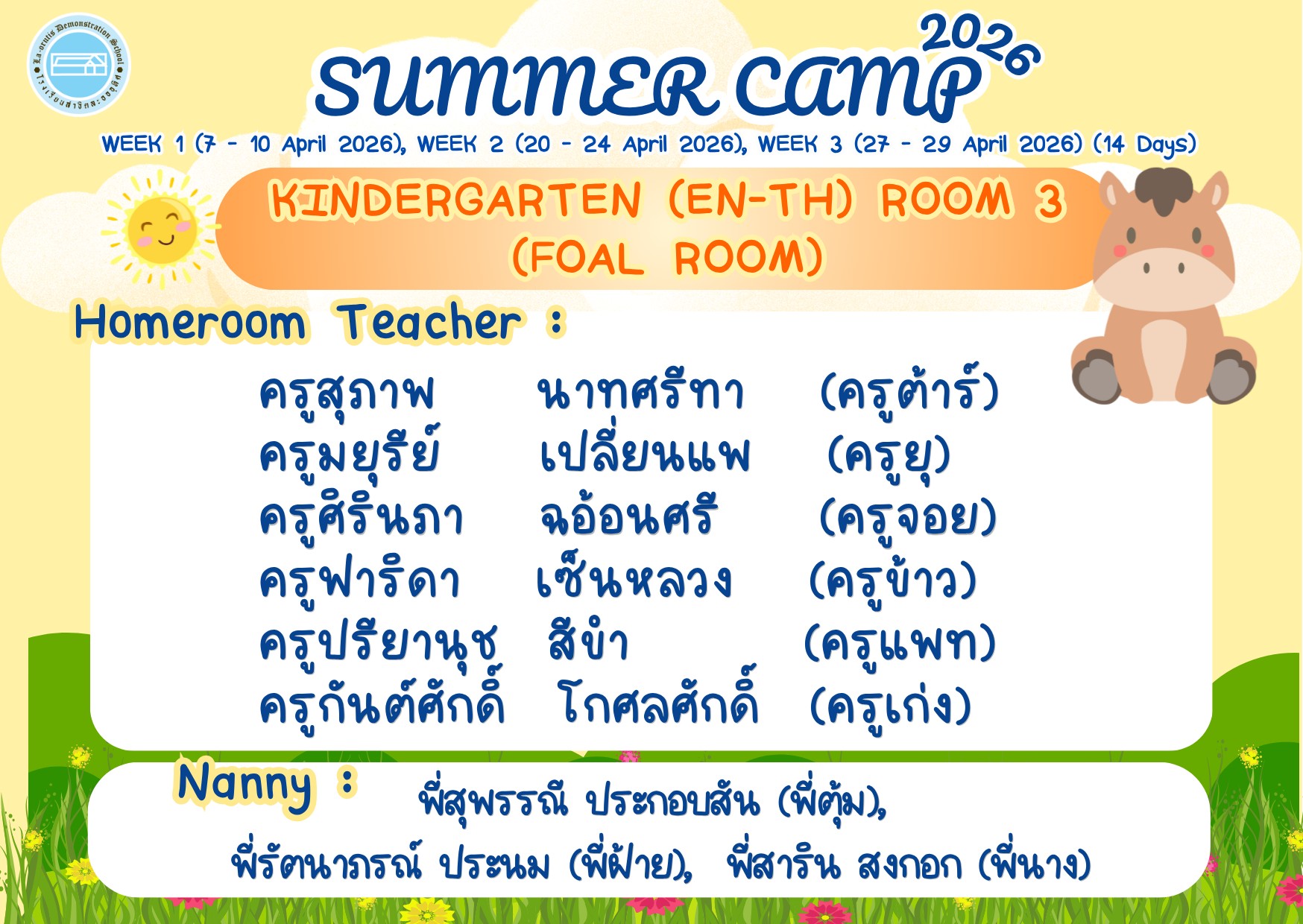 ðĢ āļĢāļ§āļĄāļ āļēāļāļāļĢāļĢāļĒāļēāļāļēāļĻāļāļīāļāļāļĢāļĢāļĄāđāļāļĢāļāļāļēāļĢ Summer Camp 2026 ðâĻ (Foal Room)