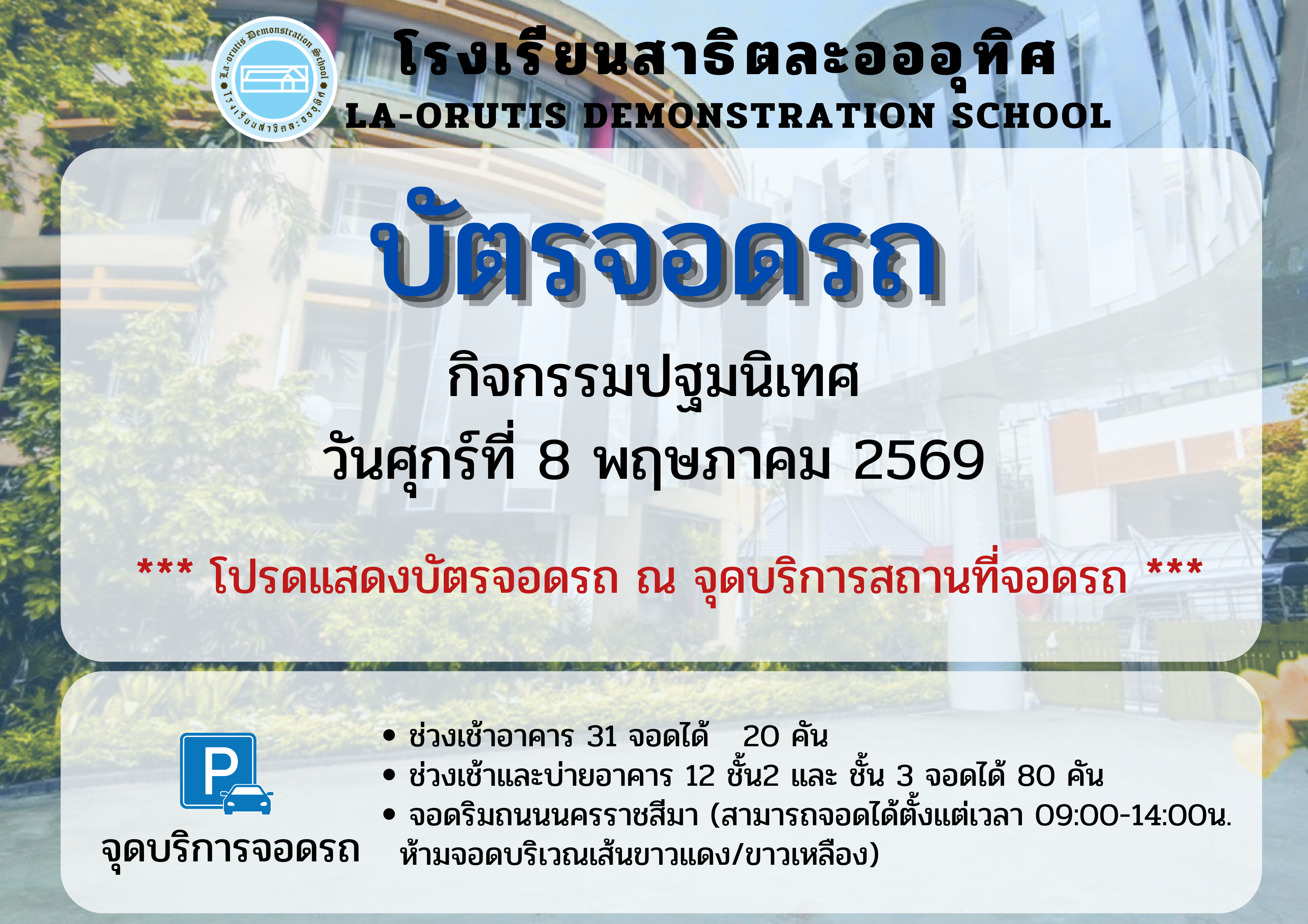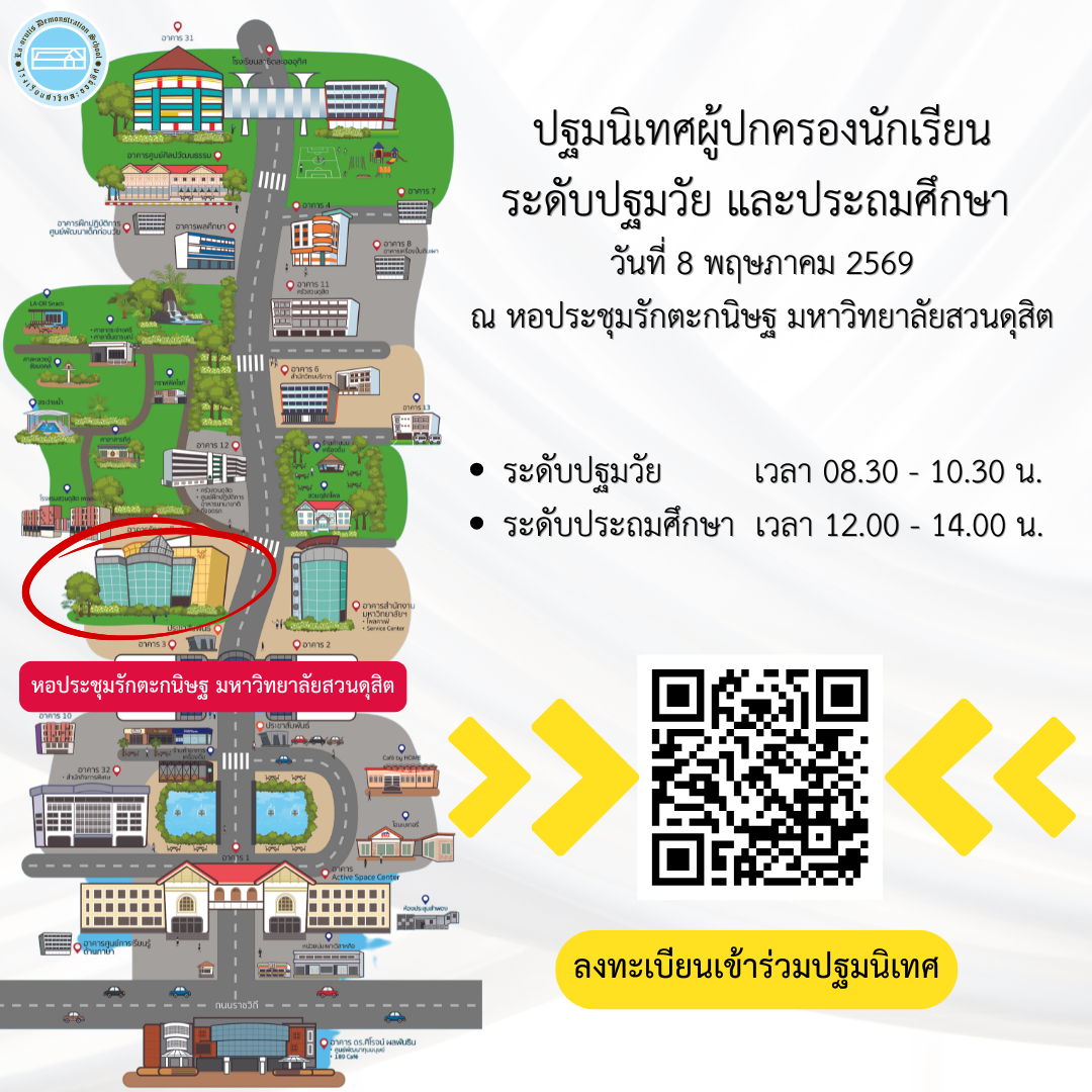 ลงทะเบียนเข้าร่วมปฐมนิเทศผู้ปกครองนักเรียน วันที่ 8 พฤษภาคม 2569