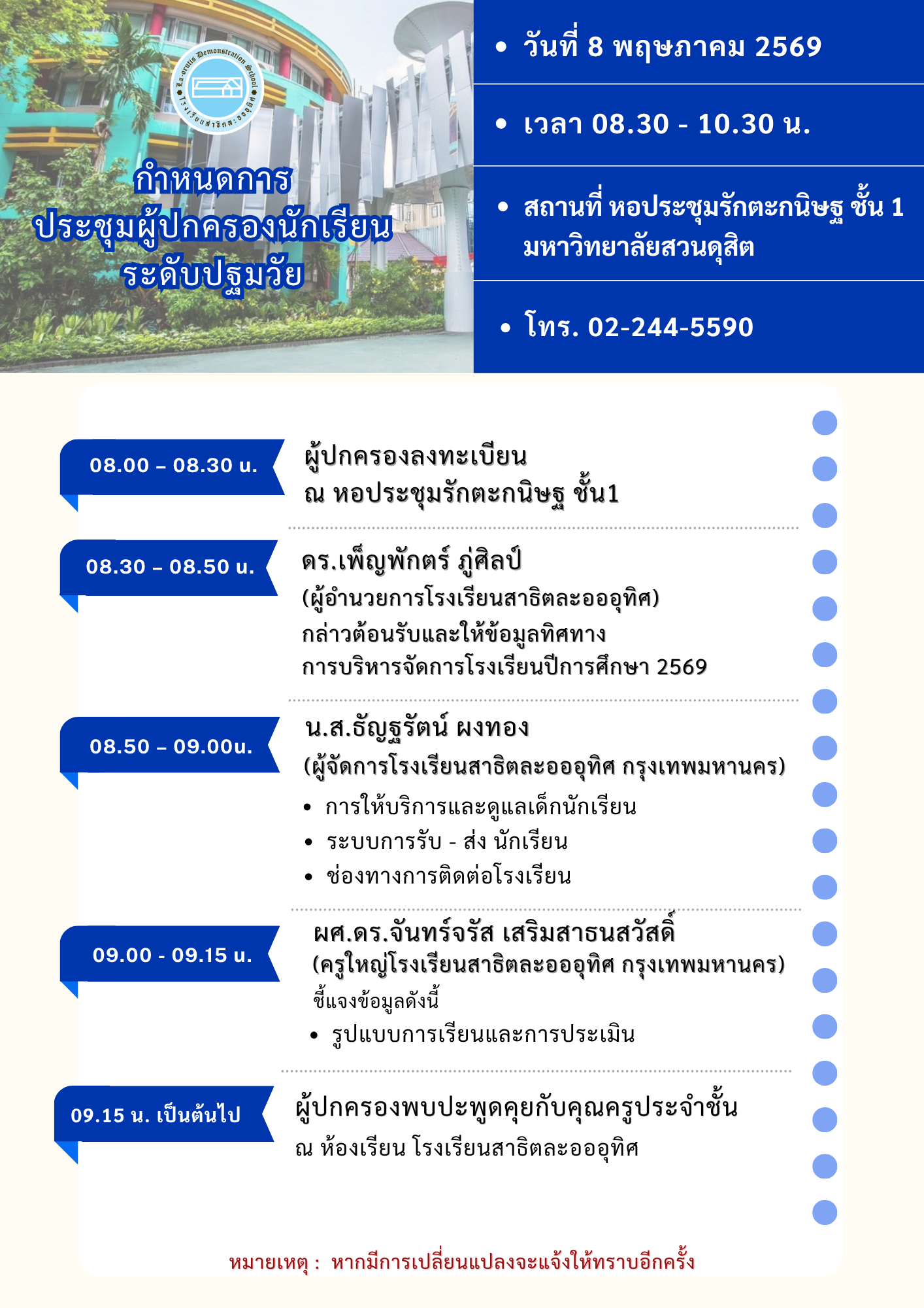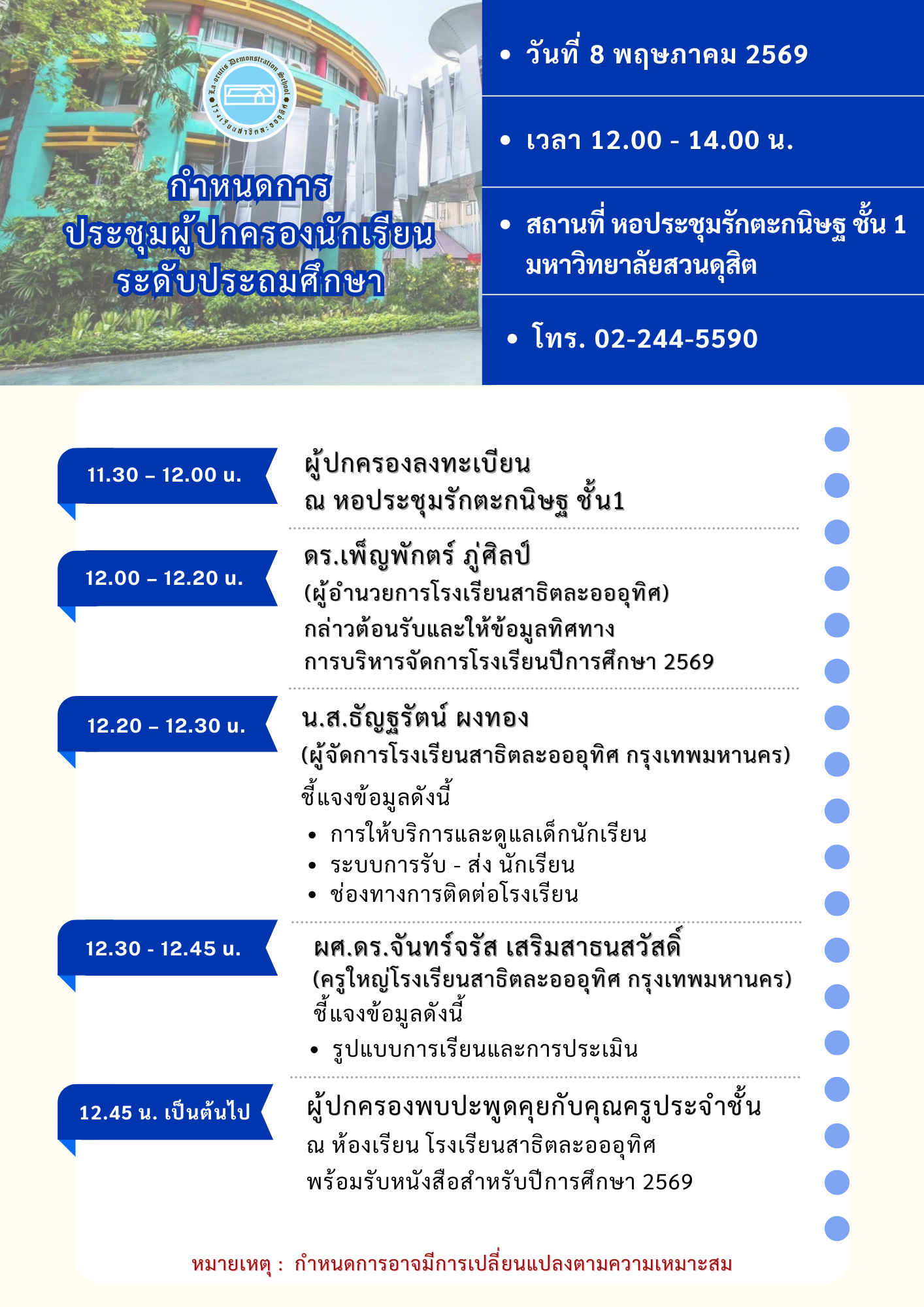 4) กำหนดการอาจมีการเปลี่ยนแปลงตามความเหมาะสม