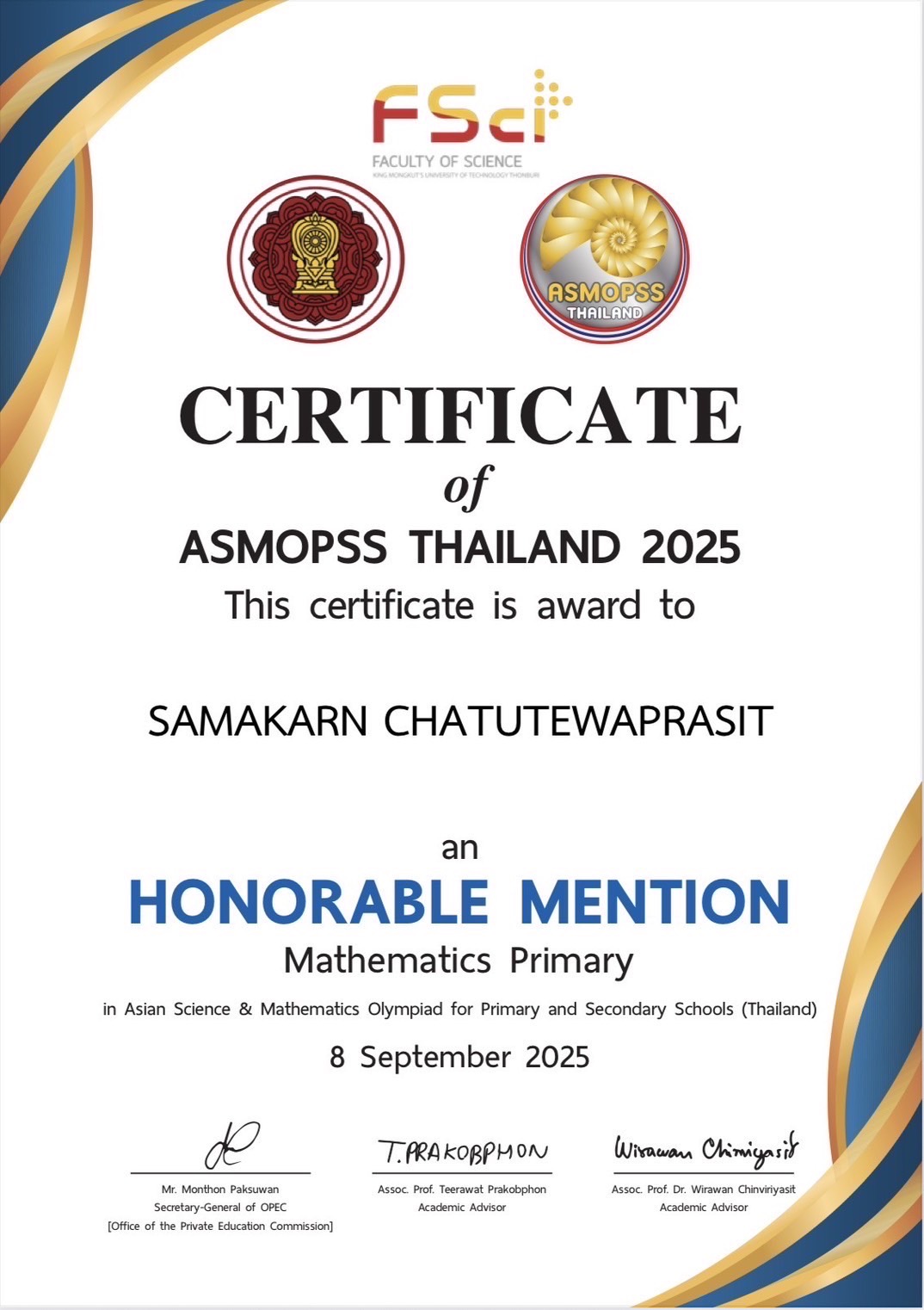 Asian Science & Mathematics Olympiad for Primary and Secondary Schools âASMOPSSâ