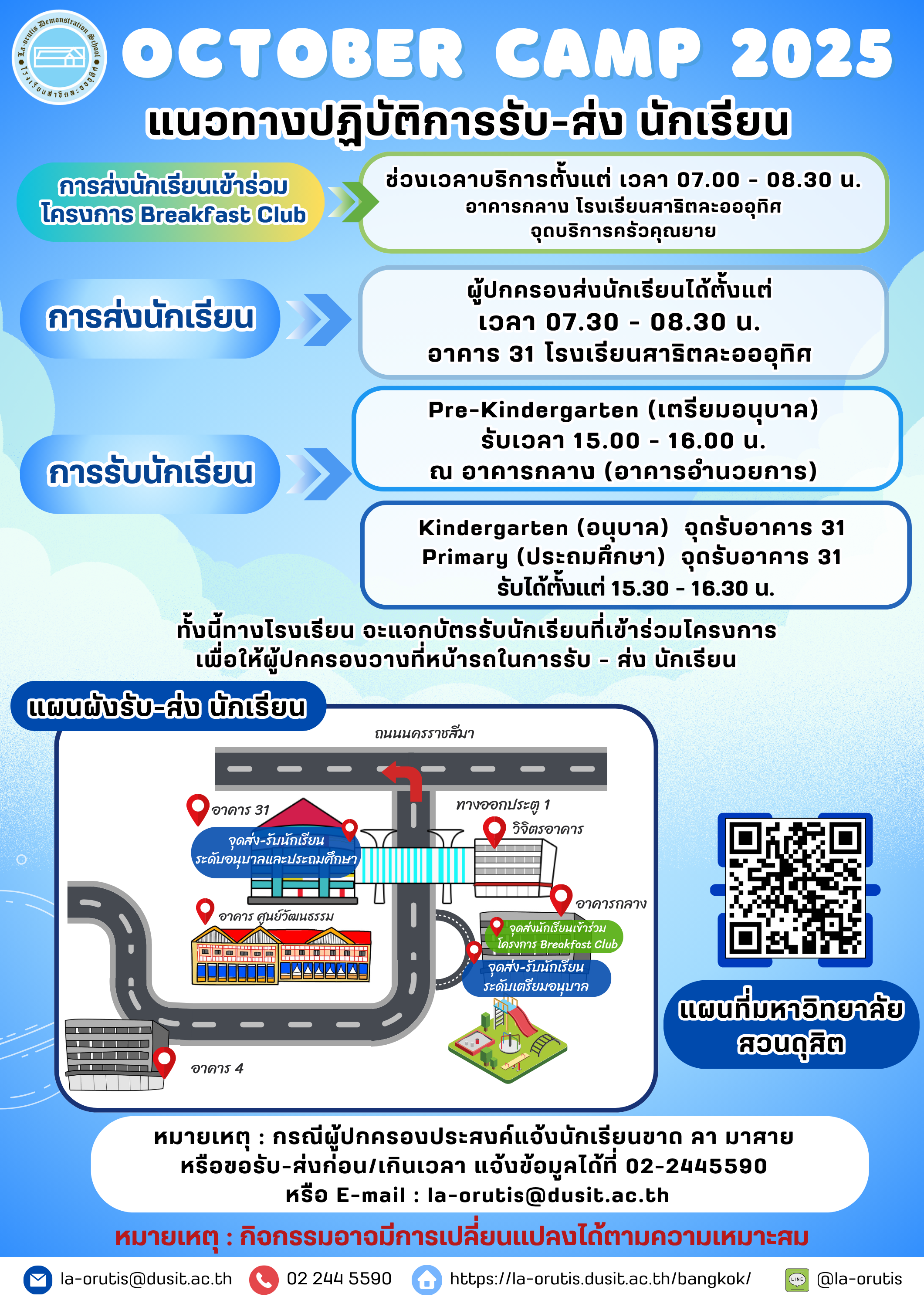 การแต่งกาย และสิ่งที่ต้องเตรียม แนวทางปฏิบัติการรับ-ส่ง นักเรียนที่เข้าร่วมโครงการ October Camp 2025 ระหว่างวันที่ 6 – 22 ตุลาคม 2568 (12 วัน)