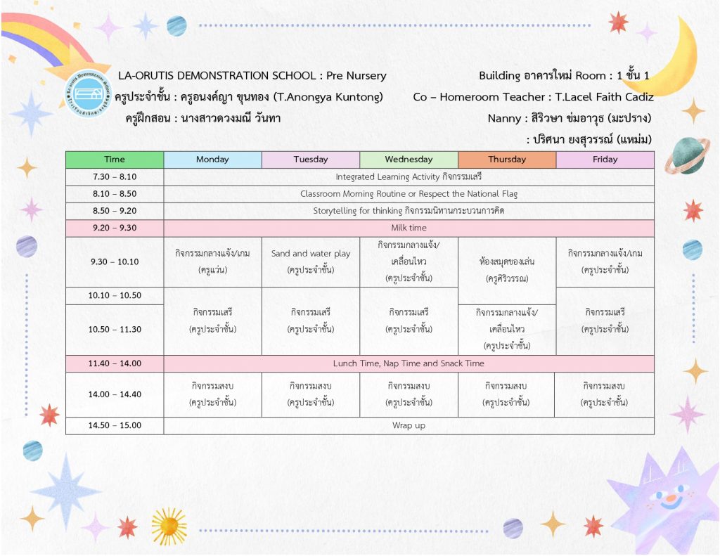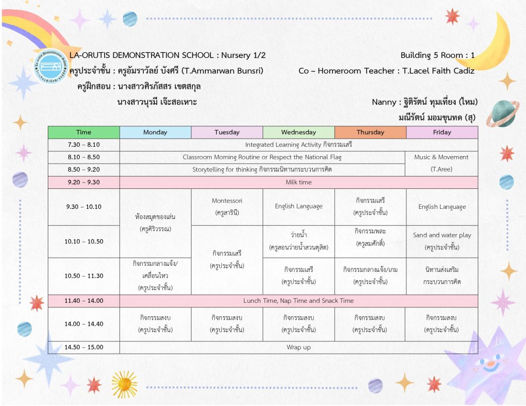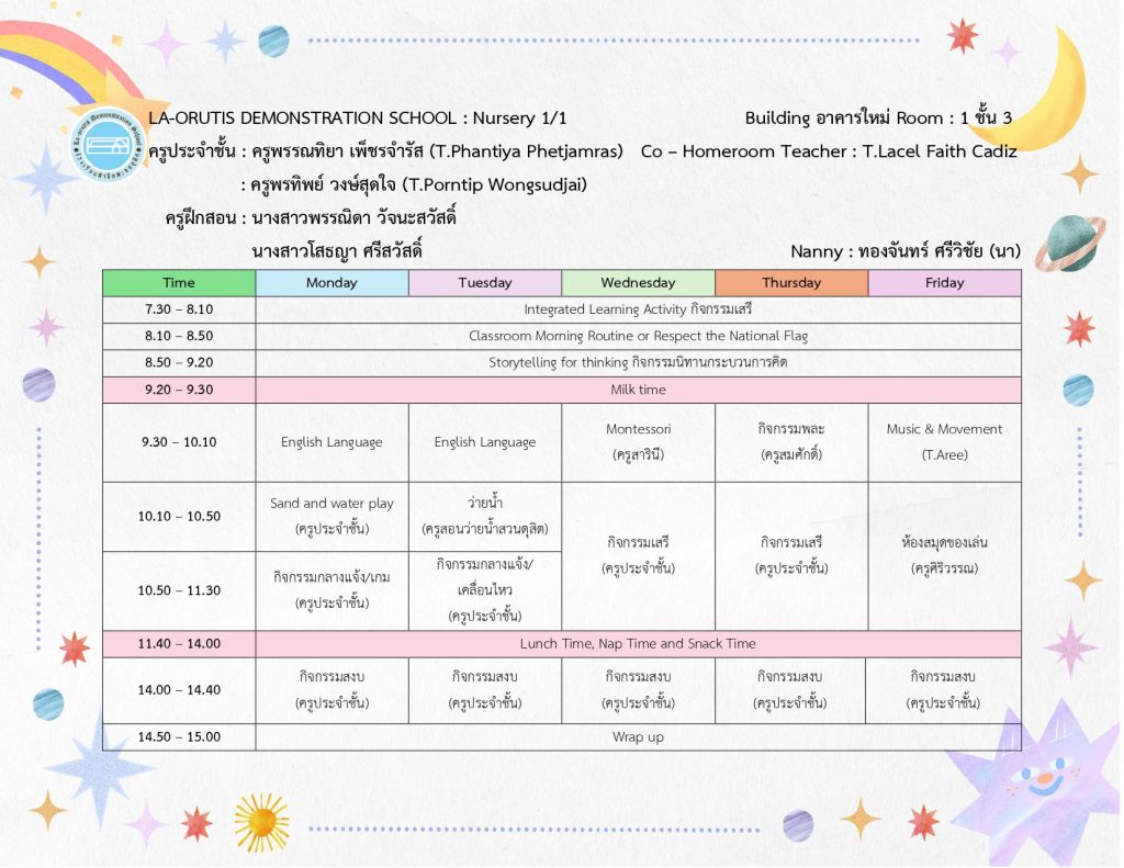 ตารางเรียนบ้านหนูน้อย-บ้านสาธิต