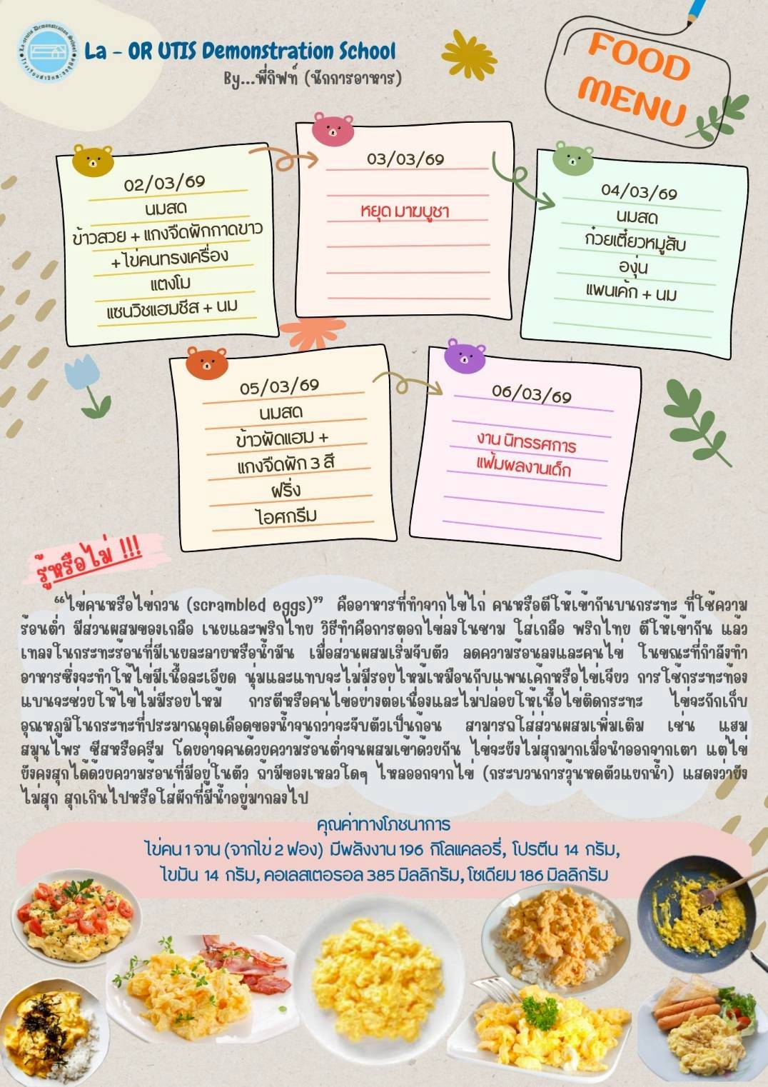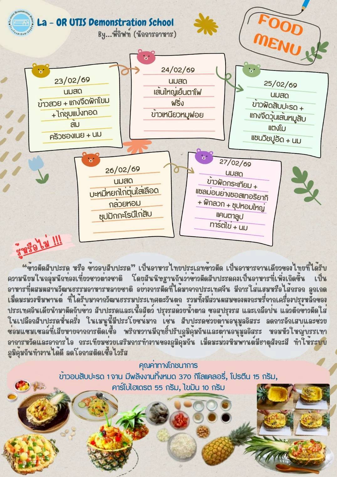 • รายการอาหารกลางวันและอาหารว่าง