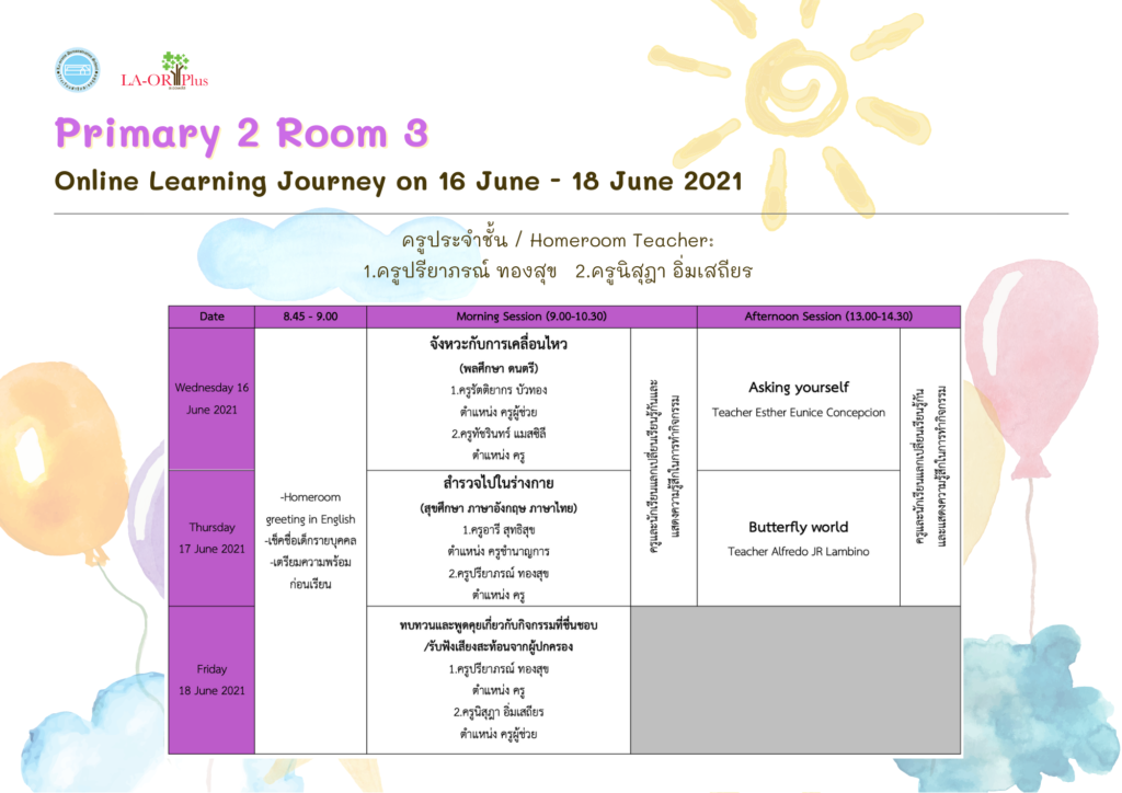 ตารางเรียน Online ระดับชั้นประถมศึกษาปีที่ 2 วันที่ 16-18 มิถุนายน 2564 (กรุงเทพมหานคร) June 15, 2021June 15, 2021 Sitanan Injang ข่าวประชาสัมพันธ์, ประกาศ, ระดับชั้นประถมศึกษาปีที่ 2 Sitanan Injang