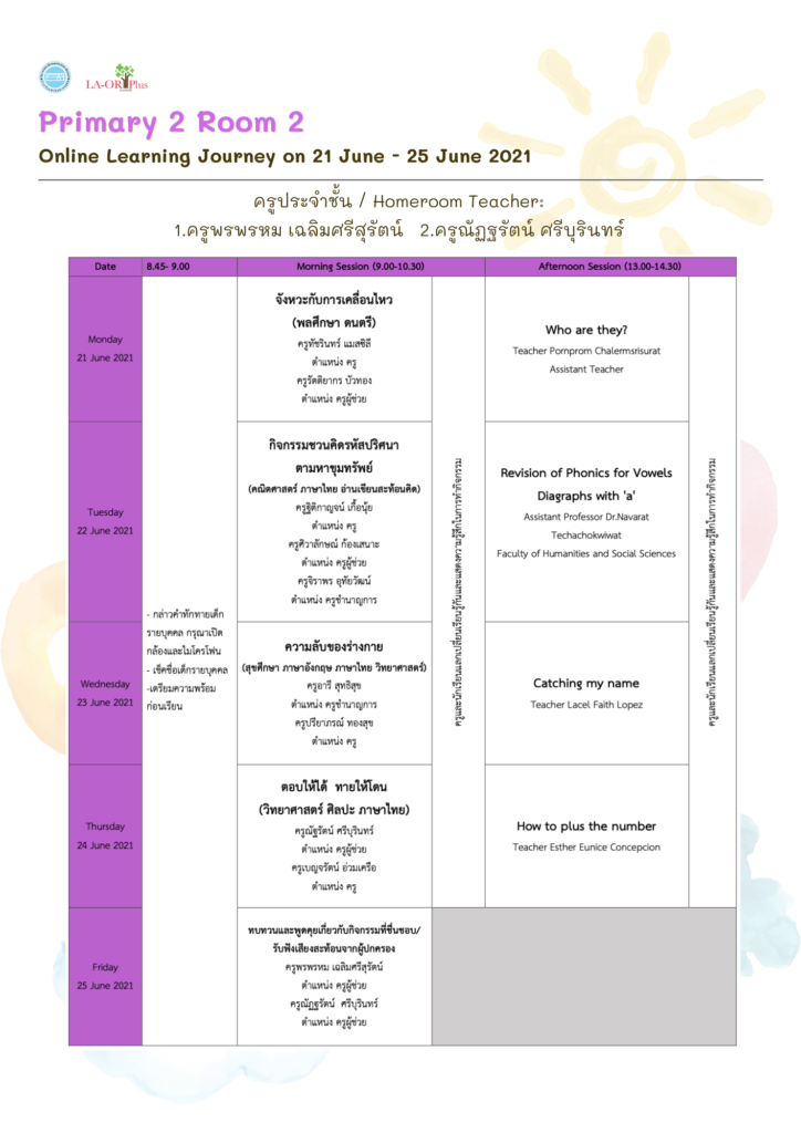 ตารางเรียน Online ระดับชั้นประถมศึกษาปีที่ 2 วันที่ 21-25 มิถุนายน 2564 (กรุงเทพมหานคร) June 19, 2021June 20, 2021 Sitanan Injang ระดับชั้นประถมศึกษาปีที่ 2 P2Download Sitanan Injang