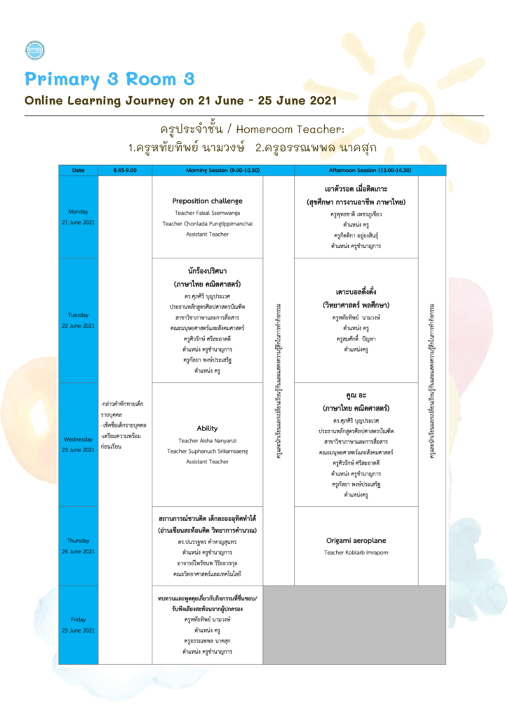 ตารางเรียน Online ระดับชั้นประถมศึกษาปีที่ 3 วันที่ 21-25 มิถุนายน 2564 (กรุงเทพมหานคร) June 19, 2021June 20, 2021 Sitanan Injang ระดับชั้นประถมศึกษาปีที่ 3 P3Download Sitanan Injang