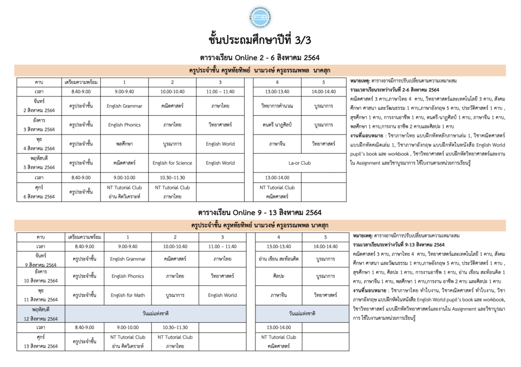 ตารางเรียน Online Learning Journey ระดับชั้นประถมศึกษาชั้น 3 วันที่ 2-13 สิงหาคม 2564 (กรุงเทพมหานคร) July 30, 2021July 30, 2021 Sitanan Injang ระดับชั้นประถมศึกษาปีที่ 3 p3 2-13Download Sitanan Injang