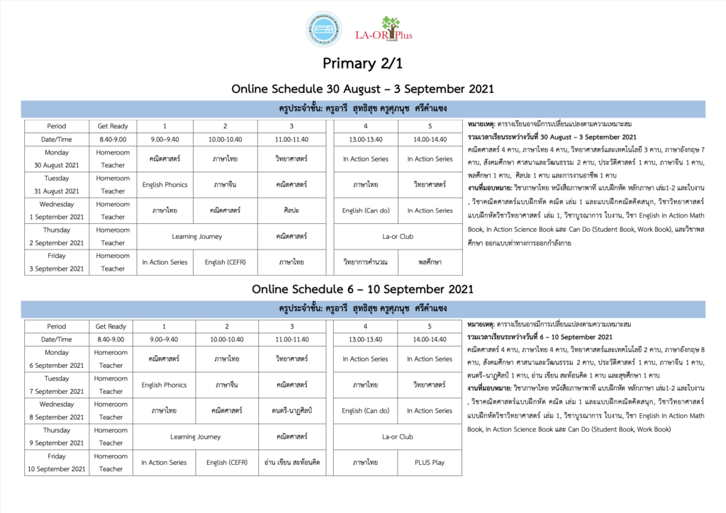 ตารางเรียน Online Learning Journey ระดับชั้นประถมศึกษาปีที่ 2 วันที่ 30 สิงหาคม – 10 กันยายน 2564 (กรุงเทพมหานคร) August 29, 2021August 29, 2021 Sitanan Injang ระดับชั้นประถมศึกษาปีที่ 2 ตารางเรียนรายห้อง ป.2 30 ส.ค.-10 กยDownload Sitanan Injang