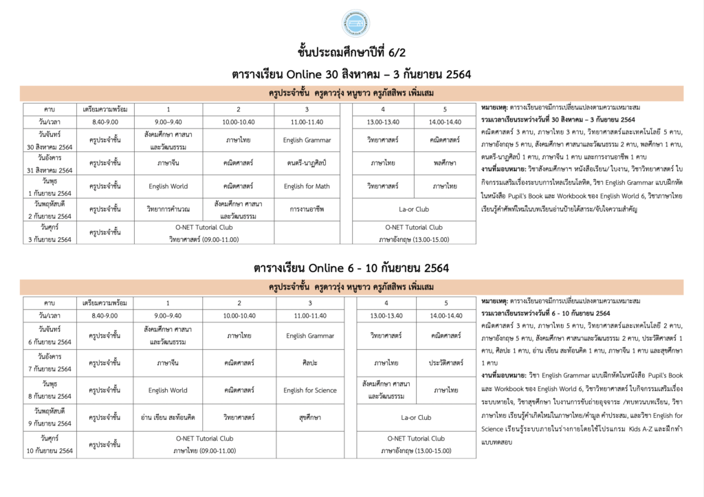 ตารางเรียน Online Learning Journey ระดับชั้นประถมศึกษาปีที่ 6 วันที่ 30 สิงหาคม – 10 กันยายน 2564 (กรุงเทพมหานคร) August 29, 2021August 29, 2021 Sitanan Injang ระดับชั้นประถมศึกษาปีที่ 6 ตารางเรียนรายห้อง ป.6 30 สค-10 กยDownload Sitanan Injang
