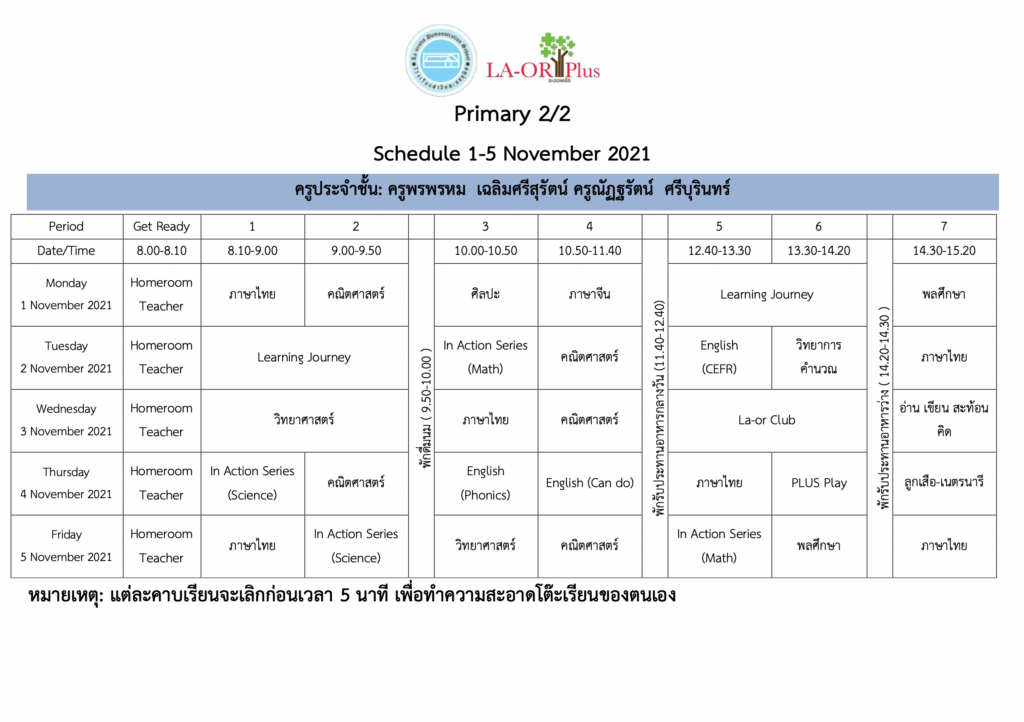ตารางเรียน Online และ On-site ระดับชั้นประถมศึกษาปีที่ 2 วันที่ 1-12 พฤศจิกายน 2564 (กรุงเทพมหานคร) October 30, 2021October 30, 2021 Sitanan Injang ระดับชั้นประถมศึกษาปีที่ 2 ตารางเรียนป.2Download Sitanan Injang