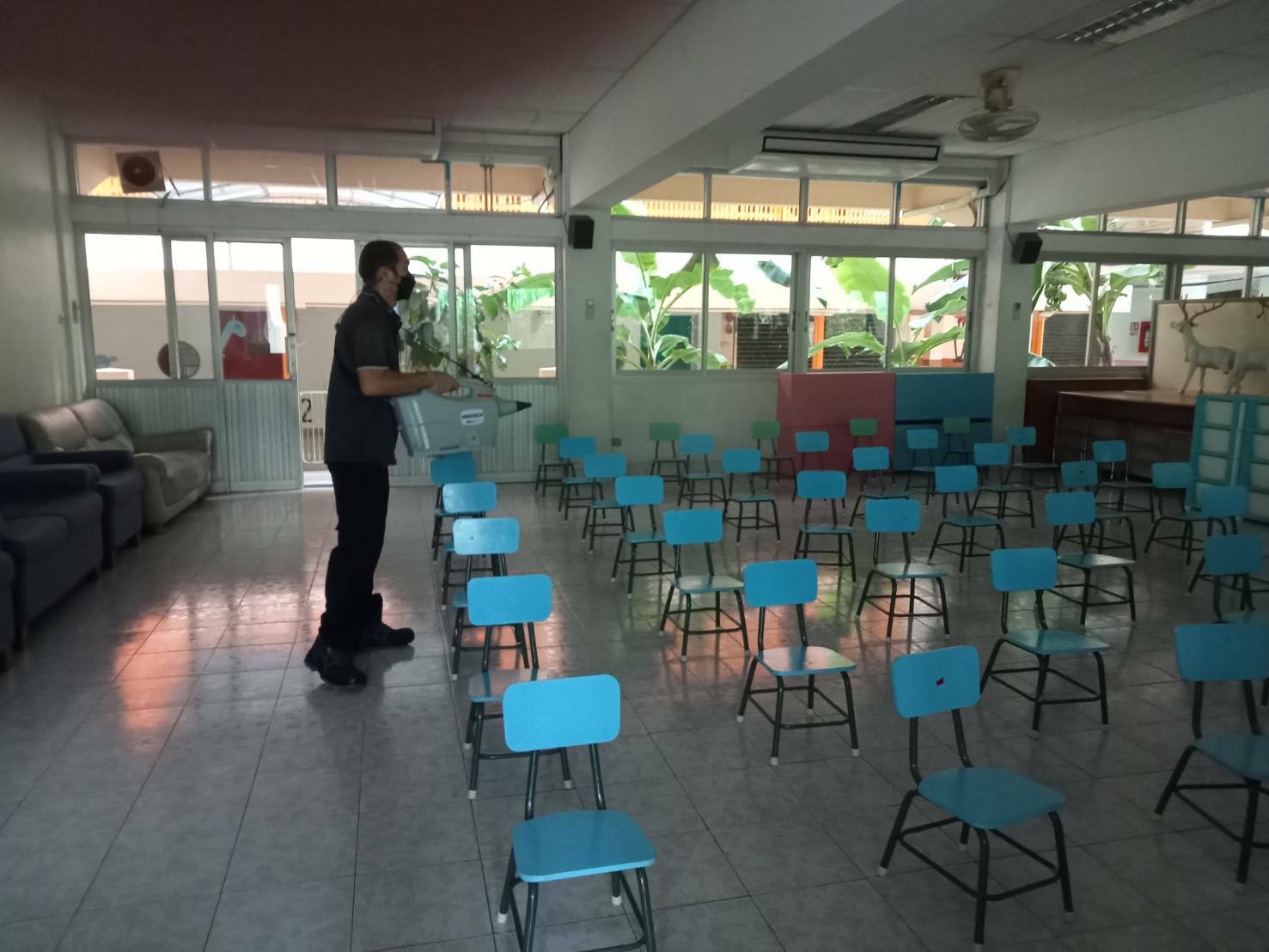 3. พ่นยาฆ่าเชื้อ บริเวณห้องเรียน และห้องกิจกรรมต่างๆ ระหว่างวันที่ 11 – 13 มกราคม 2565 เป็นเวลา 3 วันติดต่อกัน
