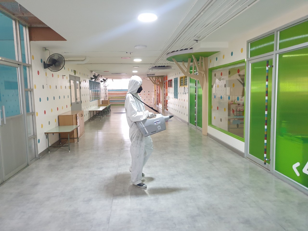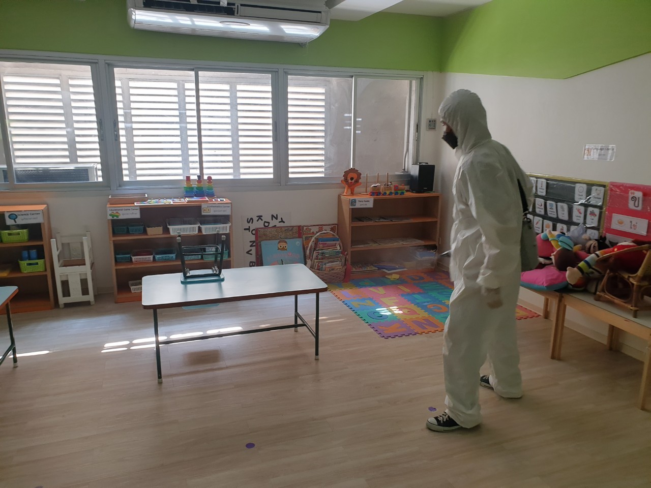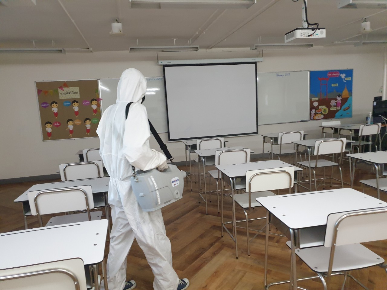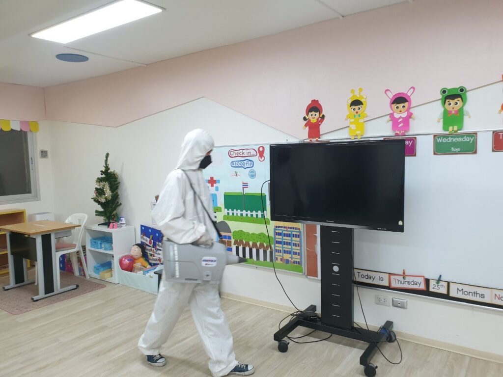 3. พ่นยาฆ่าเชื้อ บริเวณห้องเรียน และห้องกิจกรรมต่างๆ ระหว่างวันที่ 24 – 25 กุมภาพันธ์ และ 1 มีนาคม 2565 เป็นเวลา 3 วัน