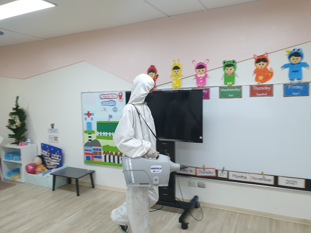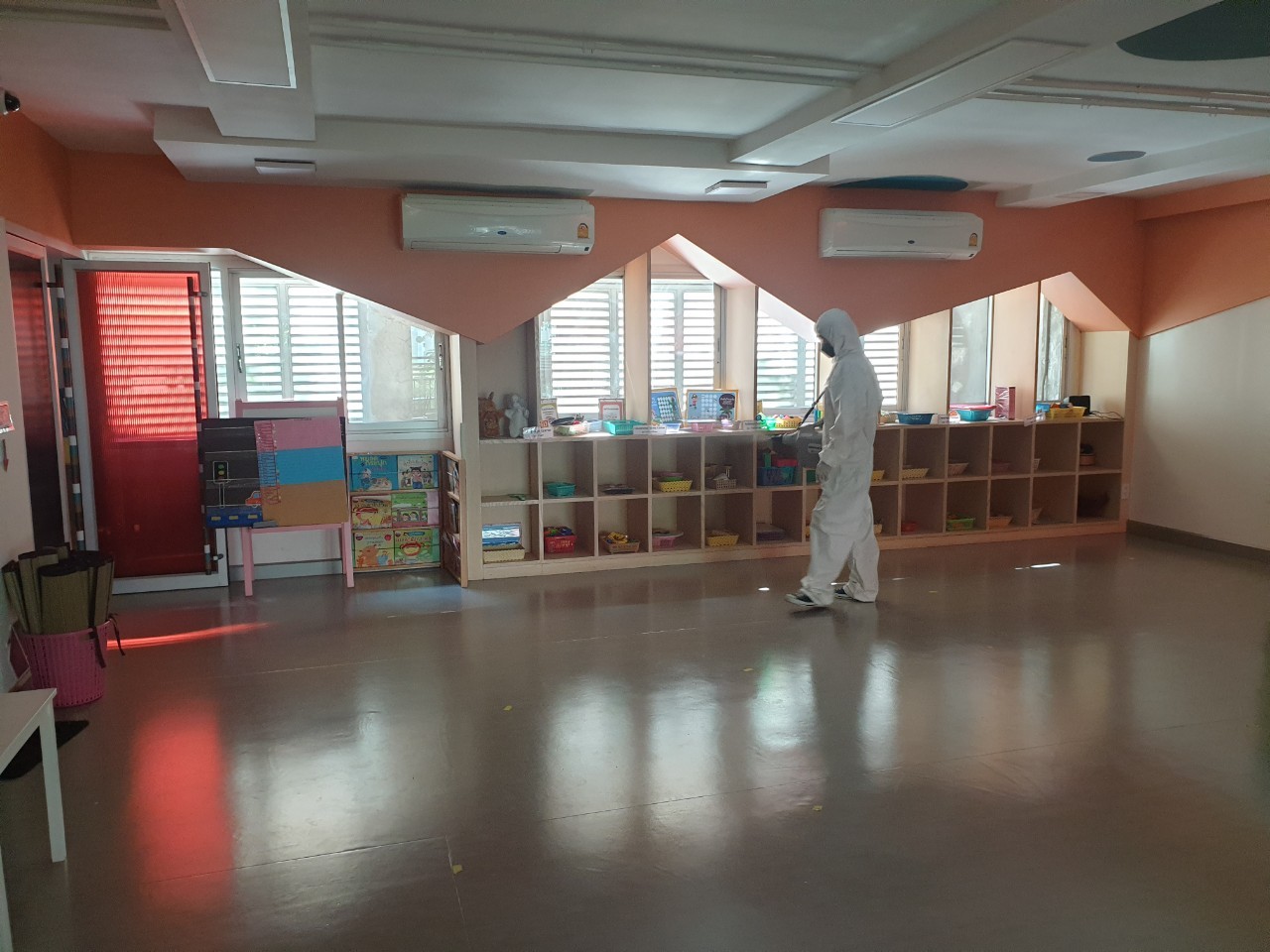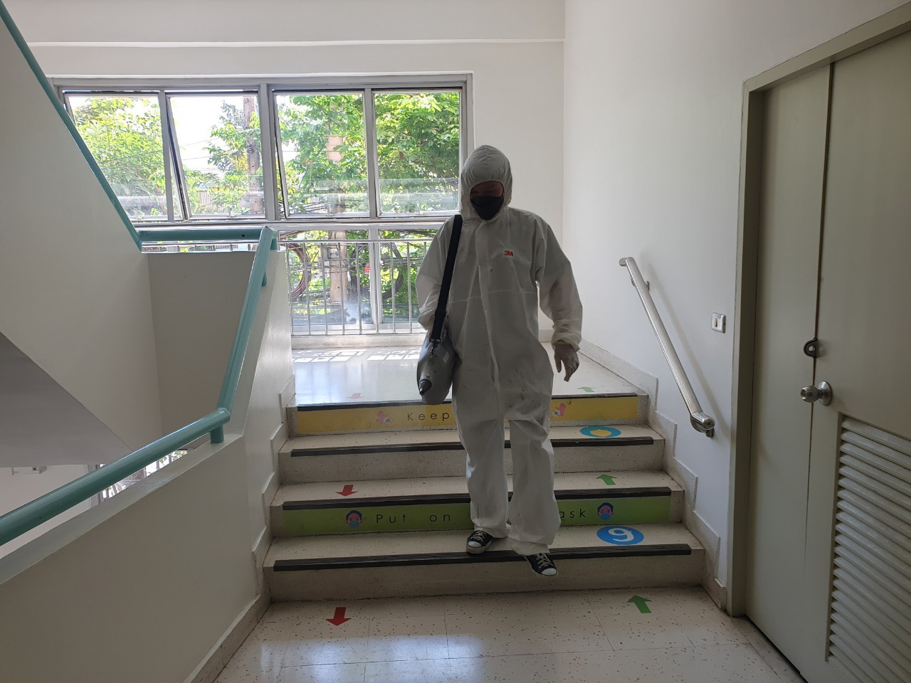 3. พ่นยาฆ่าเชื้อ บริเวณห้องเรียน และห้องกิจกรรมต่างๆ ระหว่างวันที่ 24 – 25 กุมภาพันธ์ และ 1 มีนาคม 2565 เป็นเวลา 3 วัน
