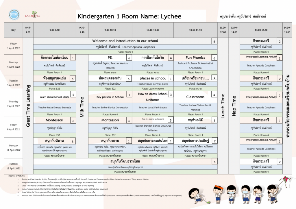 ตารางสอนปรับพื้นฐาน ระดับอนุบาล ปีการศึกษา 2565 (กรุงเทพมหานคร) March 30, 2022March 30, 2022 Sitanan Injang ระดับชั้นอนุบาลปีที่ 1, ระดับชั้นอนุบาลปีที่ 2, ระดับชั้นอนุบาลปีที่ 3 อนุบาลตารางกิจกรรมปรับพื้นฐาน ปีการศึกษา 2565Download Sitanan Injang